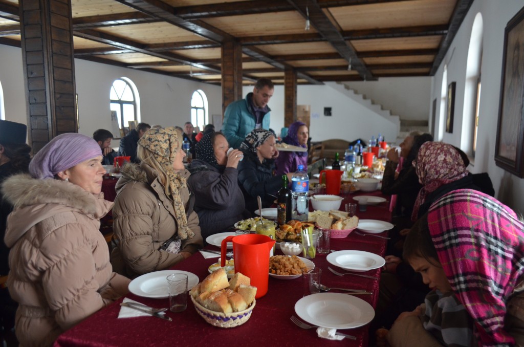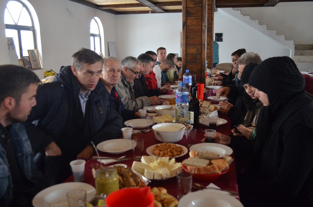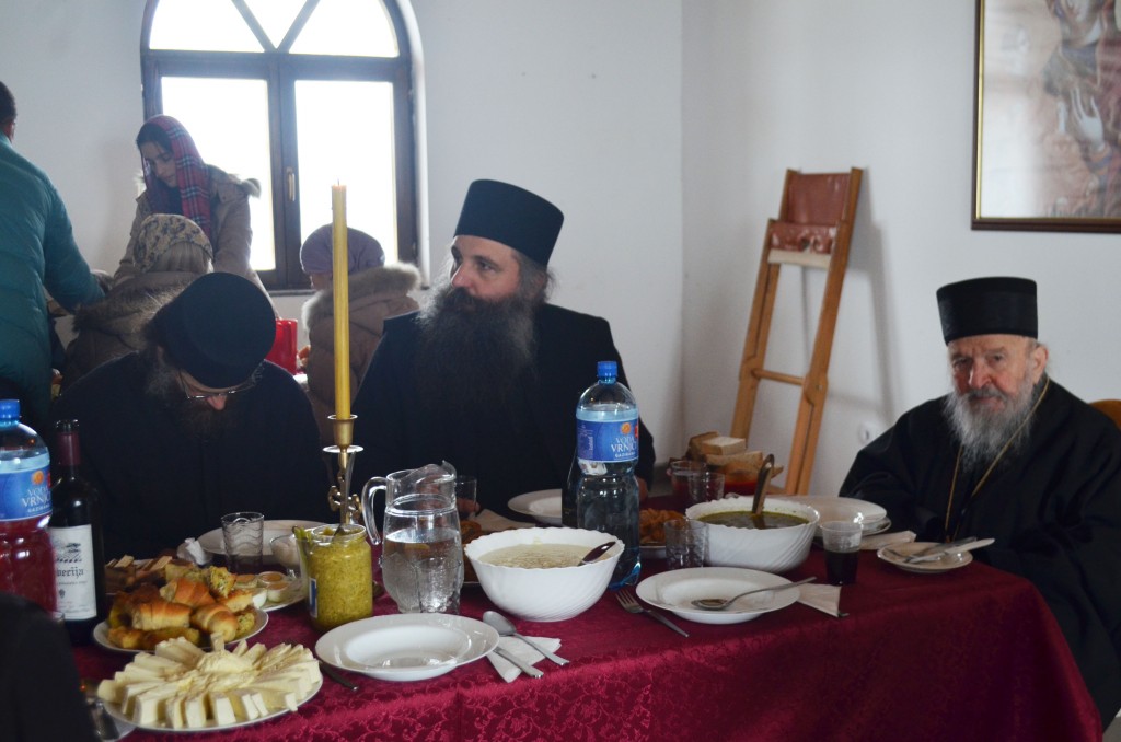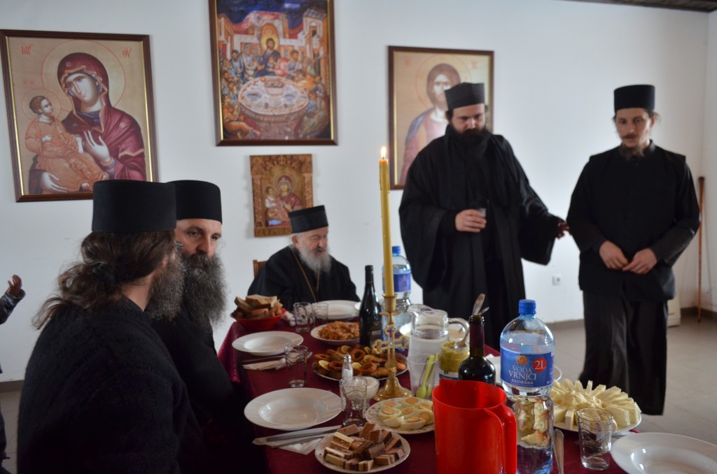 Након духовног укрепљења, празничну трпезу за све присутне приредили су домаћини, отац Ксенофонт са братијом. Владика је искористио прилику да се још једном обрати народу и да истакне част указану новоме ђакону ,,кога сви ви добро знате и који вас све зна, са којим сте од почетка од оснивања ове катакомбе. Он треба да се труди и да напредује у врлини служећи Цркви Божијој, а ви да га помогнете вашим молитвама Господу“ – истакао је владика.