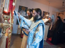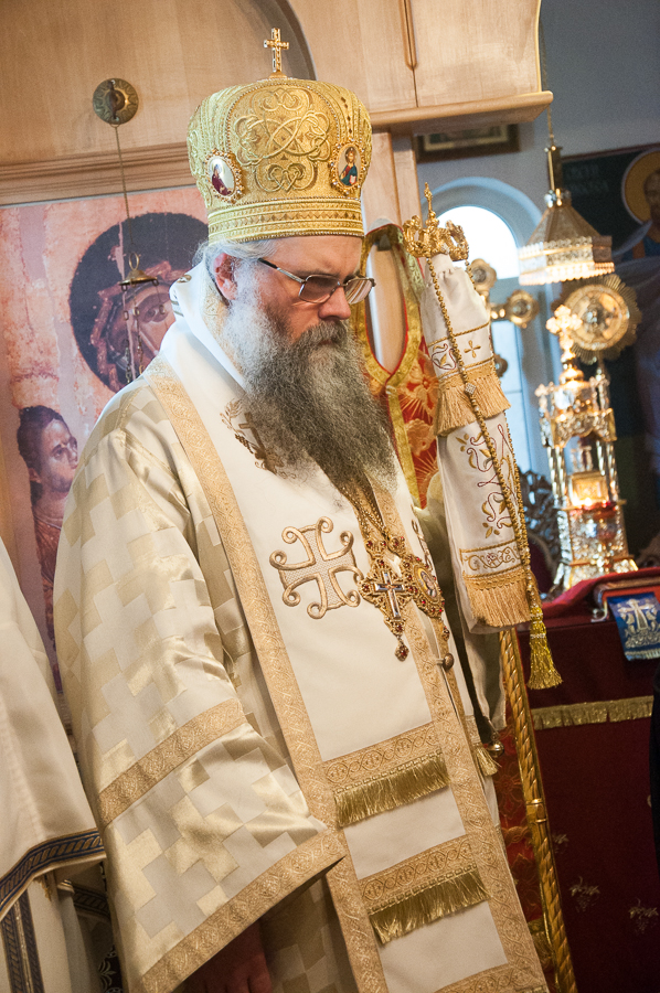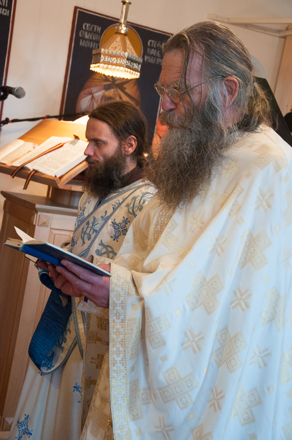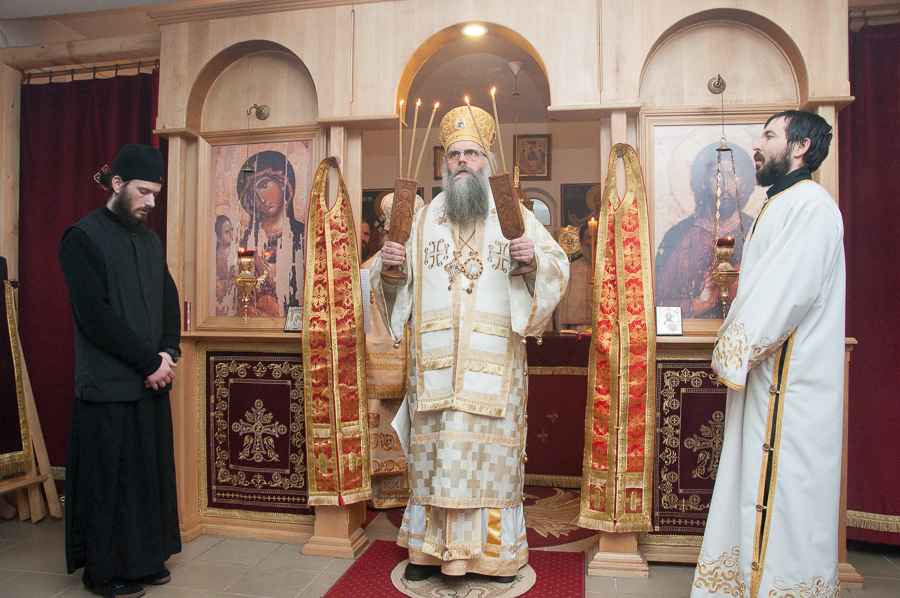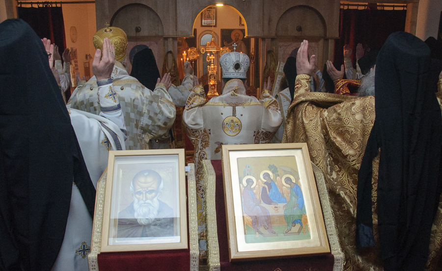 „Благодат Духа Светога данас нас сабра у овоме Божијем храму, браћо и сестре, у овако лепом броју, да прославимо угодника Божијега Светог Максима Исповедника, да прославимо имендан нашега Владике Максима који је понео његово име. Свети Максим Исповедник – предивни угодник Божији, познат по страдању своме за Веру Православну и по борби за очување те истинске Вере Православне – Он је у своје време био, тако рећи, остао једини, који се држао правих догмата Цркве Божије. Сви остали – и цареви и Патријарси и Епископи, сви су били потонули у јерес монотелитску, а Свети Максим је остао чувар и бранитељ Истине у Господу Христу – да је Он Истинити Прави Бог и Истинити Прави Човек. Ето, тога дивнога Светитеља ми данас прослављамо, браћо и сестре, славећи Бога и молећи се Светом Максиму да он посредује Престолу Господњем за нас, који се трудимо да идемо правим путем Христовим као што је он ишао, да очувамо и сачувамо Веру нашу Православну, као што је то он у своје време учинио и да измолимо његово заступништво пред Богом, за нашег драгог Владику Максима, да га Господ укрепи и да он буде, као његов Светитељ и заштитник, његов други Анђео Чувар – Свети Максим, да би био и остао доследан и истрајан борац за Веру свету Православну. Зато честитам имендан нашем драгом Владици Максиму желећи му да још много, много година са својом братијом слави и са свом сабраћом нашом, који су данас дошли овде из разних наших манастира и катакомби да увеличају ово дивно славље.