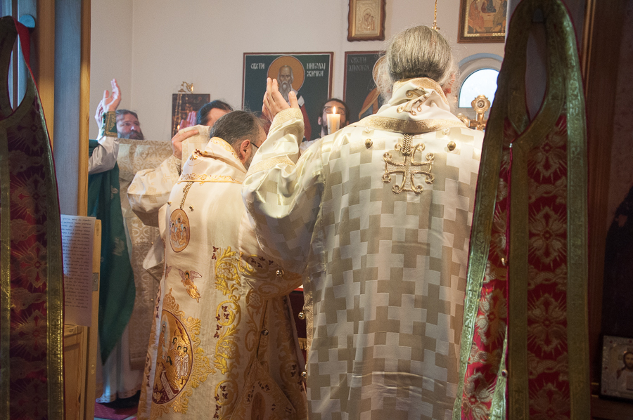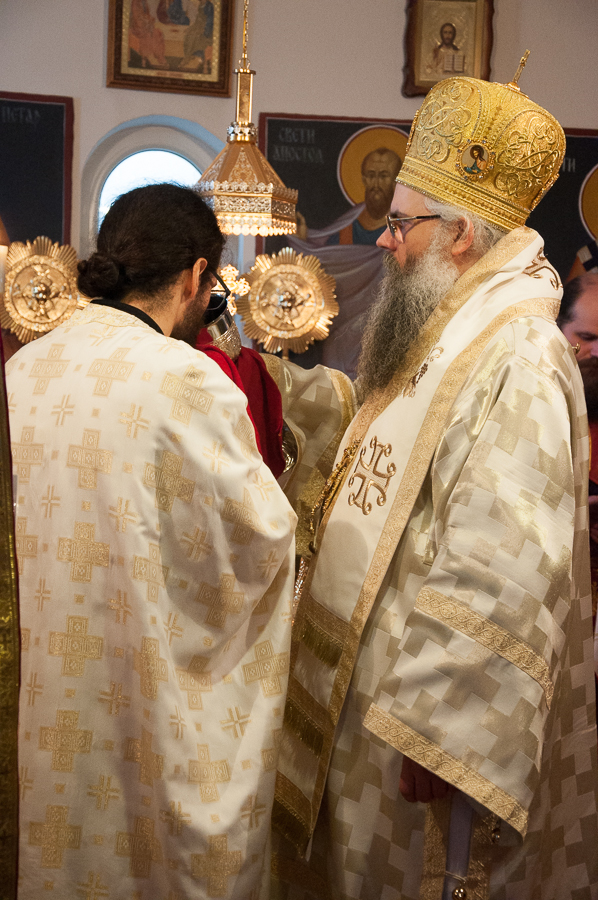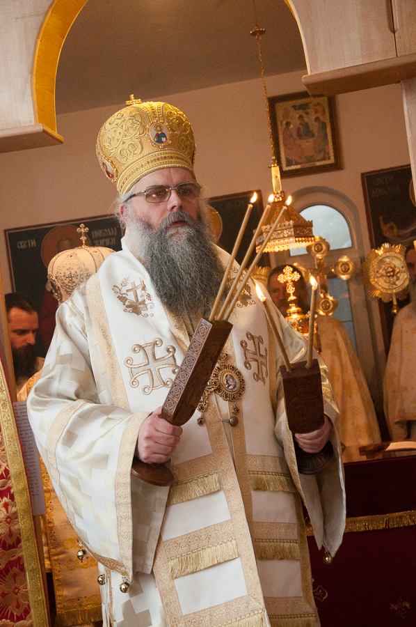 Нека Господ дарује благодат своју и милост своју свима вама, браћо и сестре који сте такође дошли, да увеличамо прославу имендана нашега и вашега Владике Максима. Нека Господ свима нам дарује милост Своју да бисмо били и остали слуге Божије целога живота свога, и када пођемо одавде да нас Господ прими у Царство Своје Небеско, тамо где се налазе сви свети угодници Божији, тамо где је Свети Максим Исповедник, да тамо и ми са свима Светима славимо, Чудесног Господа Христа са Оцем и Духом Светим, кроза све векове и сву вечност. Амин.“