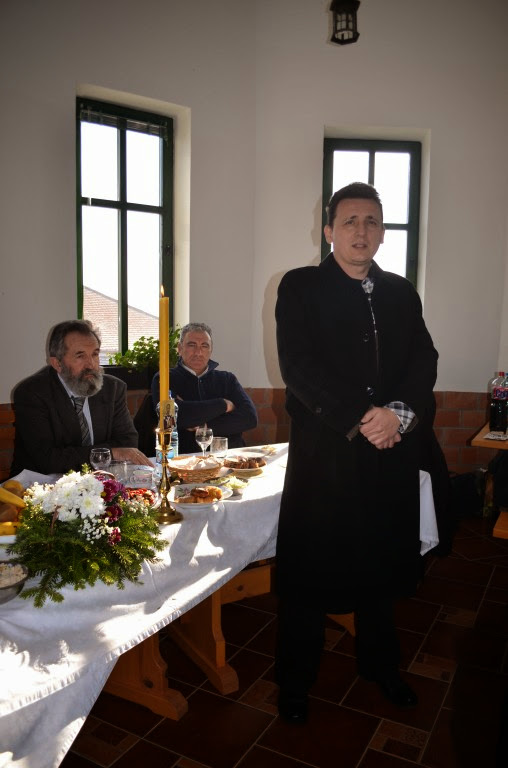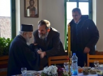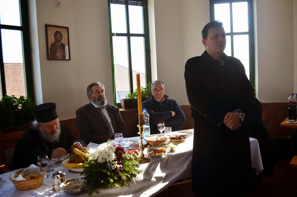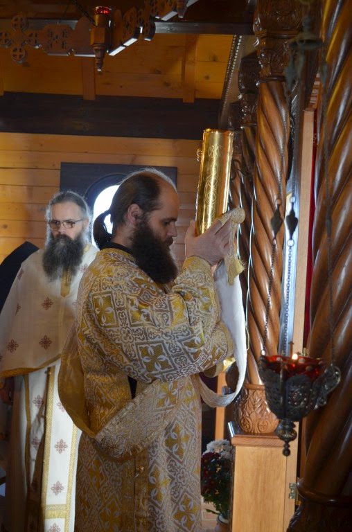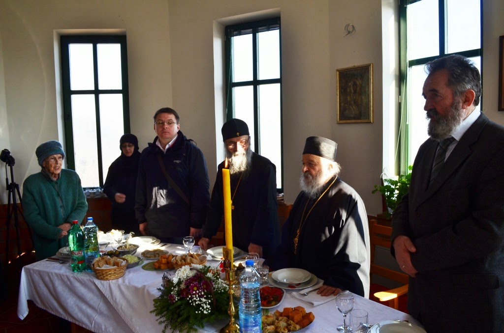 Краћу беседу одржао је протосинђел Максим, који је честитао Владици Артемију славу као и мати Сари и сестрама монахињама, а оцу Николају имендан.