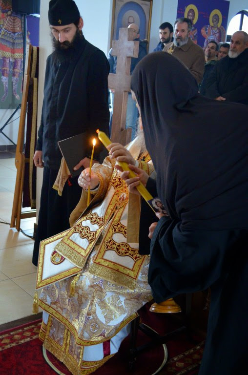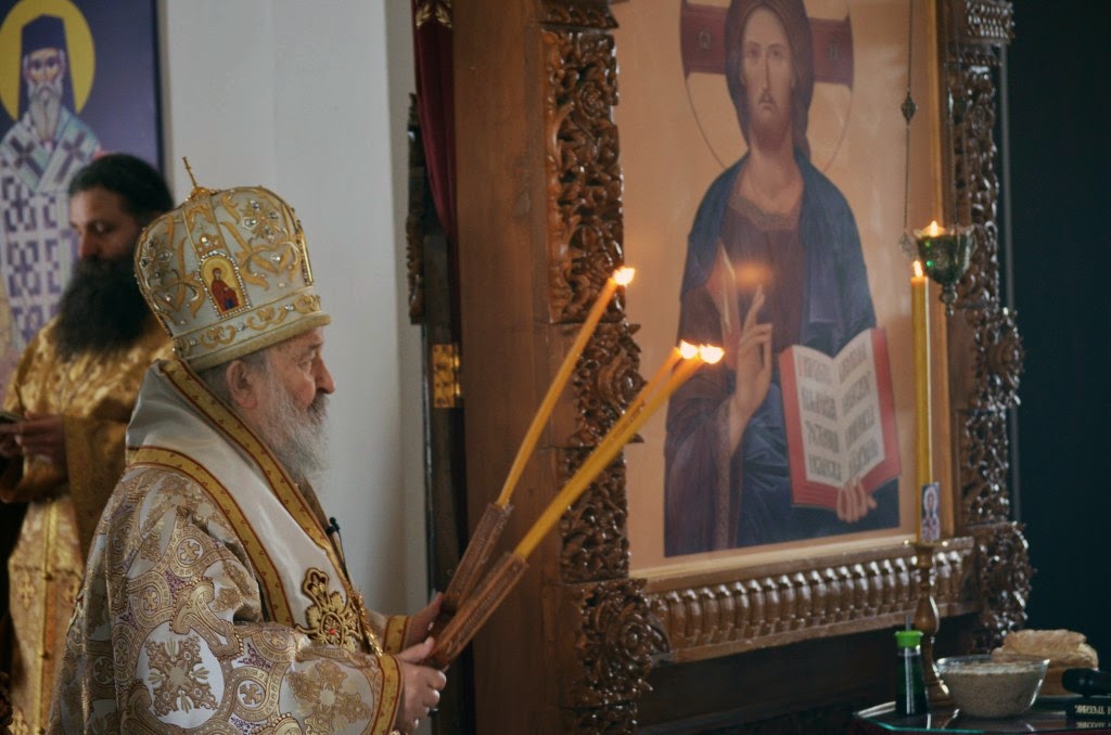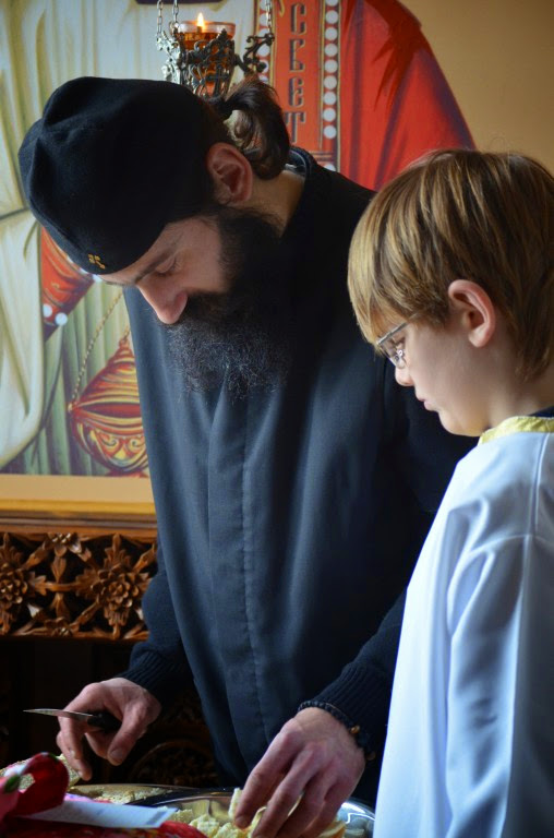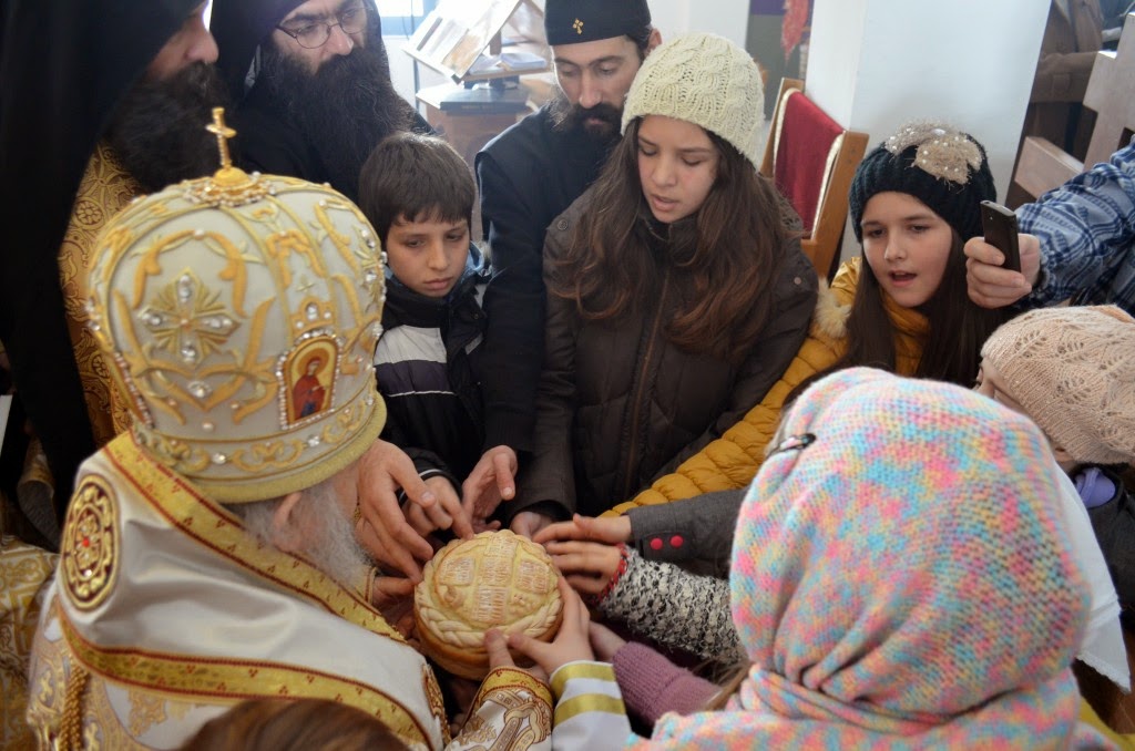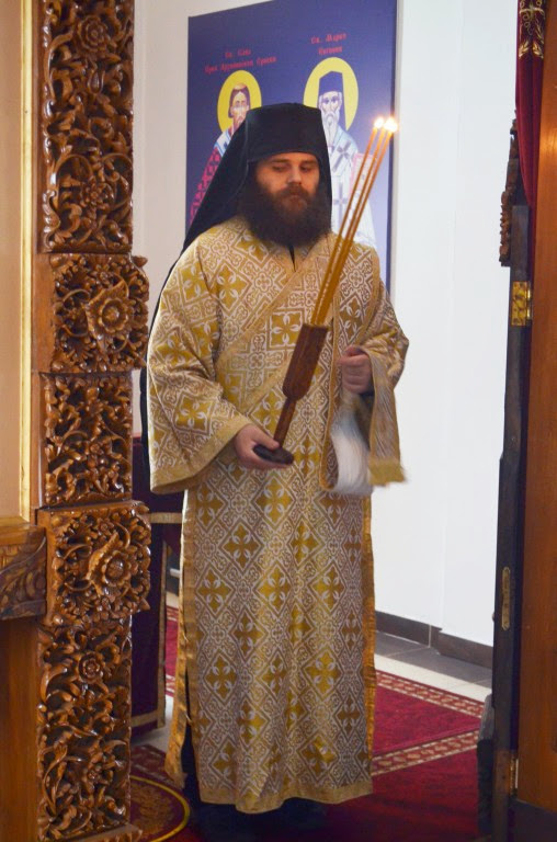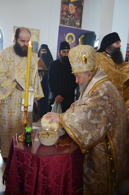 Владика је извршио чин сечења славског колача и благосиљања кољива, које је у спомен Светог Саве направио протосинђел Наум, са својом братијом.