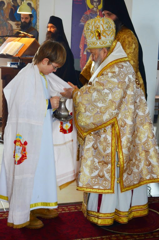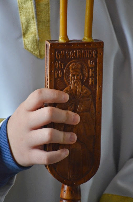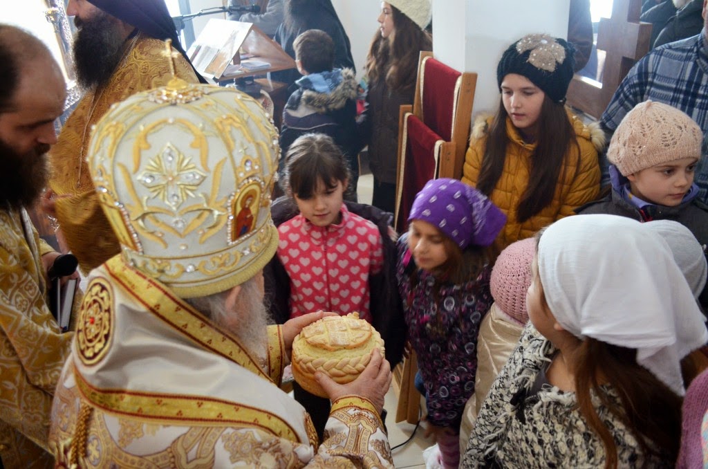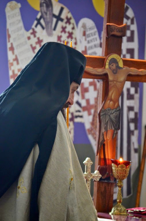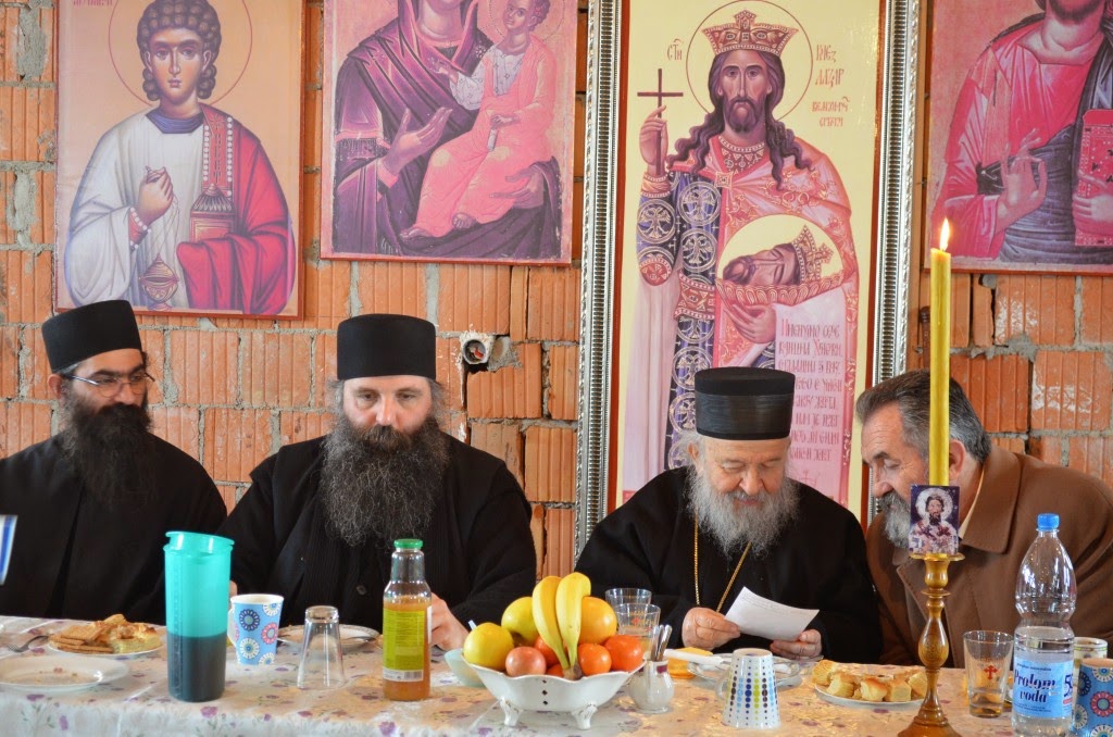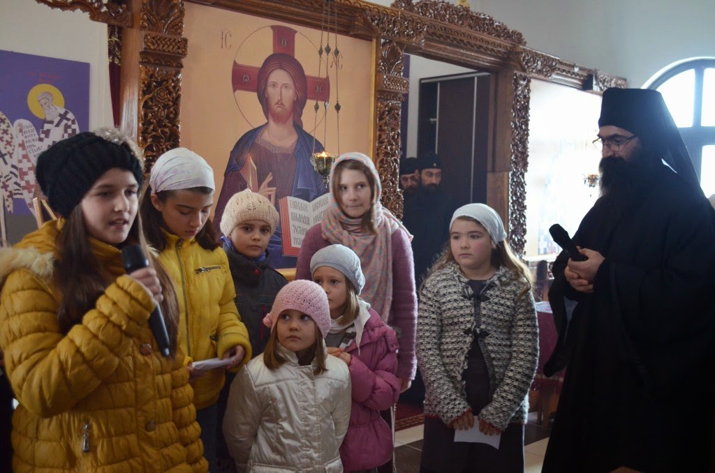 Владика је извршио чин сечења славског колача и благосиљања кољива, које је у спомен Светог Саве направио протосинђел Наум, са својом братијом.
