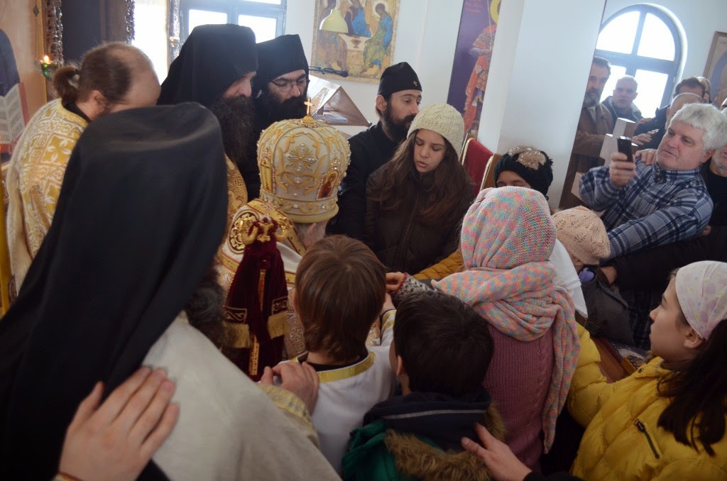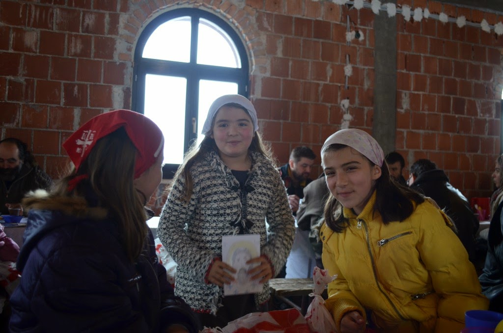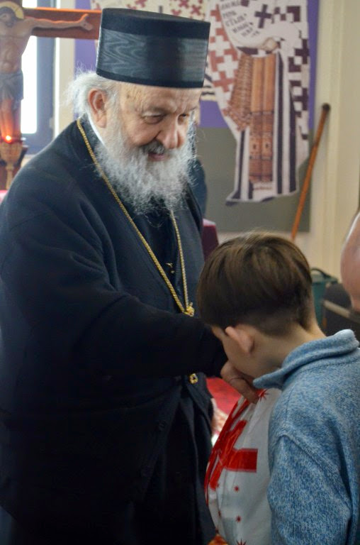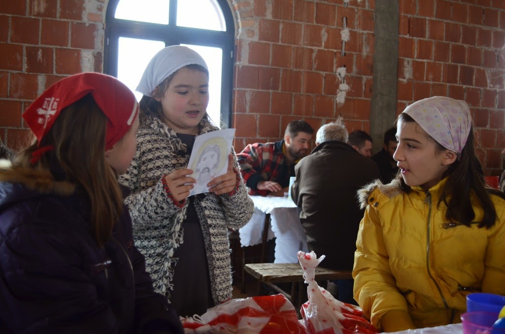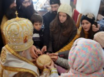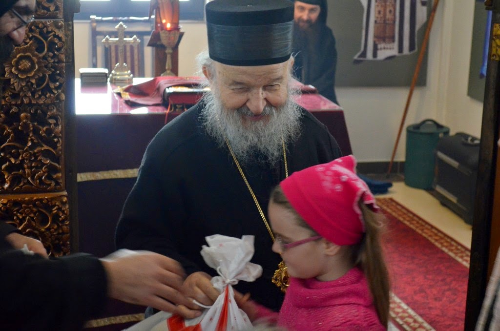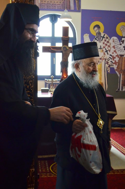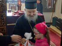 Након Свете Литургије, Владика Артемије је поделио свој деци пакетиће, а трпезу љубави за све присутне припремио је протосинђел Наум, настојатељ Катакомбе у Барајеву.