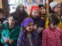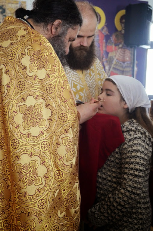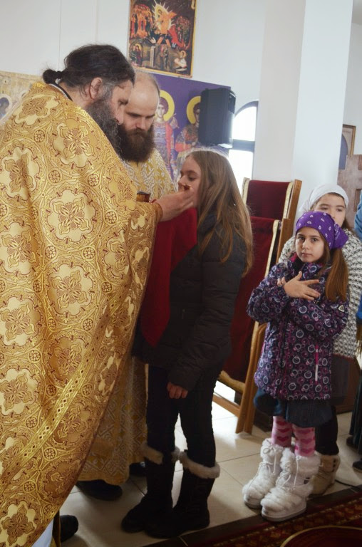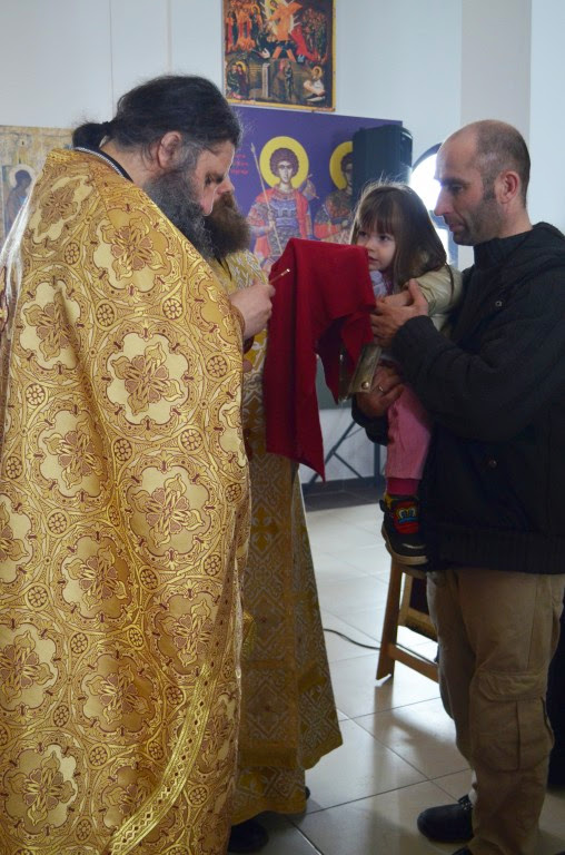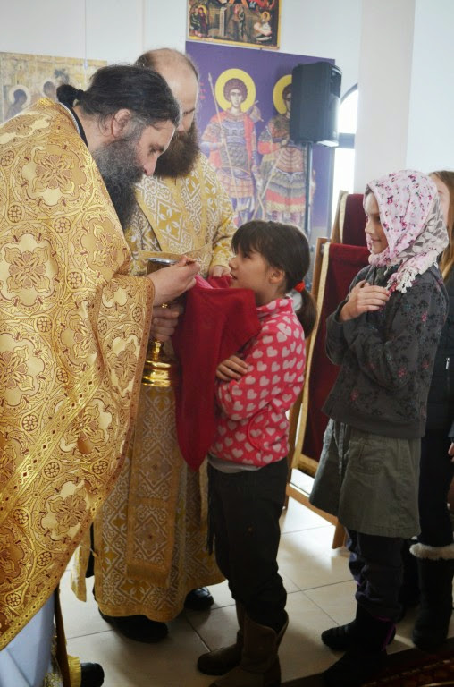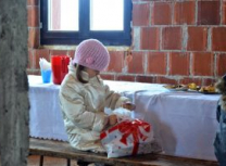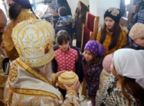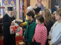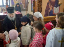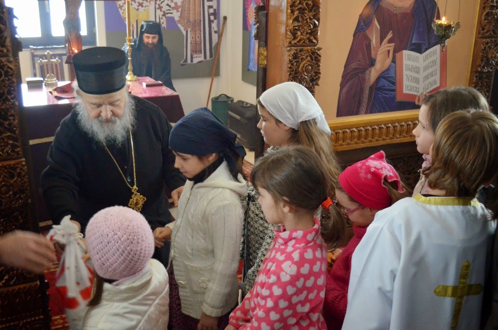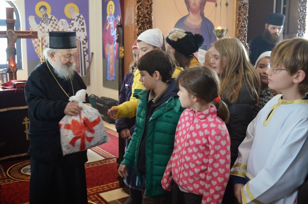 Након Свете Литургије, Владика Артемије је поделио свој деци пакетиће, а трпезу љубави за све присутне припремио је протосинђел Наум, настојатељ Катакомбе у Барајеву.