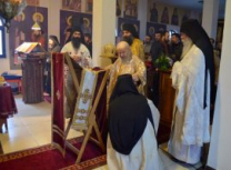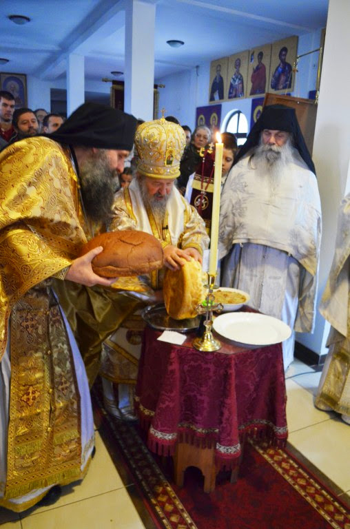 Владика је извршио чин сечења славског колача и благосиљања кољива, које је у спомен Светог Саве припремио протосинђел Наум, са својом братијом.