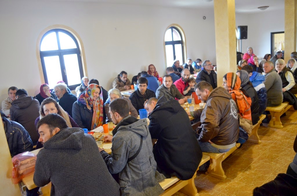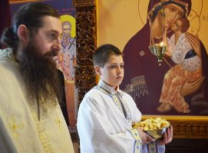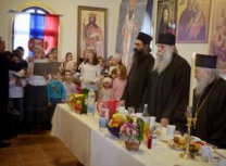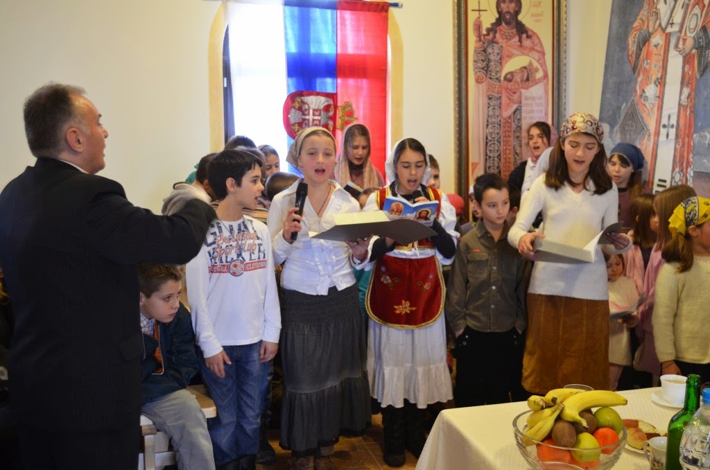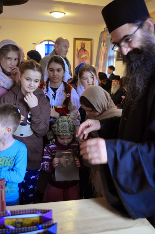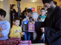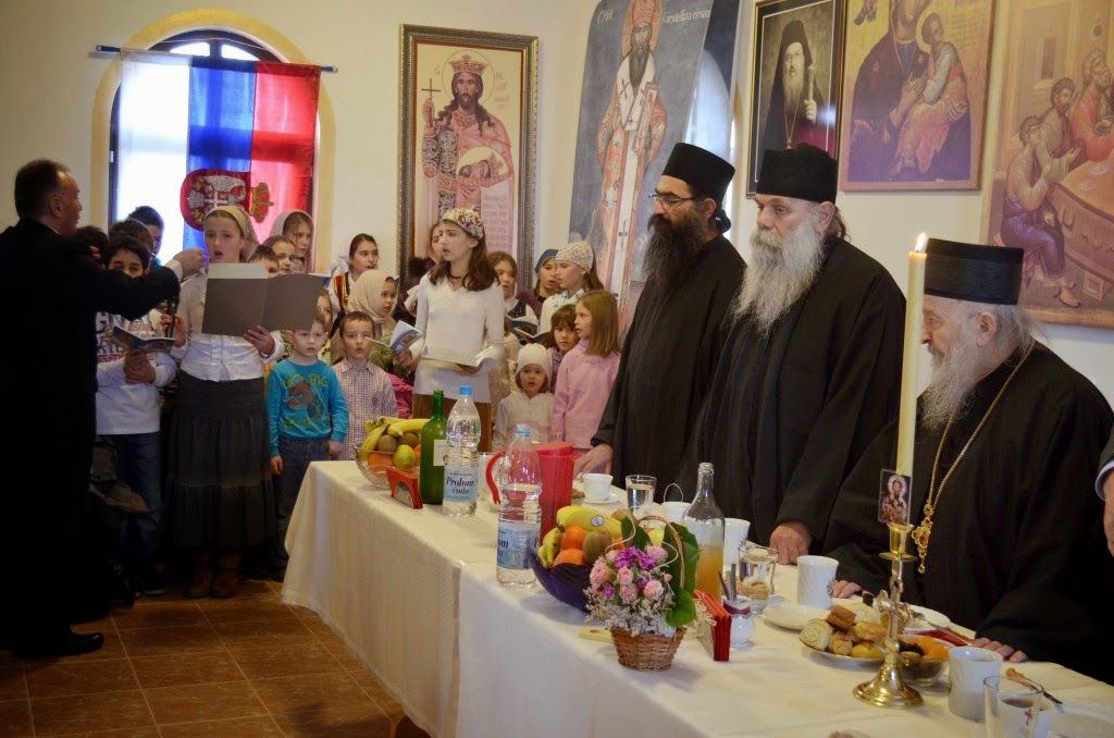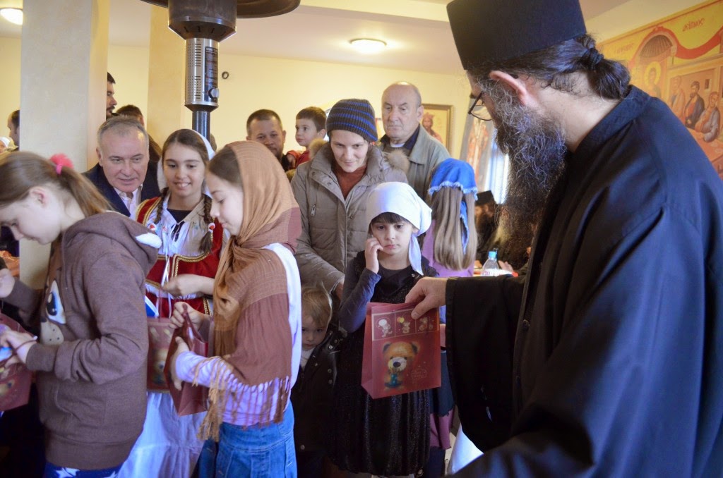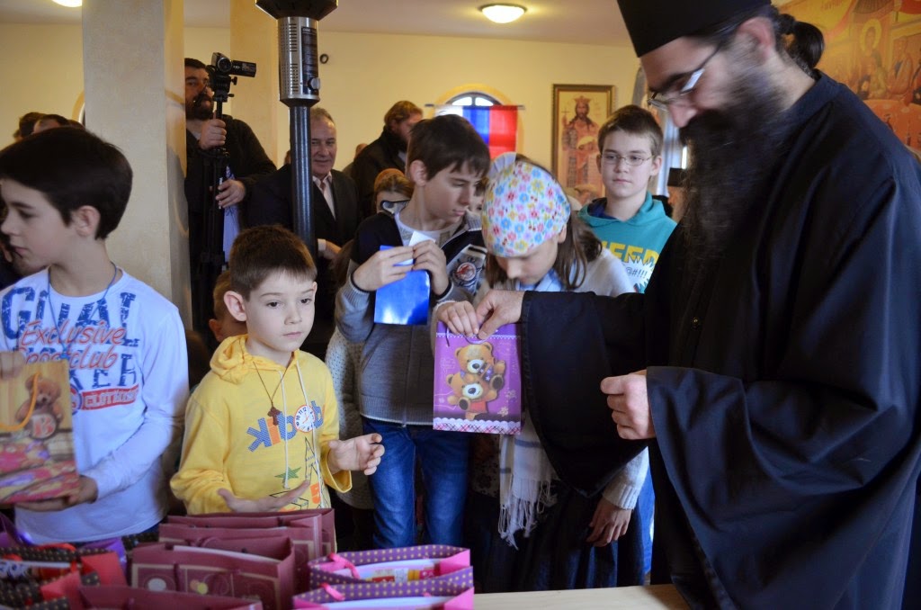 Након Свете Литургије Епископ Артемије је поделио деци пакетиће, а трпезу љубави за све присутне припремио је протосинђел Наум, са својом братијом.