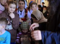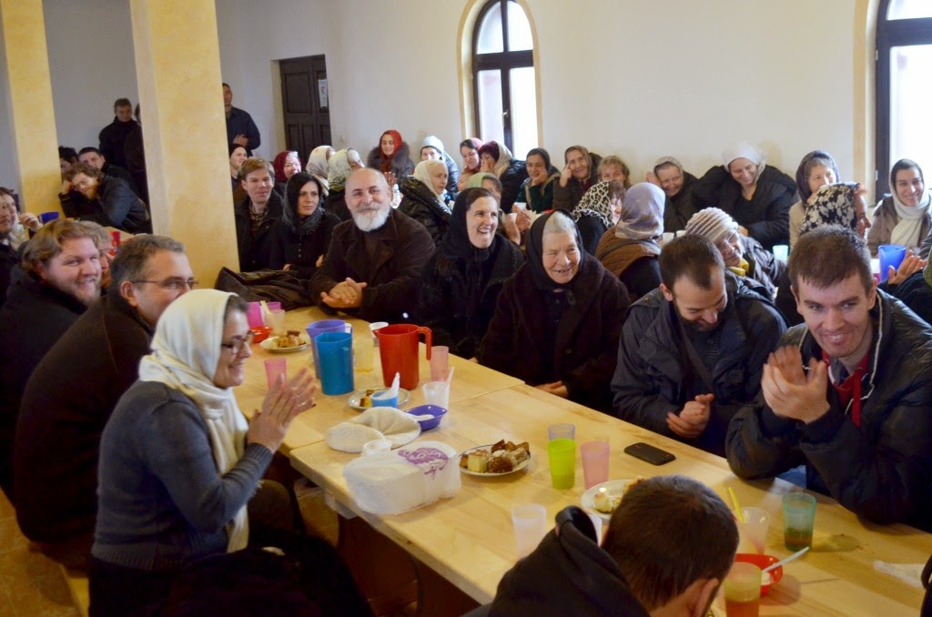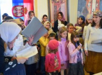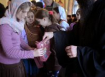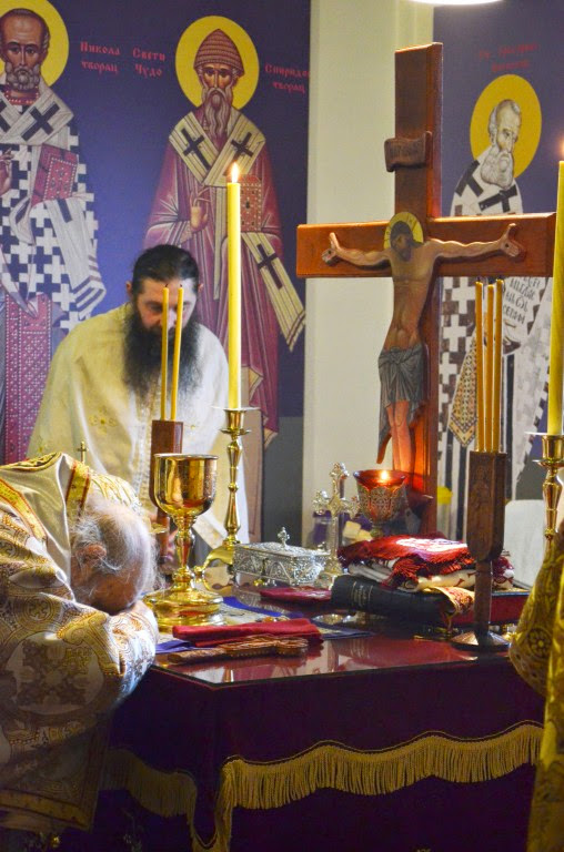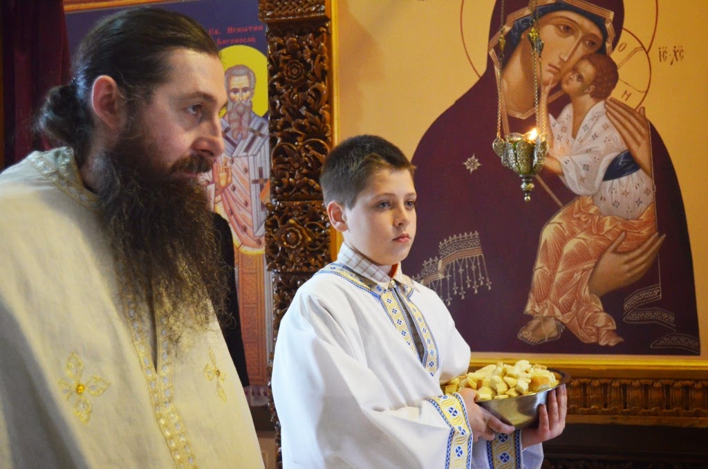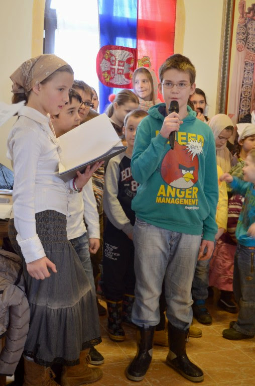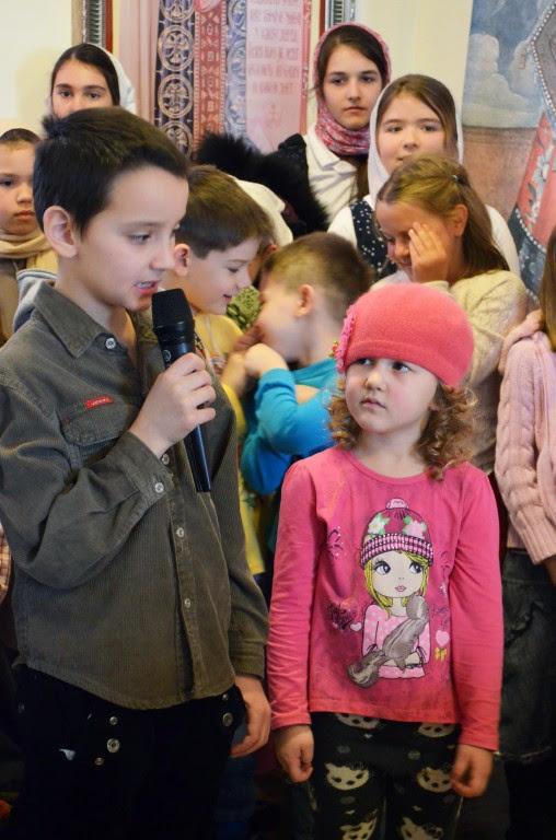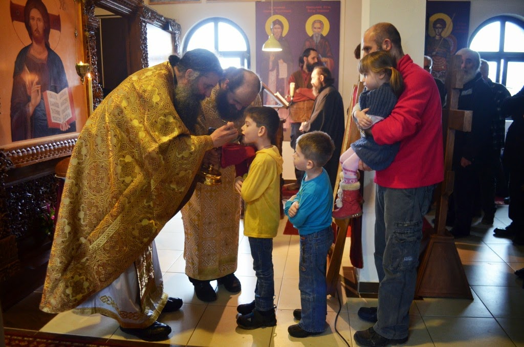 Након Свете Литургије Епископ Артемије је поделио деци пакетиће, а трпезу љубави за све присутне припремио је протосинђел Наум, са својом братијом.