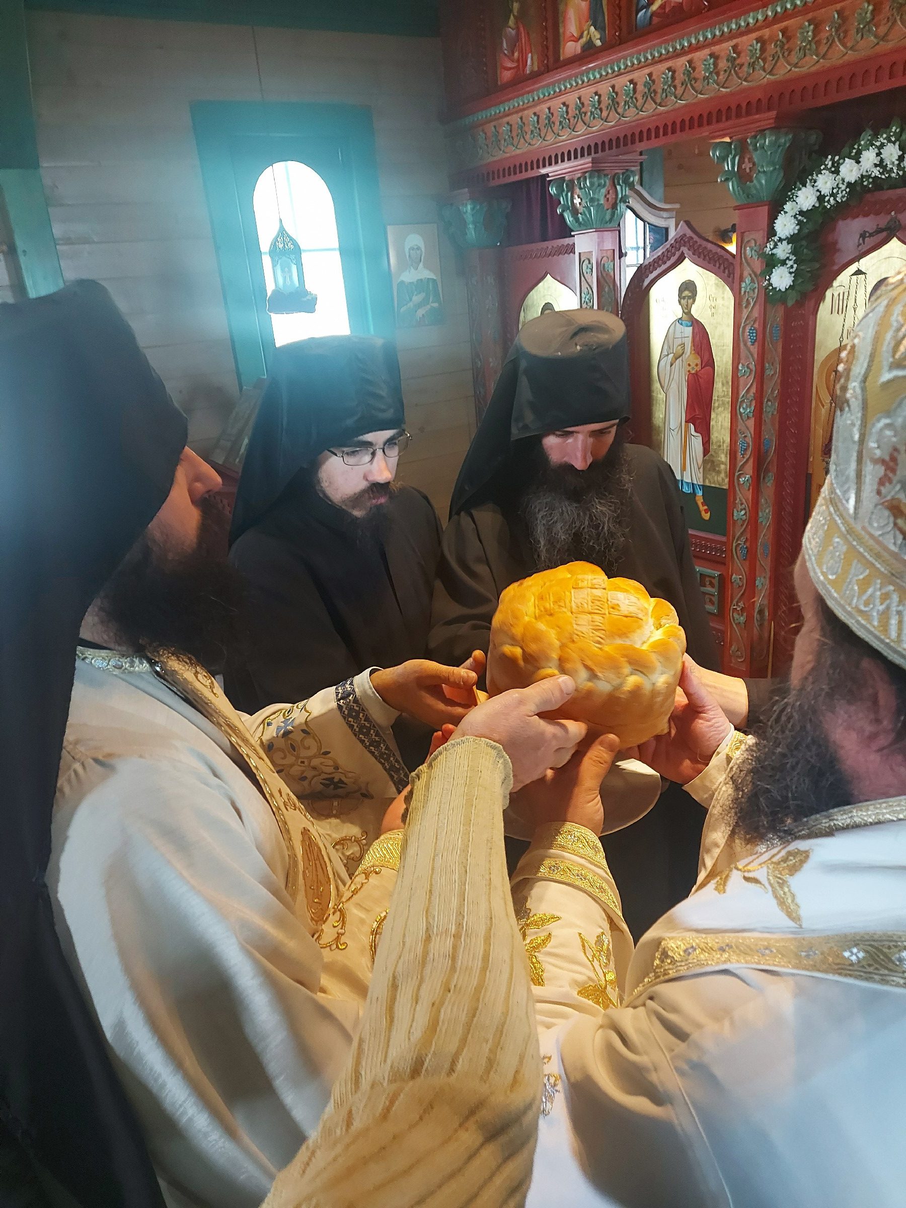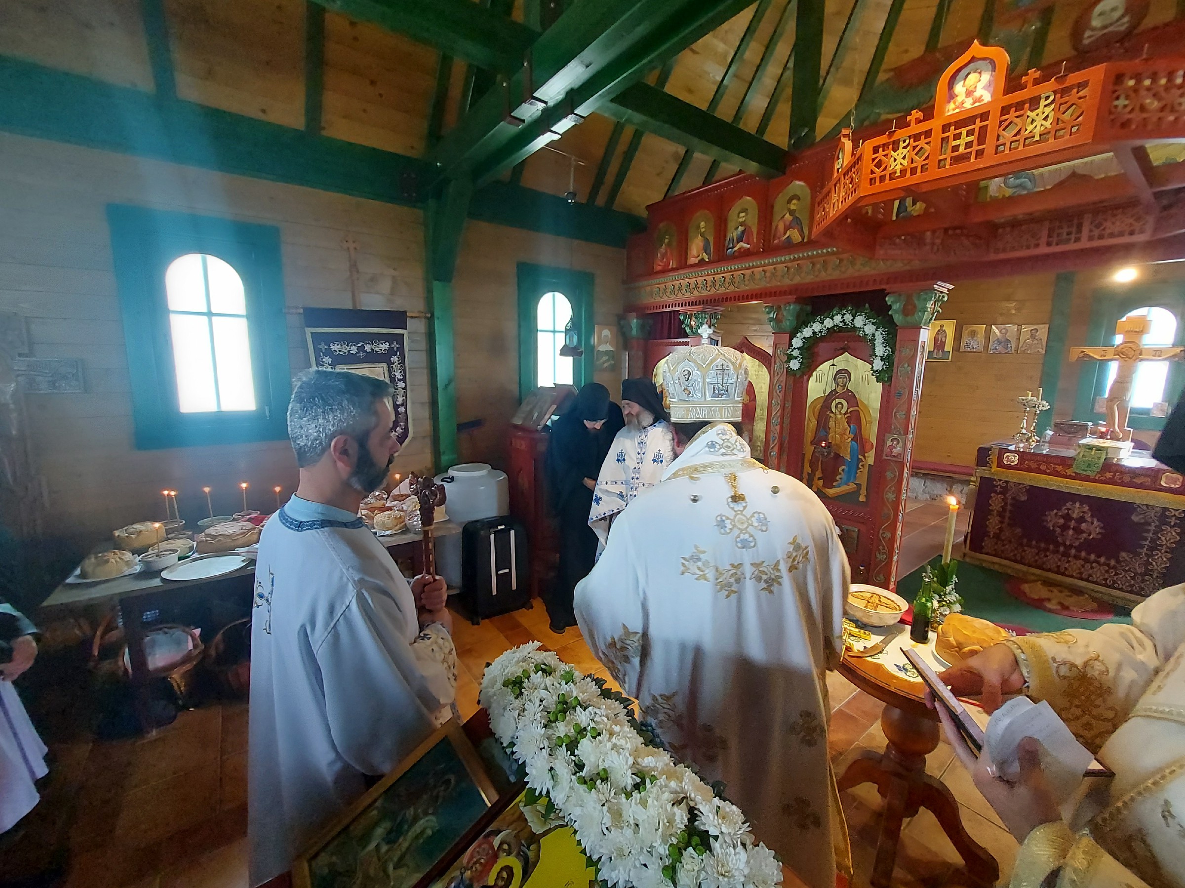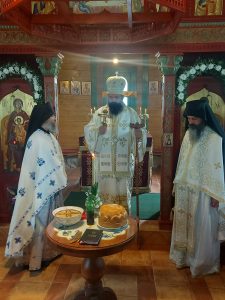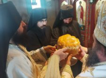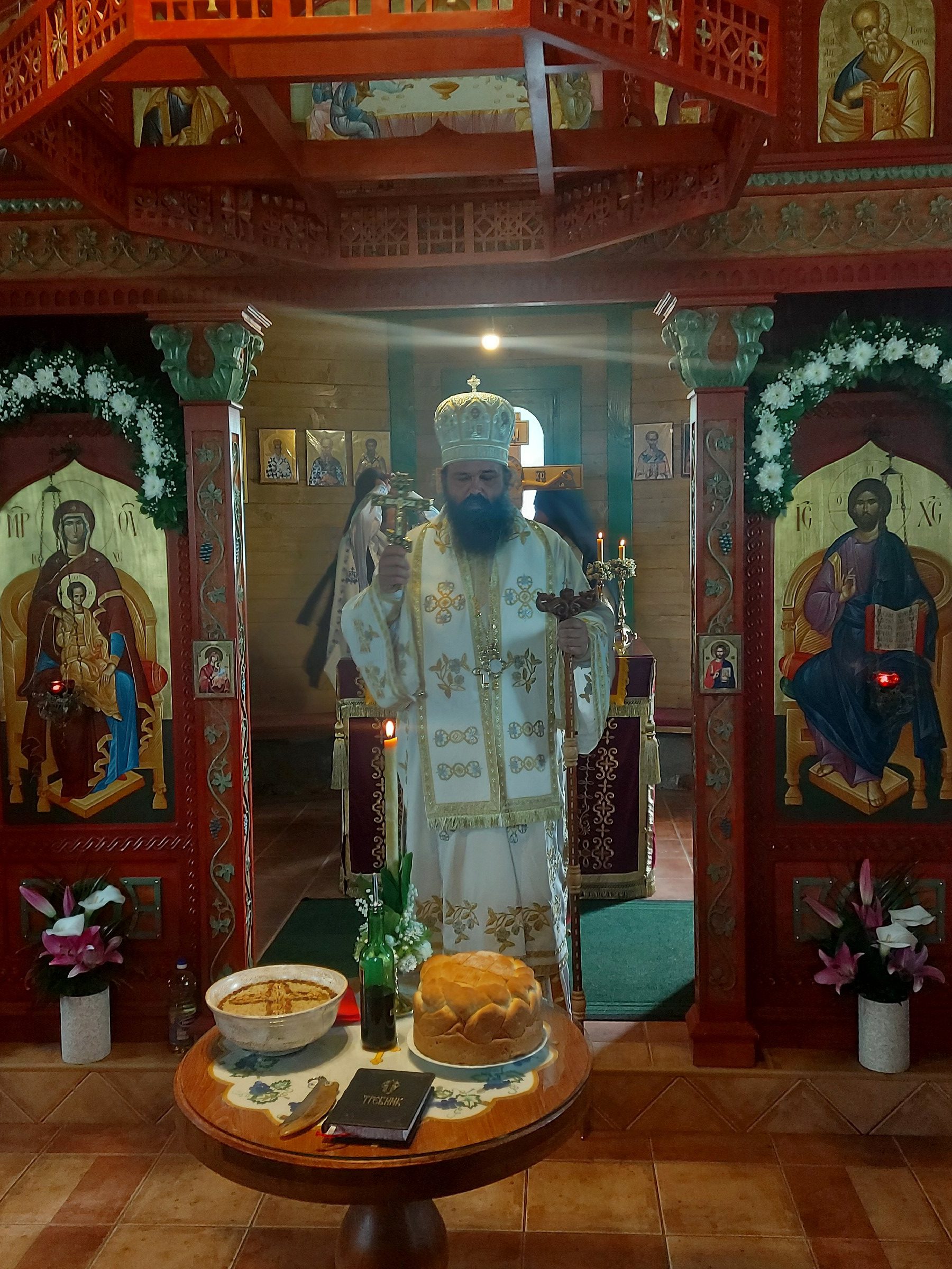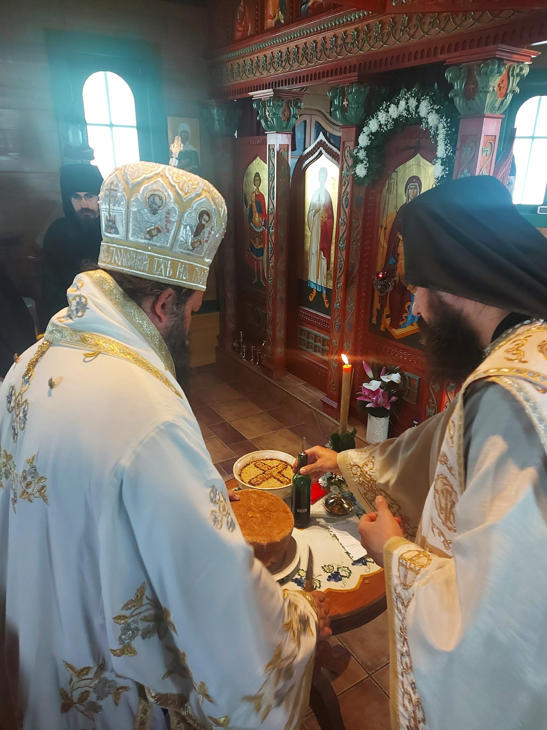 После Свете Литургије Епископ Ксенофонт је извршио чин резања славског колача и благосиљања кољива које су у част Светог Георгија принели јерођакон Георгије, монаси Митрофан и Артемије, ктитор манастира Милош Стефановић, и бројни свечари овог великог угодника Божијег.