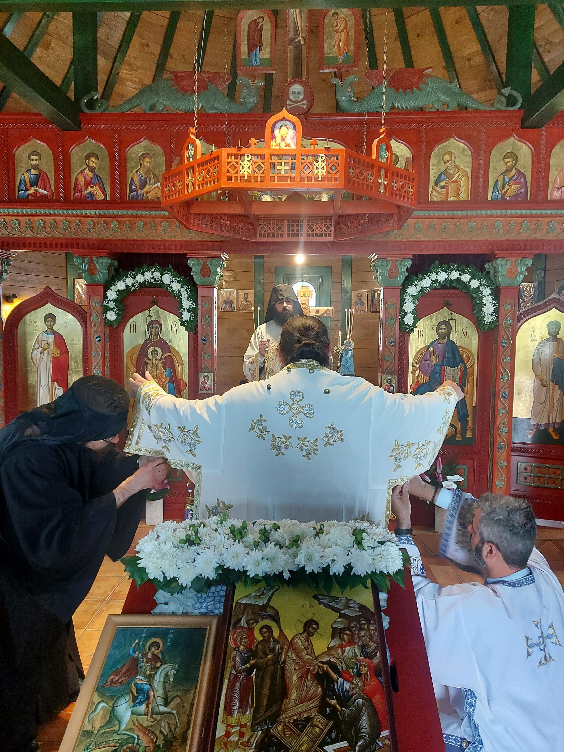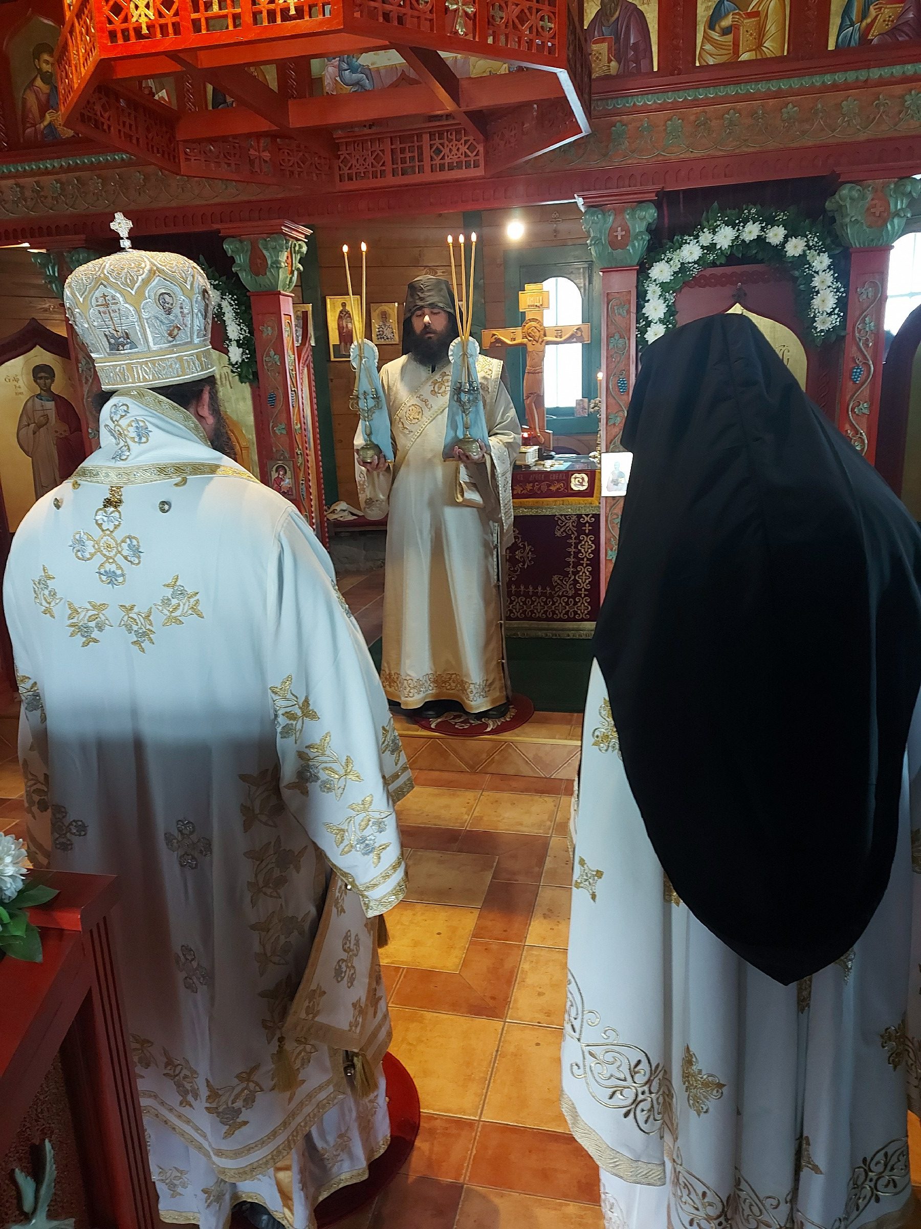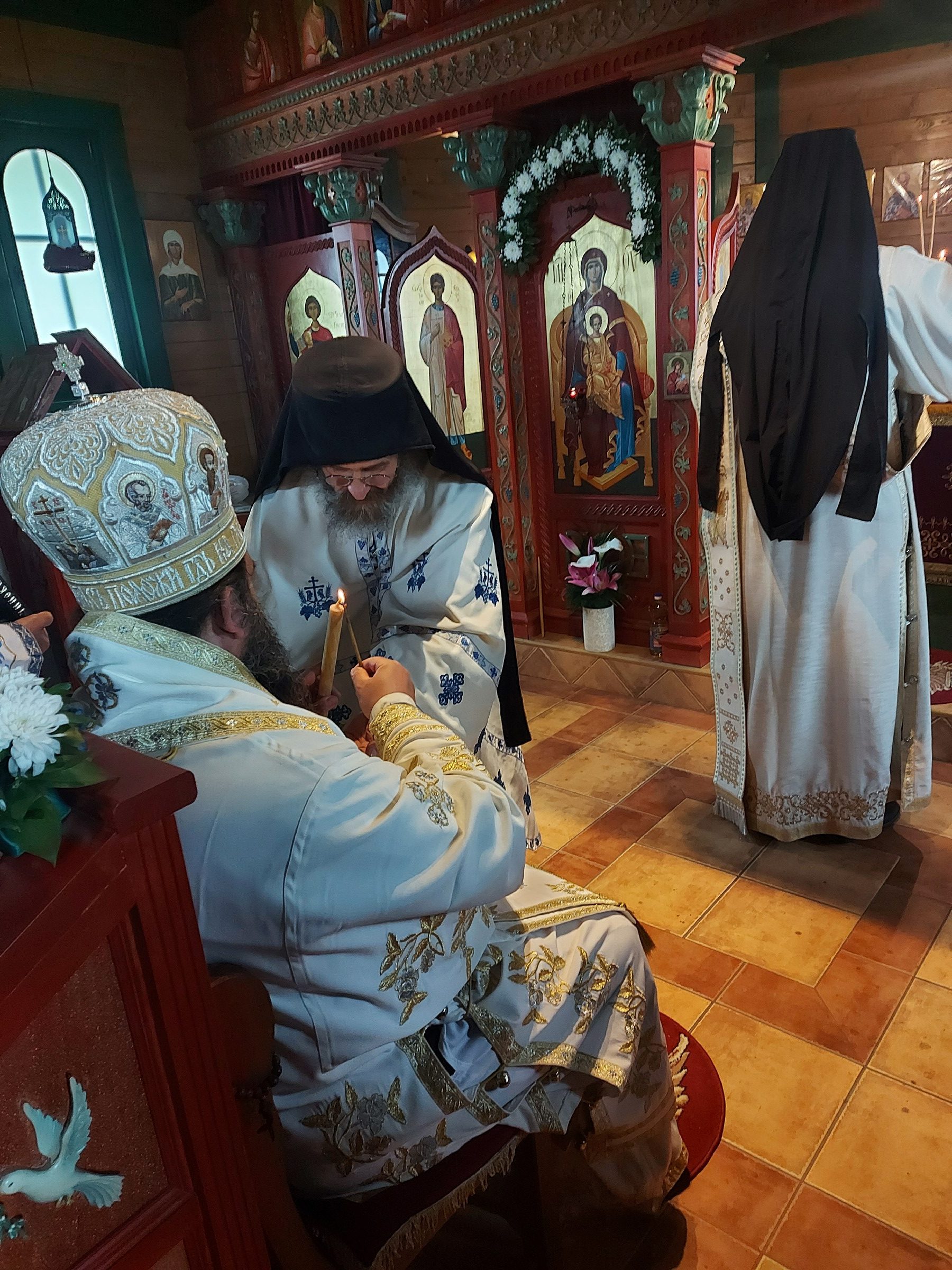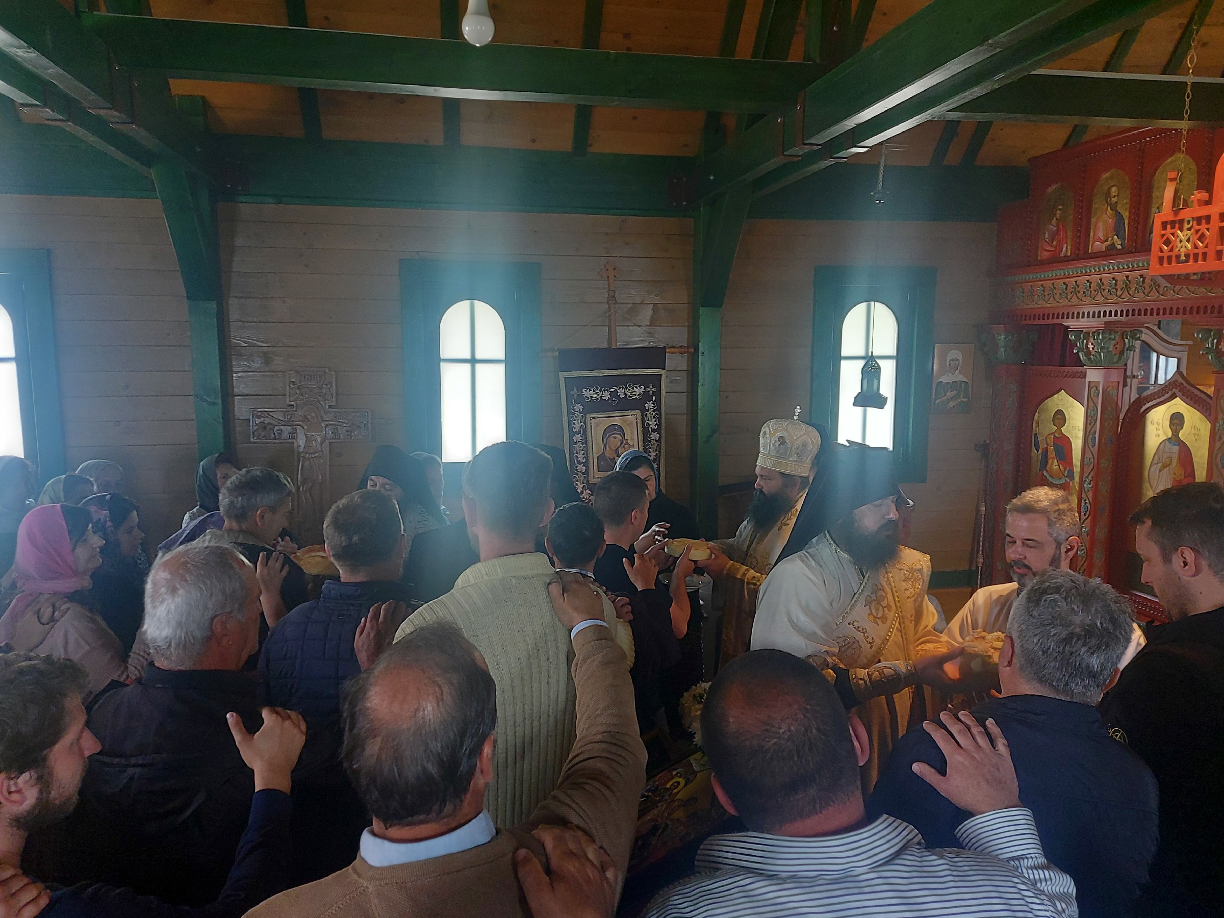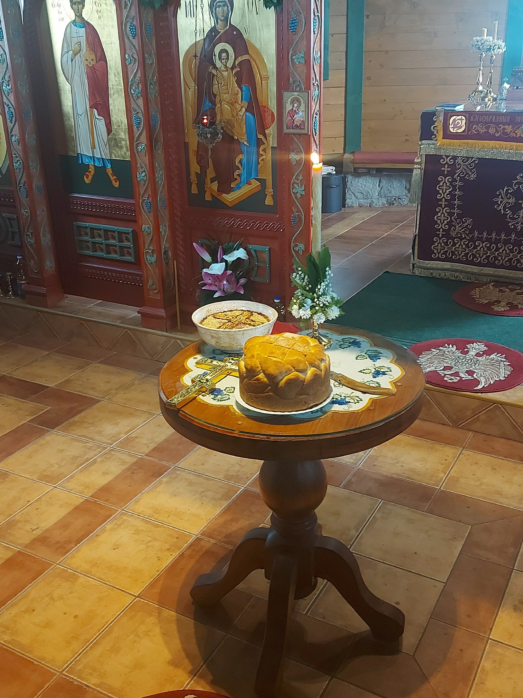 После Свете Литургије Епископ Ксенофонт је извршио чин резања славског колача и благосиљања кољива које су у част Светог Георгија принели јерођакон Георгије, монаси Митрофан и Артемије, ктитор манастира Милош Стефановић, и бројни свечари овог великог угодника Божијег.