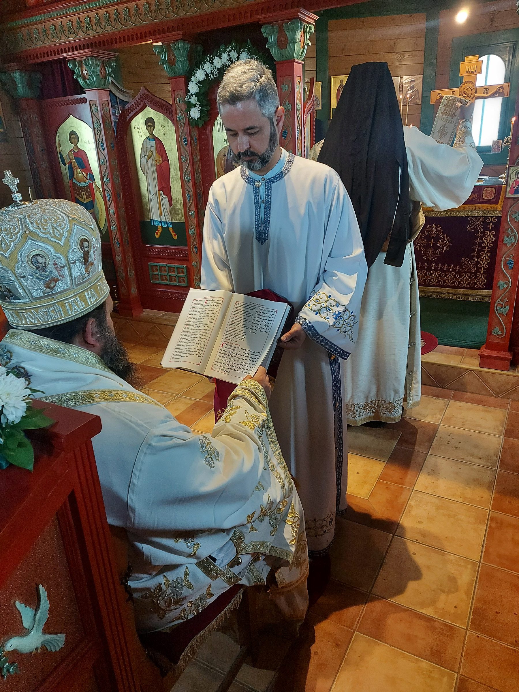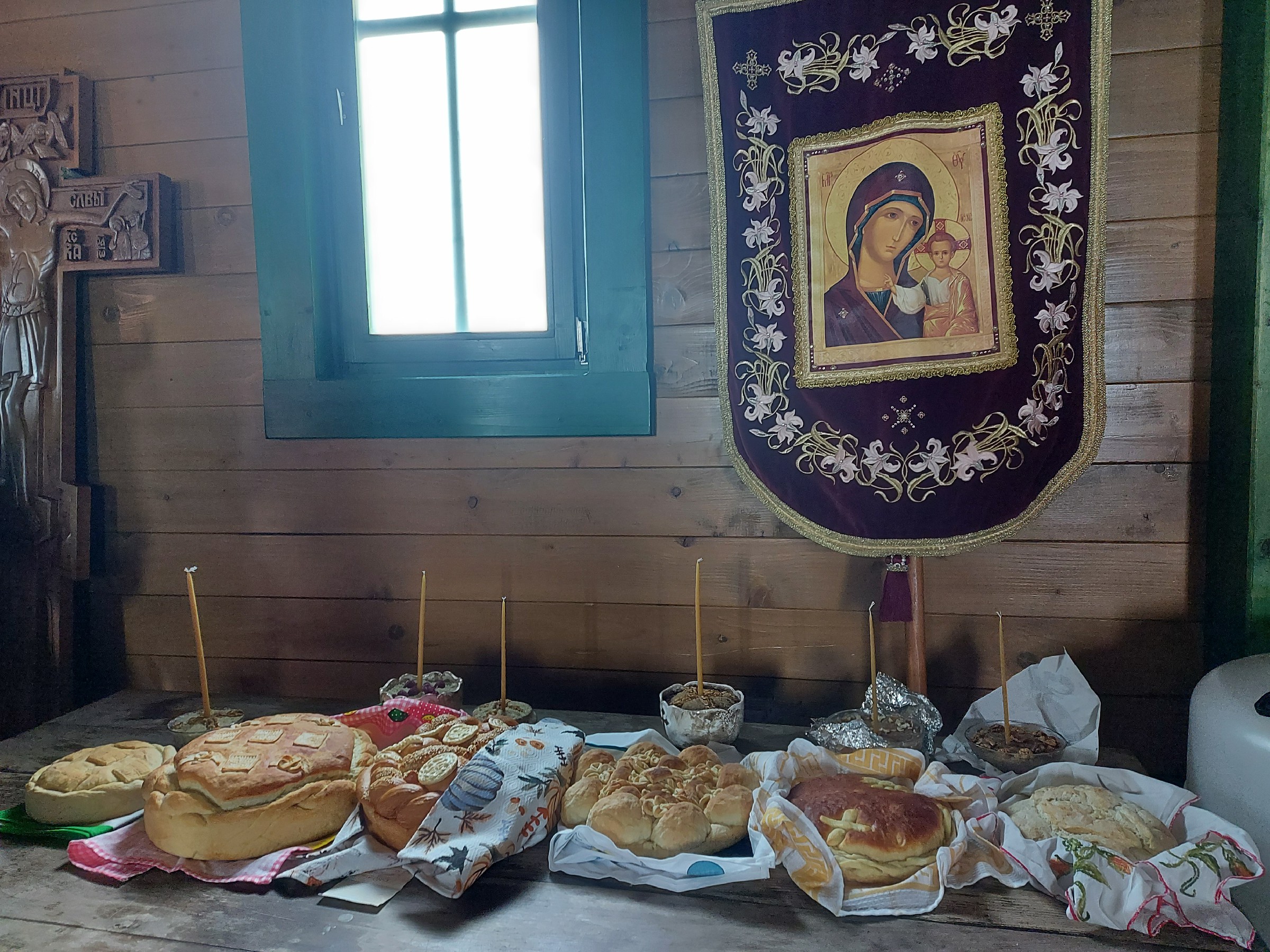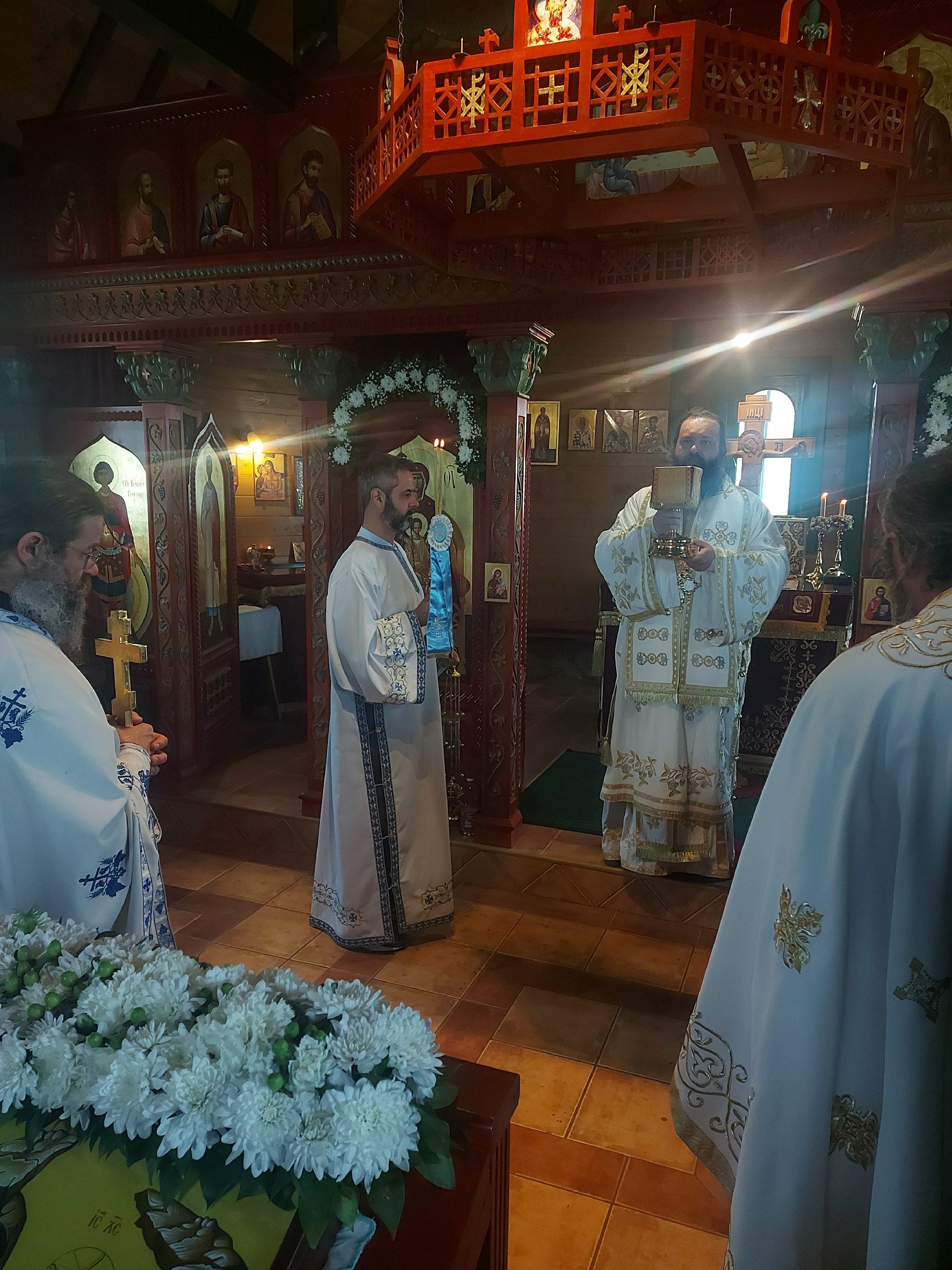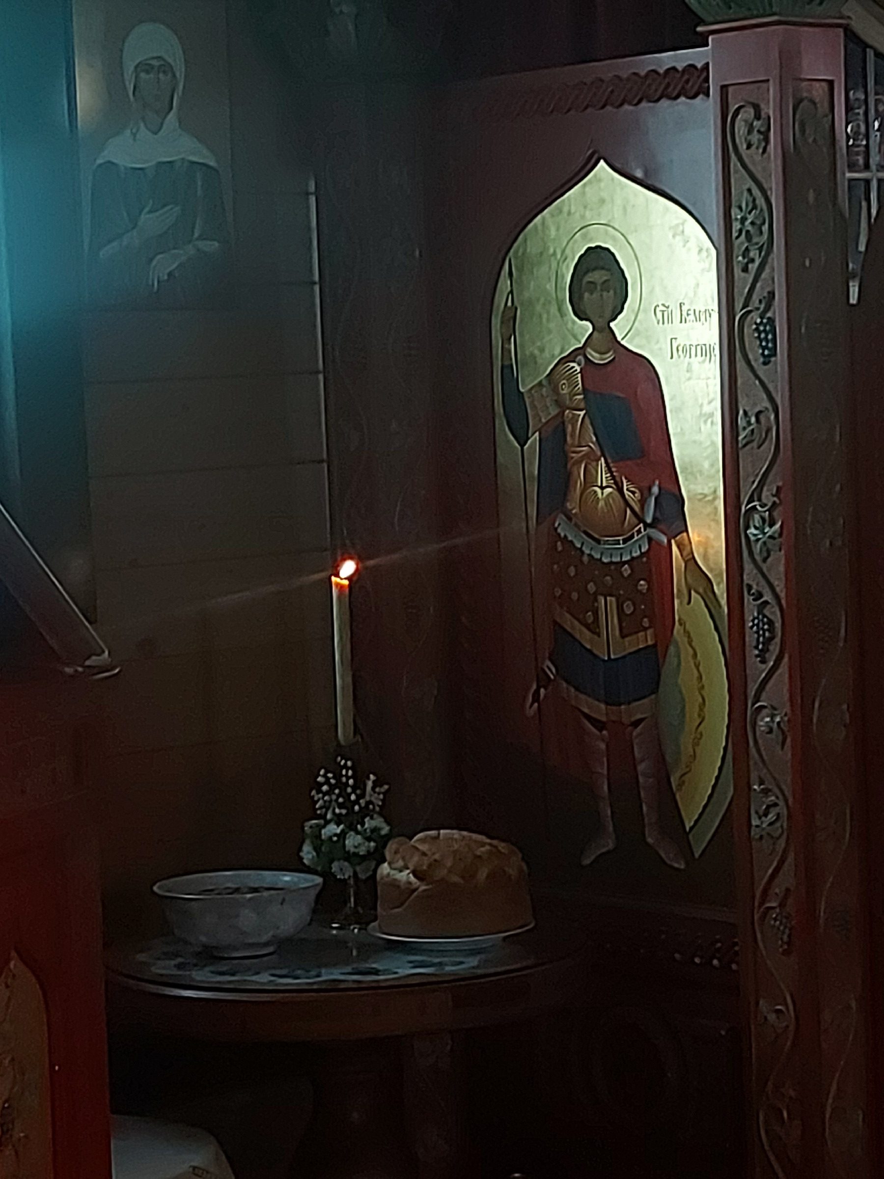 После Свете Литургије Епископ Ксенофонт је извршио чин резања славског колача и благосиљања кољива које су у част Светог Георгија принели јерођакон Георгије, монаси Митрофан и Артемије, ктитор манастира Милош Стефановић, и бројни свечари овог великог угодника Божијег.