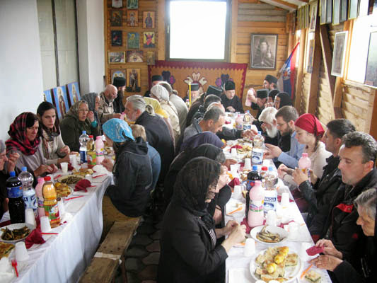 Након Свете Литургије, домаћини славе са оцем Небојшом су спремили трпезу љубави.