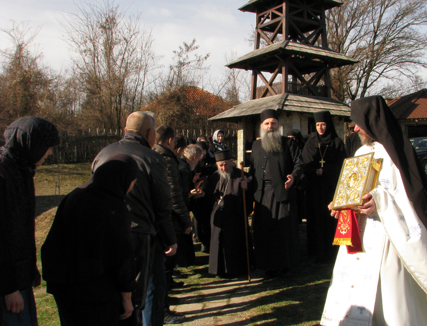 Архипастирском беседом присутном монаштву и народу обратио се Владика Николај. У својој беседи Владика Николај је говорио о посту, причешћу Светим Тајнама Христовим и чудесном јављању Светог Великомученика Теодора Тирона цариградском архиепископу Евдоксију у четвртом веку, због чега је прва субота Великог поста и добила назив – Теодорова субота.
