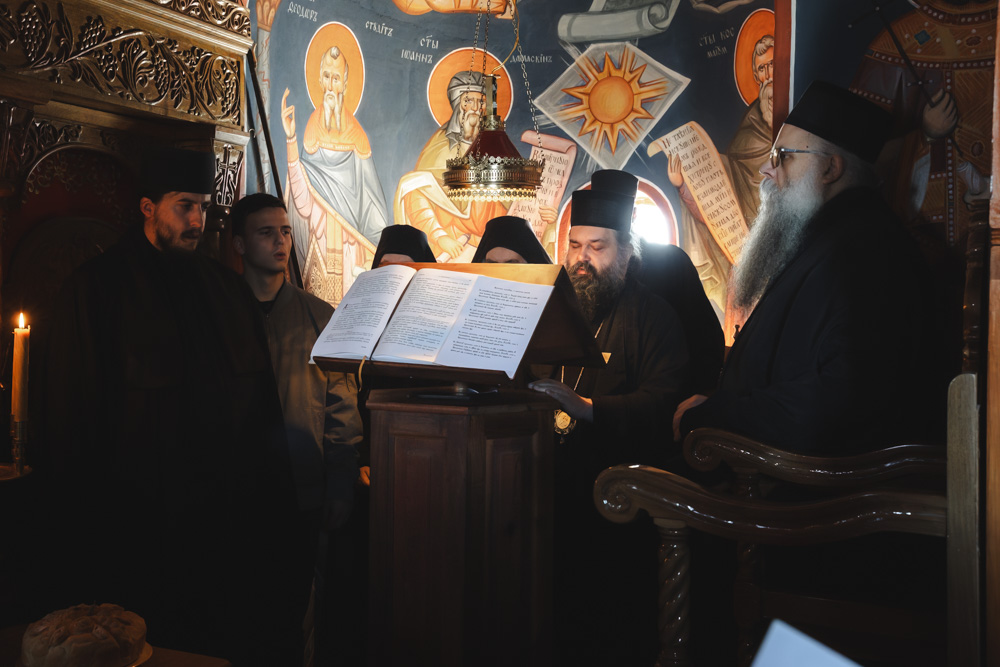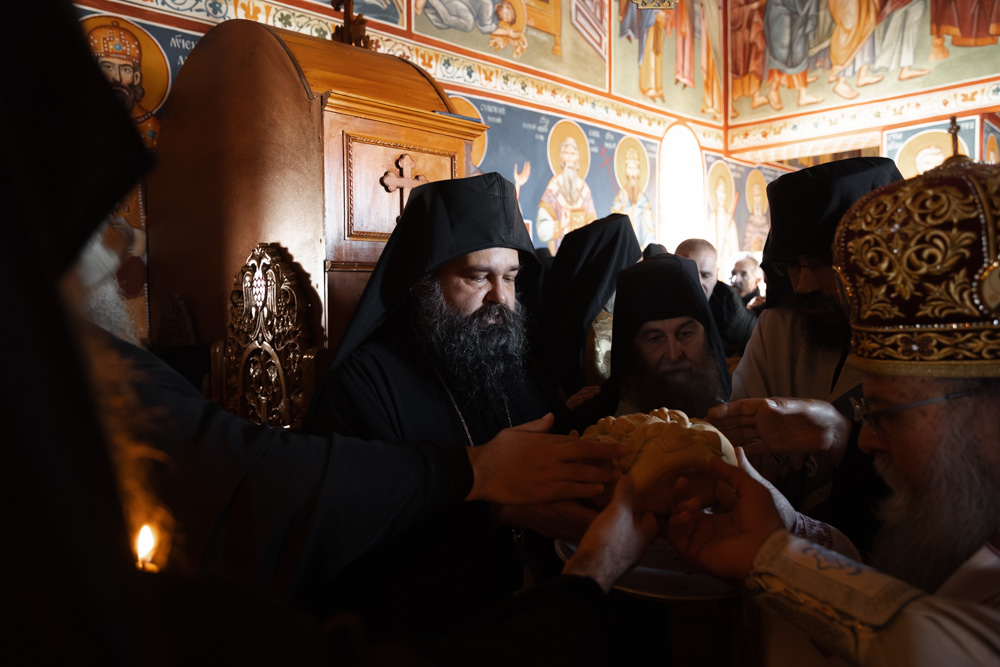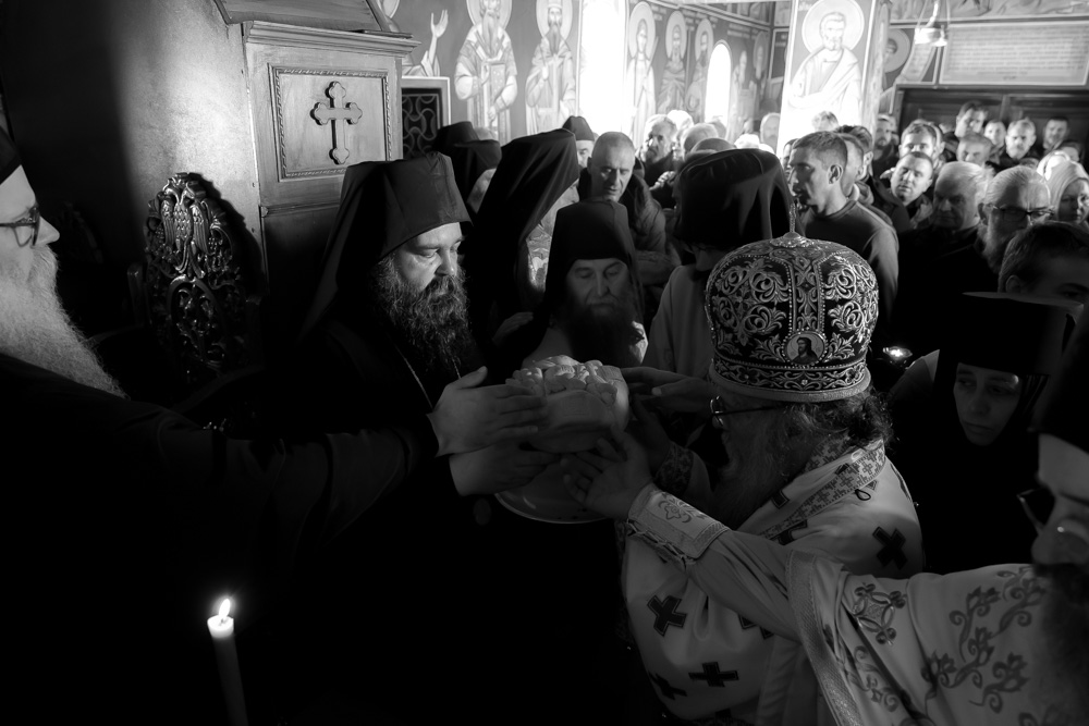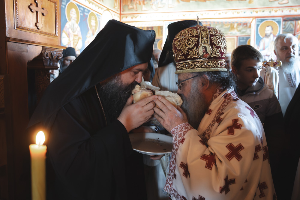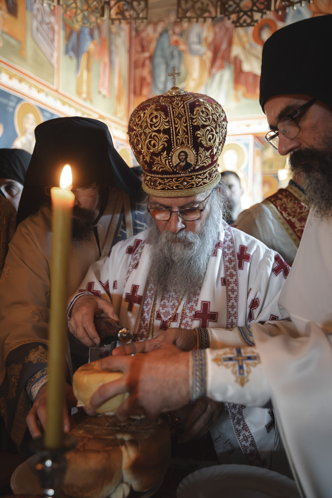 Након Свете Литургије Владика Николај обавио је чин резања славског колача и благосиљања жита које је у част Светог великомученика краља Стефана Дечанског принео Његово Преосвештенство Епископ рашко-призренски у егзилу Г.Г. Ксенофонт са братством манастира, и овогодишњи домаћини: Марко Смиљанић из Ужица, Гаврило Марковић из Крагујевца и Снежана Петрушић из Лешка. За следећу годину за домаћине славе пријавили су се: Илија Димитријевић из Ужица, Милеса Томашевић из Кадињаче, Ранко Шкркић из Крагујевца, Иван Васиљевић из Бајине Баште, Владислав Рибић из Ужица, и Снежана Петрушић из Лешка.