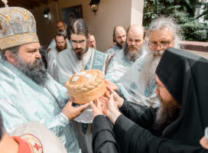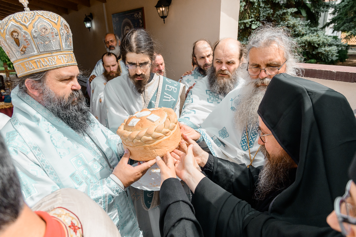 Након Литургије Владика Ксенофонт је извршио чин резања славског колача и благосиљања жита које је у част чудотворне иконе Пресвете Богородице Млекопитатељнице принело братство манастира и овогодишњи домаћини славе Бојан и Нера Тркуља и Ненада Јовановић из Београда. За идућу годину за домаћине славе су се пријавили: Живко и Драгана Мачешић из Остојићева, Милан Рељић из Нових Козараца и Коста Миличић из Новог Сада.