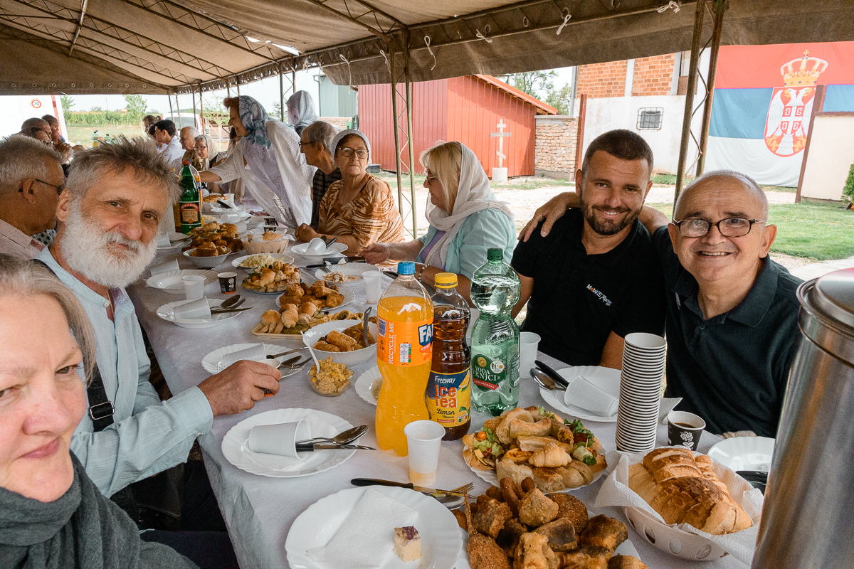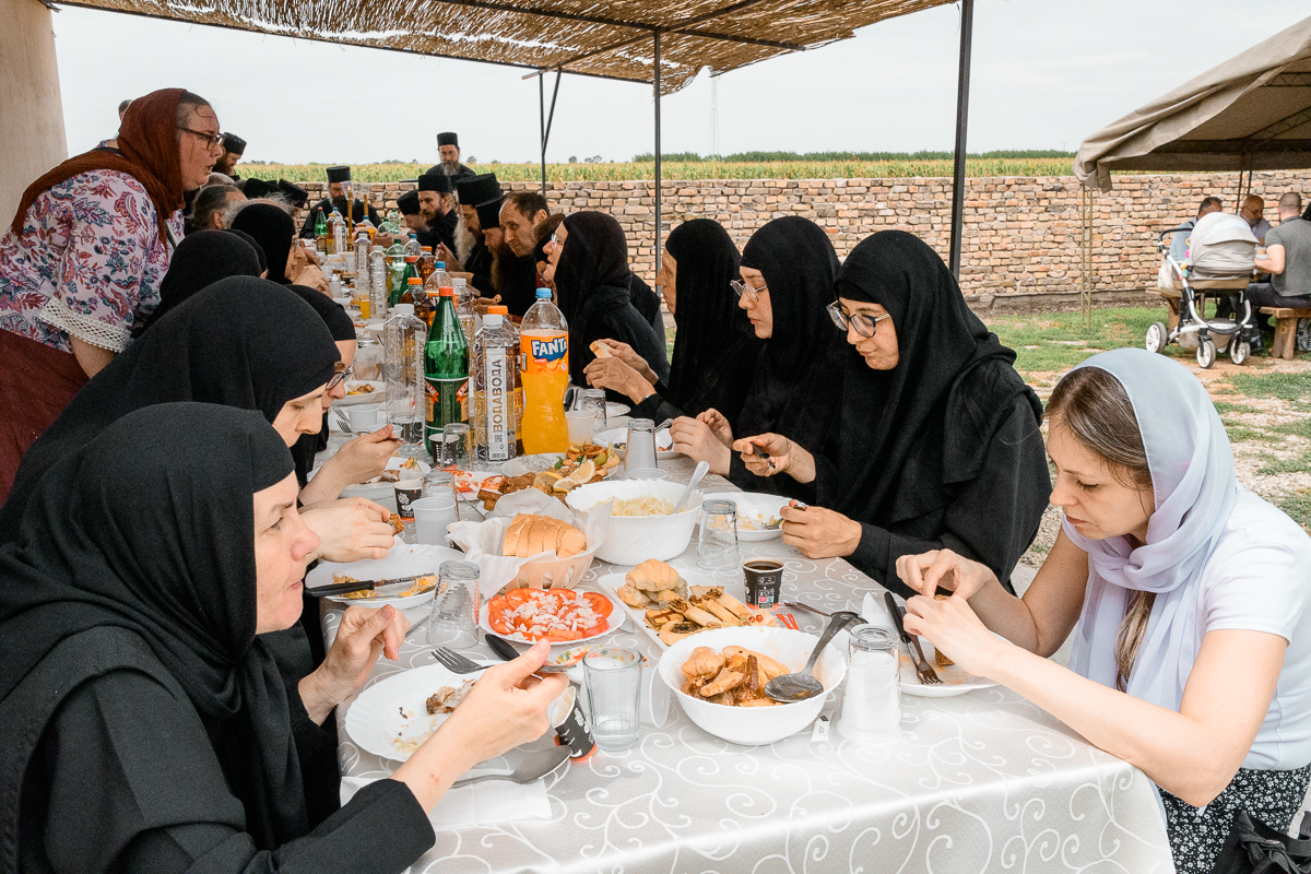 Након Литургије сви присутни су се укрепили на трпези љубави коју су припремили братство манастира и домаћини славе. У току трпезе љубави приређен је пригодни програм.