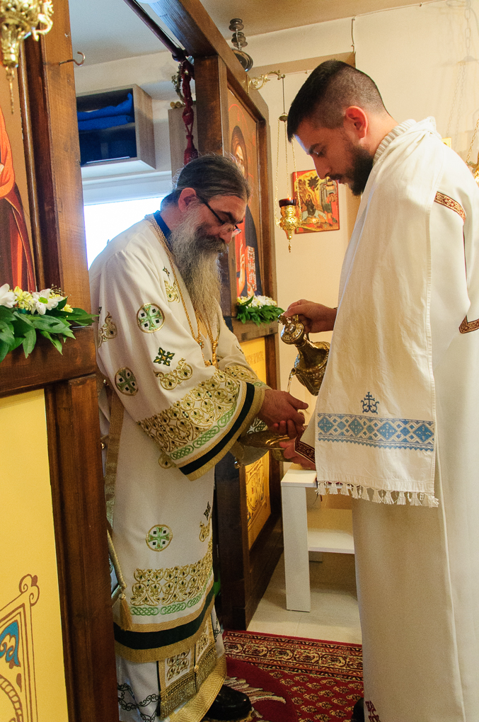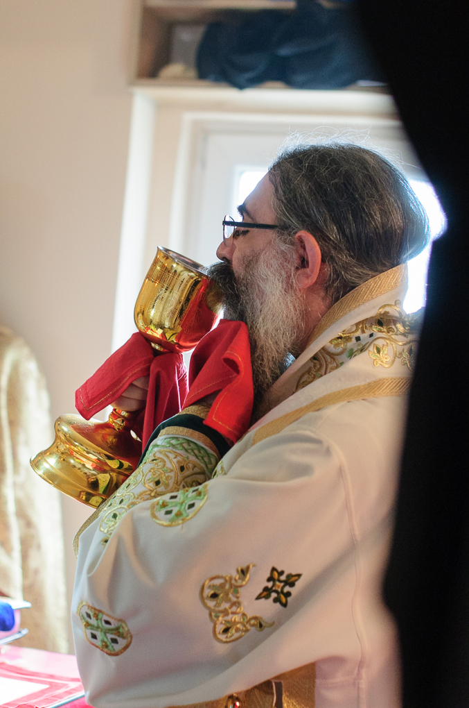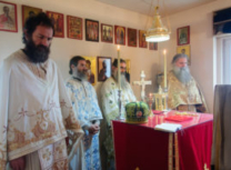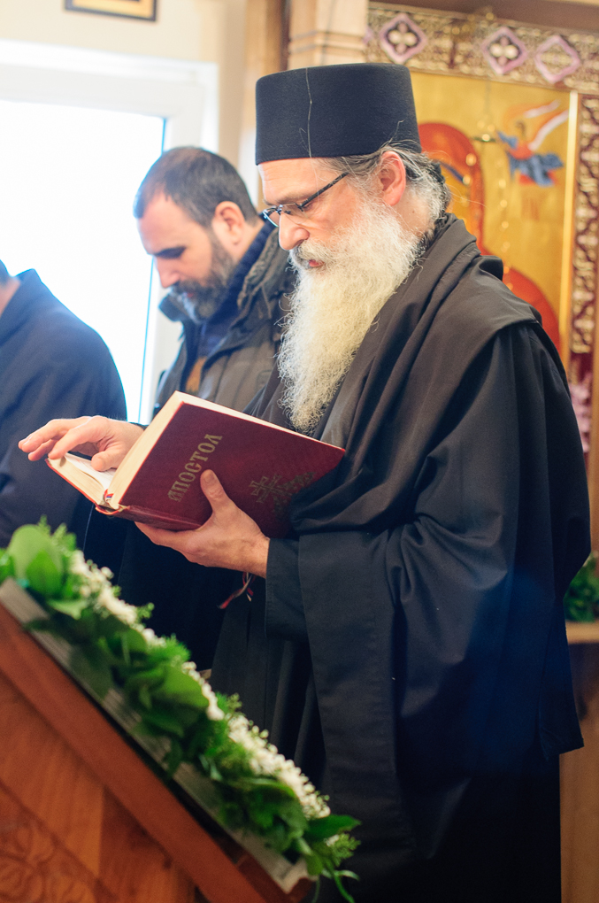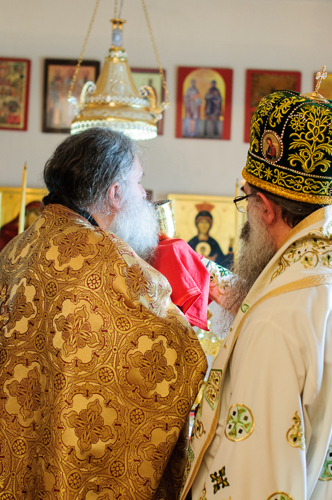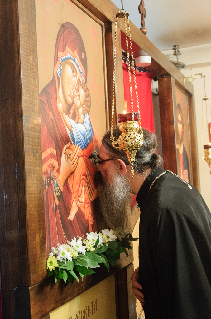 Након Литургије Владика Наум је извршио чин резања славског колача и благосиљања жита које је у част Чудотворне иконе Пресвете Богородице Млекопитатељнице принело братство манастира.