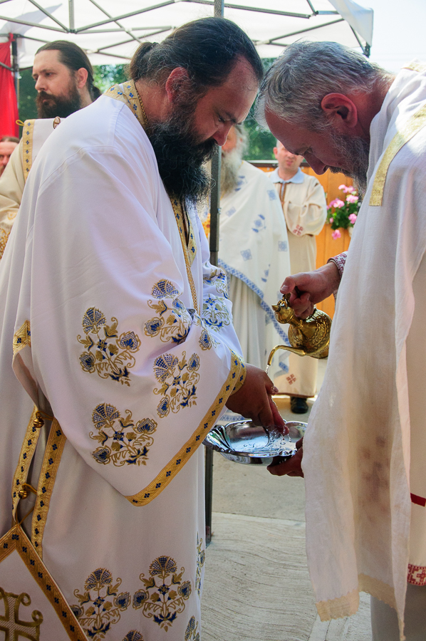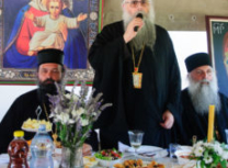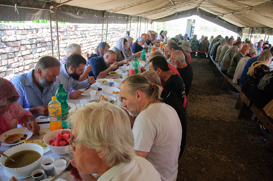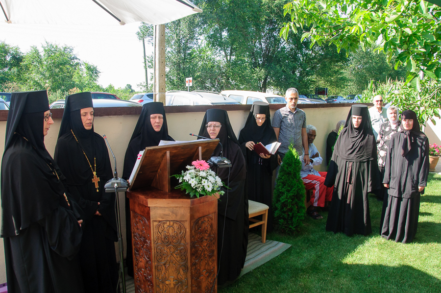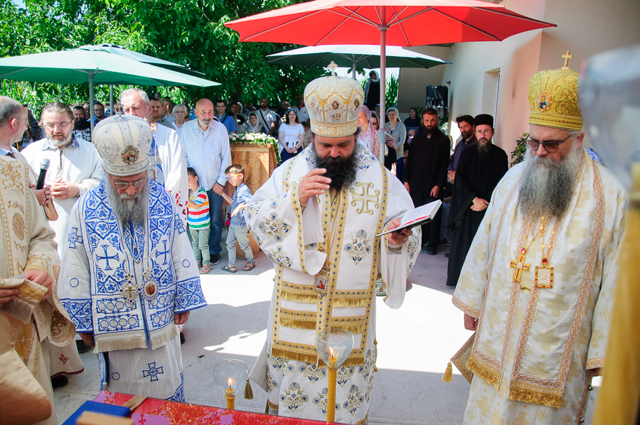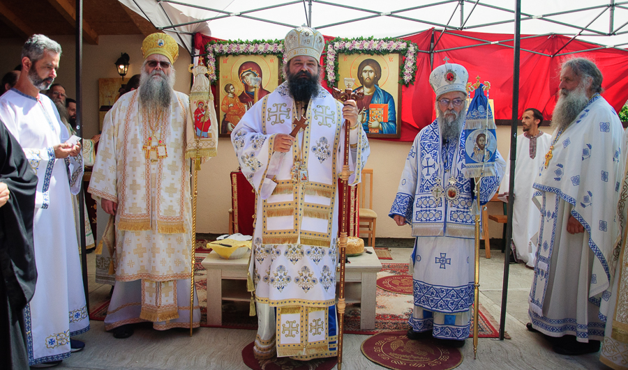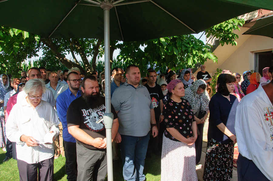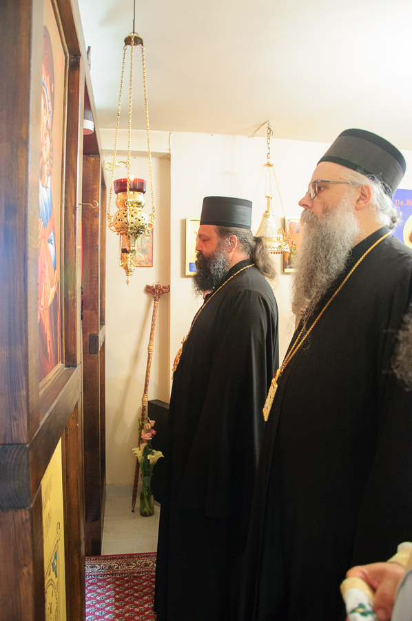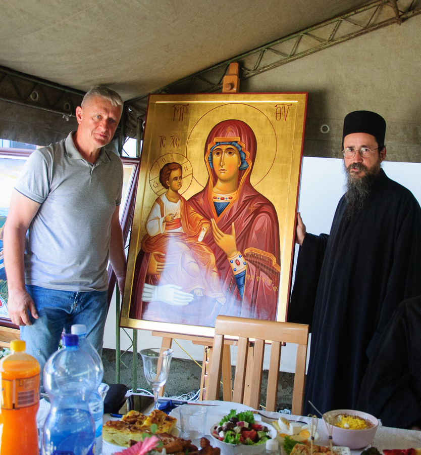 Након Литургије сви присутни су се укрепили на трпези љубави коју су припремили братство манастира и домаћини славе. Присутнима су се том приликом пригодним беседама обратили Владика Максим и ктитор манастира Милан Рељић и том приликом у своје и име своје породице даривао преосвећене Владике Ксенофонта, Николаја и Максима иконама Пресвете Богородице и копијом чувене слике „Косовке девојка“, а сам манастир је даривао иконом Богородице Тројеручице у ком ће на даље почивати на утеху и радост свима вернима.