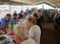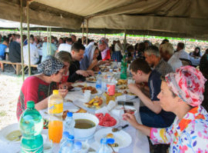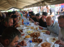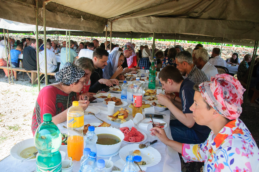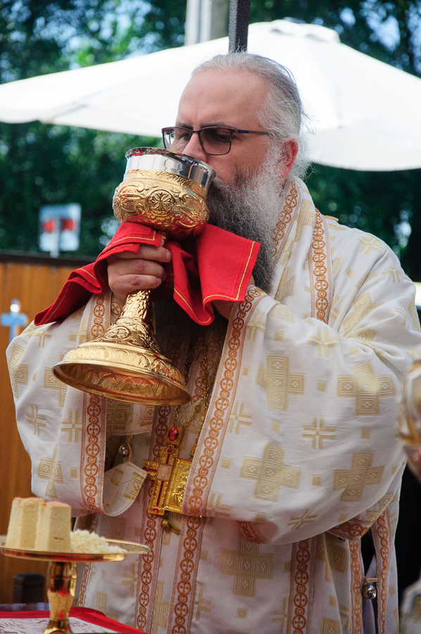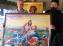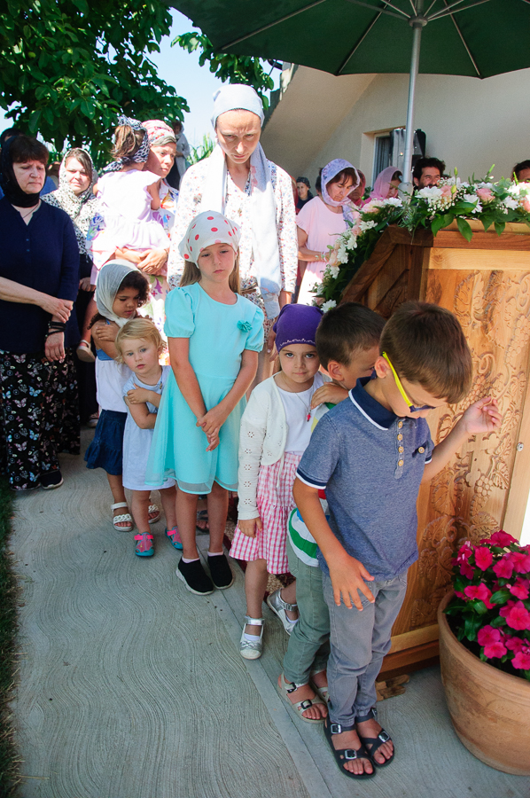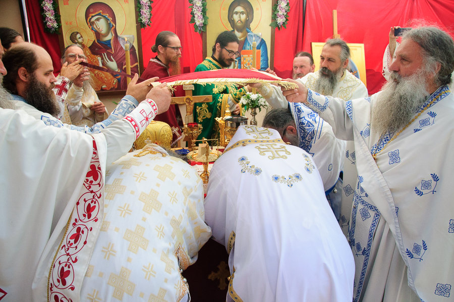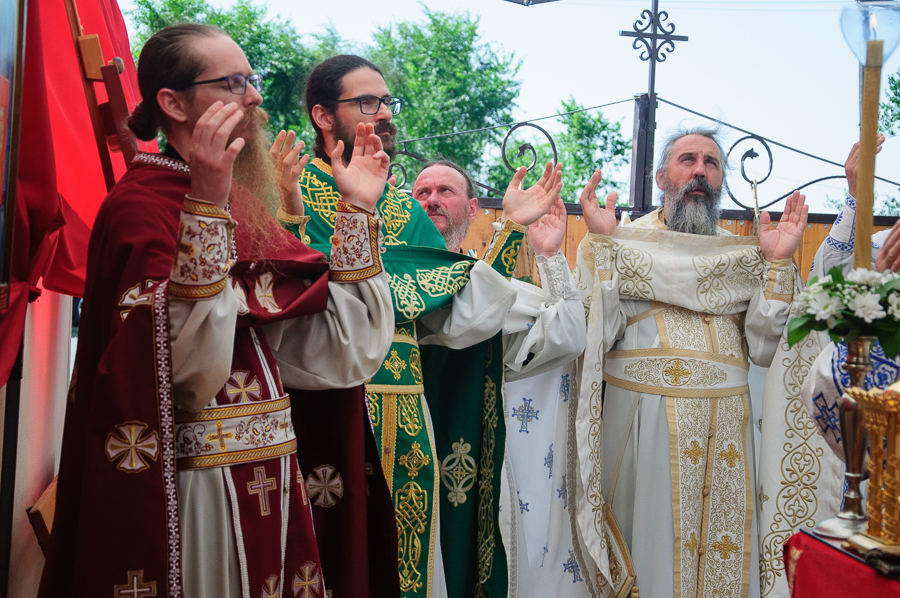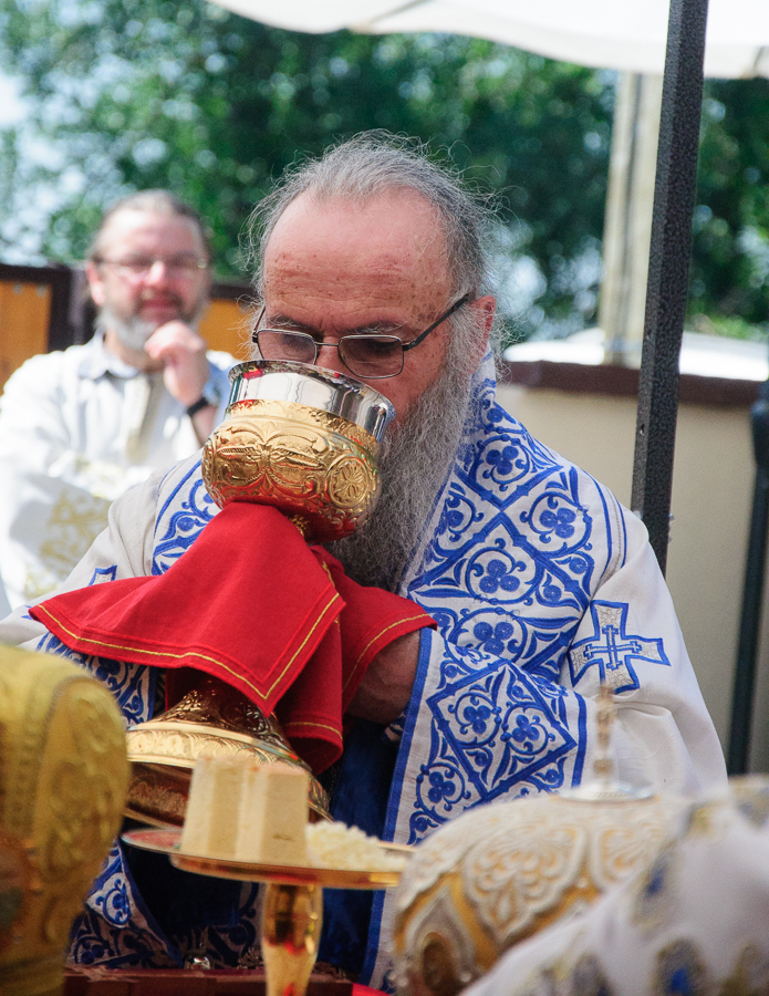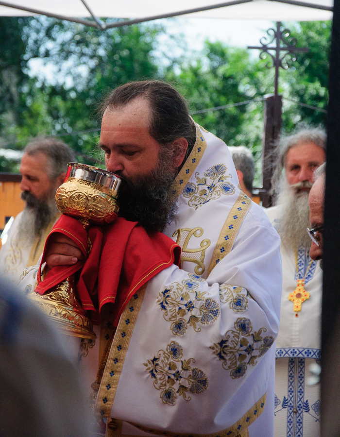 Након Литургије сви присутни су се укрепили на трпези љубави коју су припремили братство манастира и домаћини славе. Присутнима су се том приликом пригодним беседама обратили Владика Максим и ктитор манастира Милан Рељић и том приликом у своје и име своје породице даривао преосвећене Владике Ксенофонта, Николаја и Максима иконама Пресвете Богородице и копијом чувене слике „Косовке девојка“, а сам манастир је даривао иконом Богородице Тројеручице у ком ће на даље почивати на утеху и радост свима вернима.