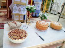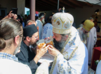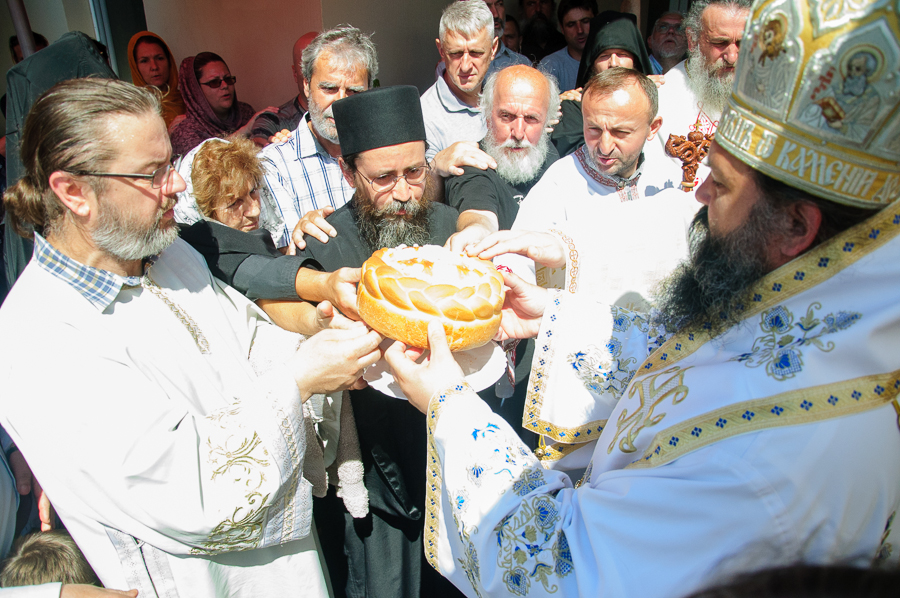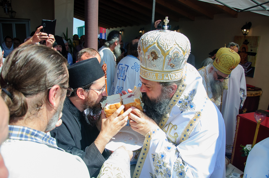 Након Литургије Владика Ксенофонт је извршио чин резања славског колача и благосиљања жита које је у част Чудотворне иконе Пресвете Богородице Млекопитатељнице принело братство манастира и овогодишњи домаћини славе Ђура и Бранка Шипош из Новог Сада и Лука и Сњежана Стевановић из Руменке. За идућу годину за домаћина славе се пријавио Јован Миљковић из Беча.