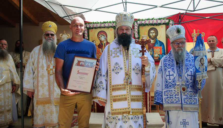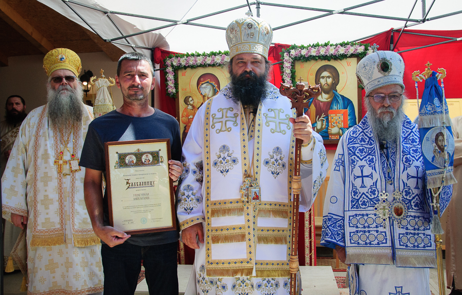 Владика Ксенофонт је потом доделио захвалнице добротворима манастира. Захвалнице су добили: Божа и Ђурђинка Радић из Беча, Новица Ђорић из Доњег Слатовца, Мирко Мркеља из Нових Козараца, Дејан Ристановић из Земуна, Снежани Кужет из Железника, Борислав Тот из Кикинде, Дамир Бањац из Кикинде, Ненад Јовичић из Београда, Дамир Шобот из Петроварадина и Давор Илић из Петроварадина. Захвалнице су додељене за испољену делатну љубав у борби за очување чистоте светог православља и за ревност према храму Божијем и његовом благољепију.