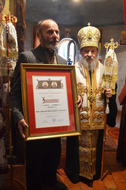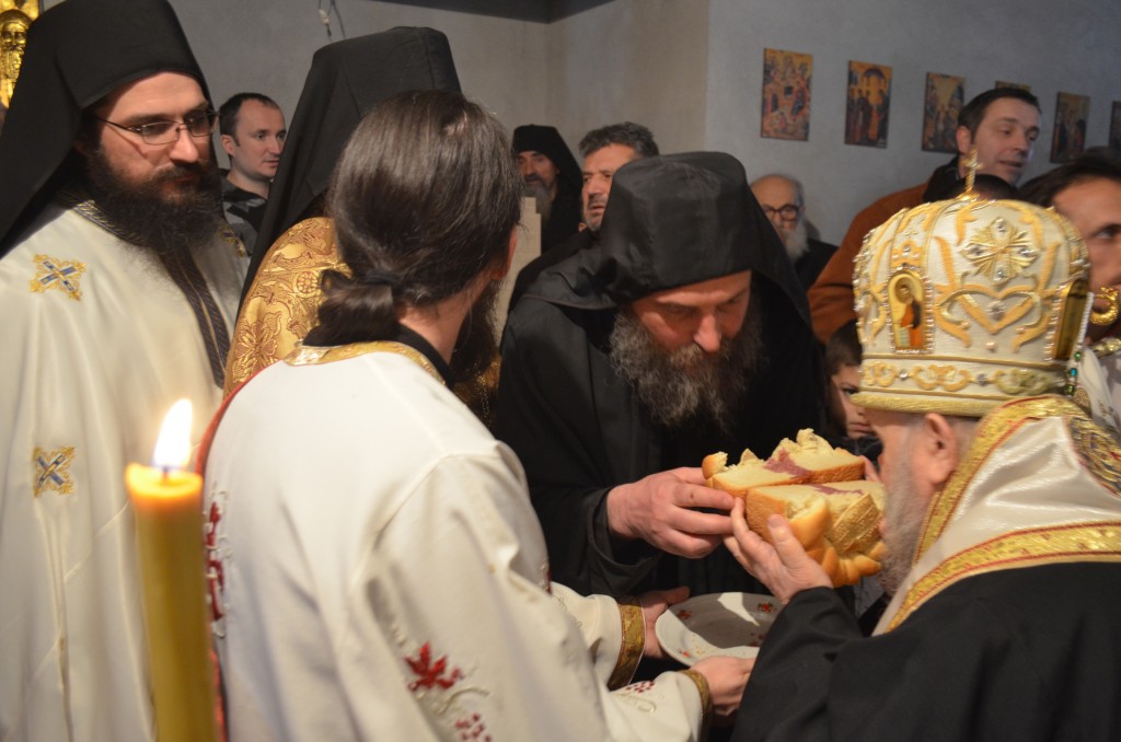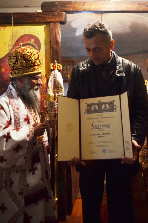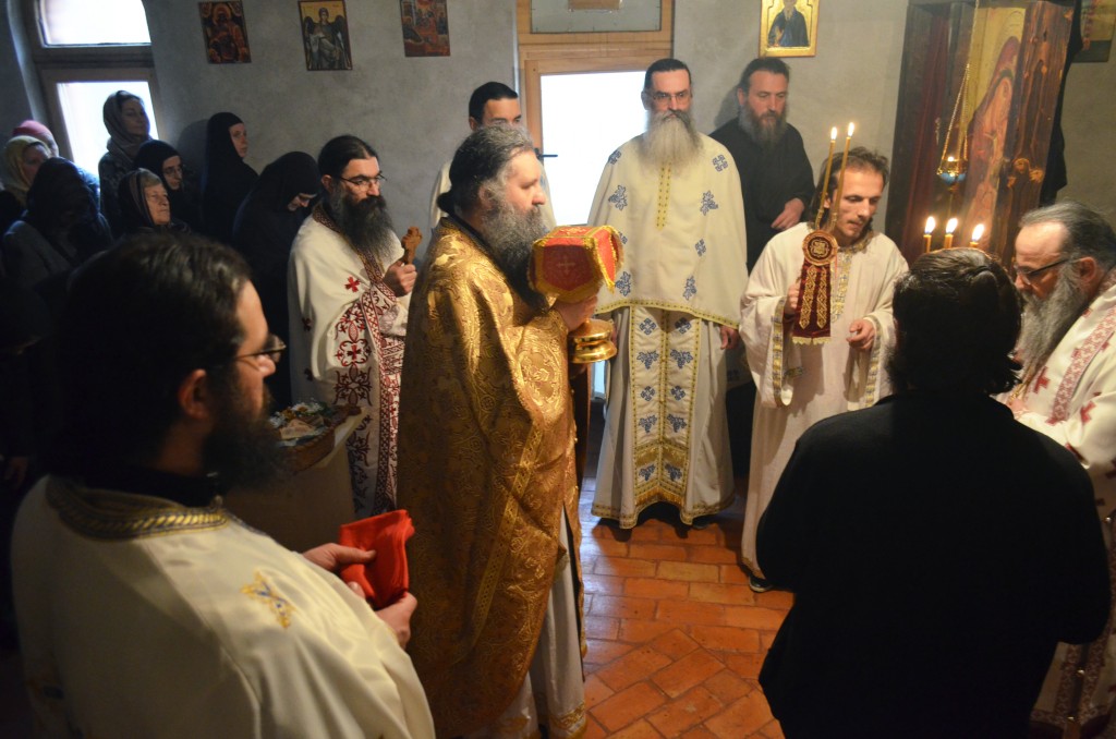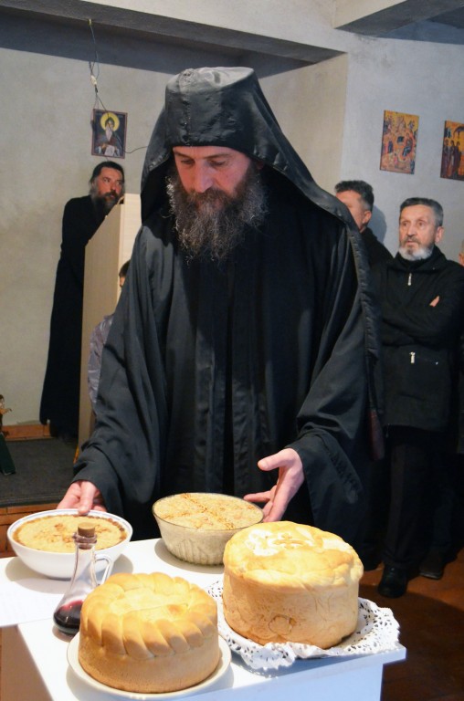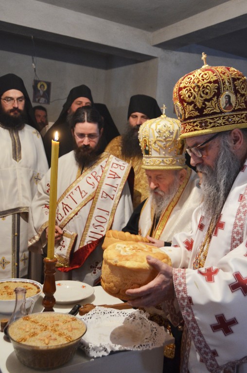 Након Свете Литургије Владика Артемије је обавио чин резања славског колача и благосиљања кољива које су принели манастирско братство и овогодишњи домаћини славе: Предраг Васовић, Ранка Милентијевић и Драган Станишић из Рашке. За идућу годину за домаћине славе пријавили су се: Славомир Јаковљевић, Миланка Марковић и Нина Стојановић из Новог Пазара. Овогодишња прославе храмовне славе имала је још један свечани догађај – доделу ктиторске и донаторских захвалница. Ктиторску захвалницу Владика Артемије је уручио брату Крсти Белићу из Дежеве, који је манастиру поклонио имање. Донаторске захвалнице добило је десетак светосаваца из Рашке и Новог Пазара.