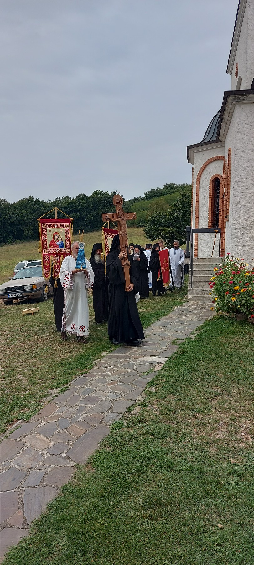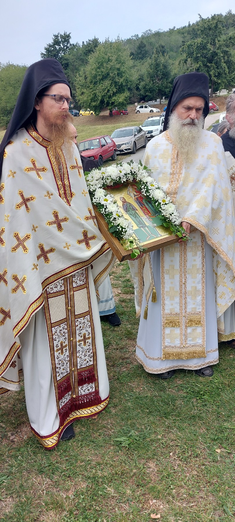 Након Свете Литургије Владика Ксенофонт је извршио чин резања славског колача и благосиљања кољива које су у част Светог Јована Крститеља принели братство манастира и овогодишњи домаћини славе: Милош Вучићевић са породицом из Горњег Милановца и Александар Миљевић са породицом из Београда. За идућу годину за домаћине славе пријавили су се: Радован Миливојевић из Горњег Милановца, Првослав Пајевић из Краљева, Божидар Раковић из Челарева и Евгенија Нонковић из Београда.