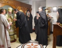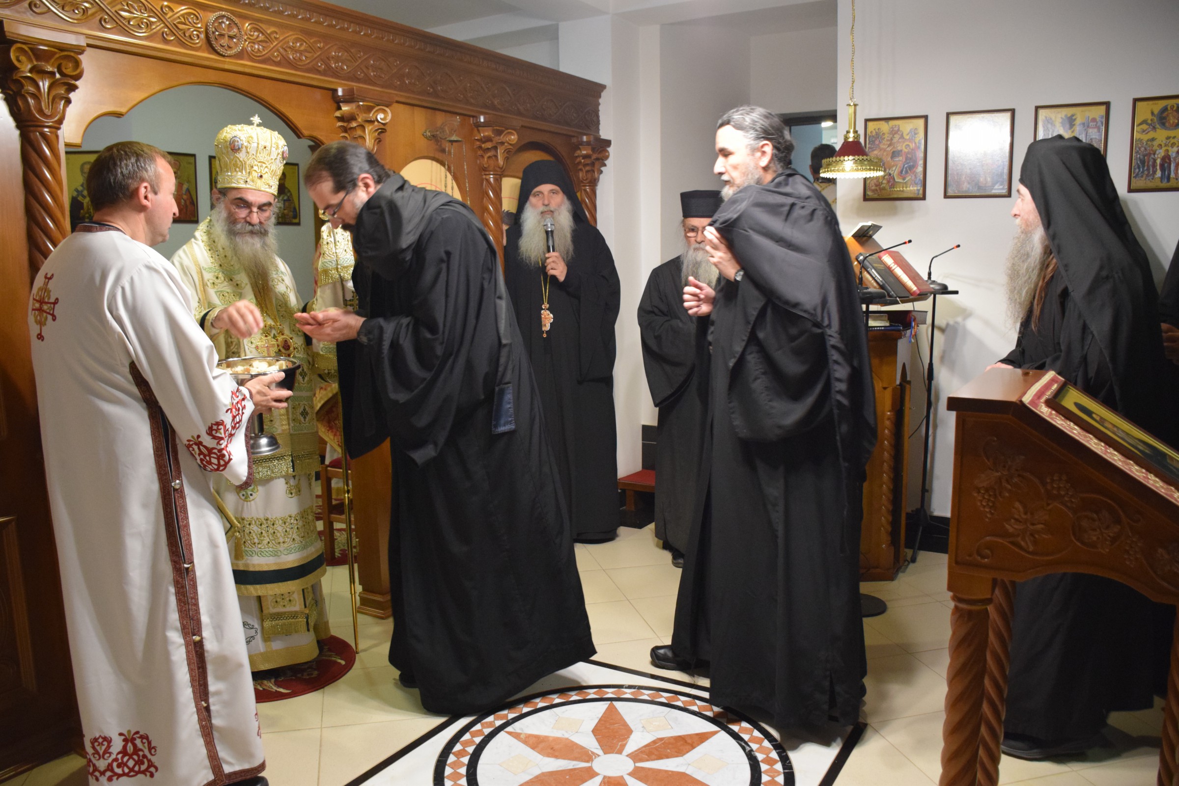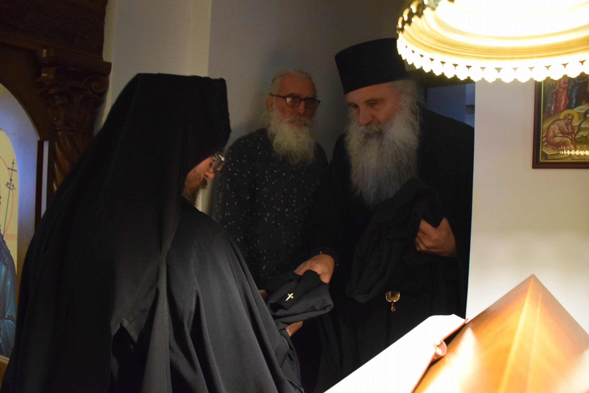 Пре почетка Литургије Владика Ксенофонт је благословио облачење подрасника искушенику поменутог манастира Раденку Бераку.