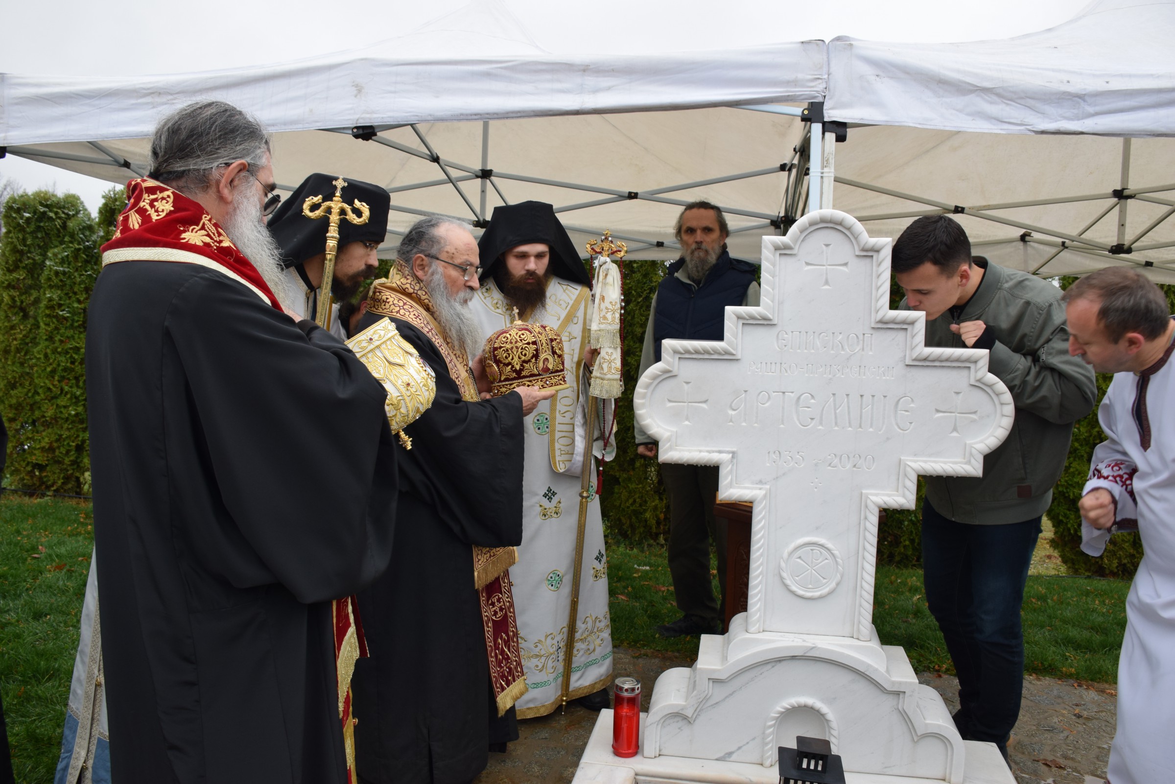 Ваша Преосвештенства, часни и преподобни оци, преподобне сестре монахиње, драга браћо и сестре, сабрали смо се данас око гроба нашег духовног оца и епископа Артемија да се помолимо за покој његове душе и да примимо његов свети благослов и молитве, уверени да је он својим животом угодио Богу и да има велику слободу пред Господом.