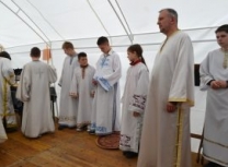 Ето, данас је нама пало у део браћо и сестре, борба са том пошасти 20. и 21. века. Пало је на нас да одбранимо Веру Православну, а одбранићемо је само тако ако останемо у заједници са Светим Оцима које данас прослављамо, ако следимо њих као што су они следили Свете Оце пре себе и свете апостоле, онда ће и Господ бити са нама јер је Он рекао пред своје Вазнесење: “Ево, Ја сам с вама до свршетка века“. Господ није напустио Своје ученике, Своју Цркву када се вазнео на Небо, него се вазнео да би отуда послао Светога Духа на Своје свете апостоле, који јесте у ствари и оснивање Цркве Божије на земљи“ – нагласио је Владика Артемије.