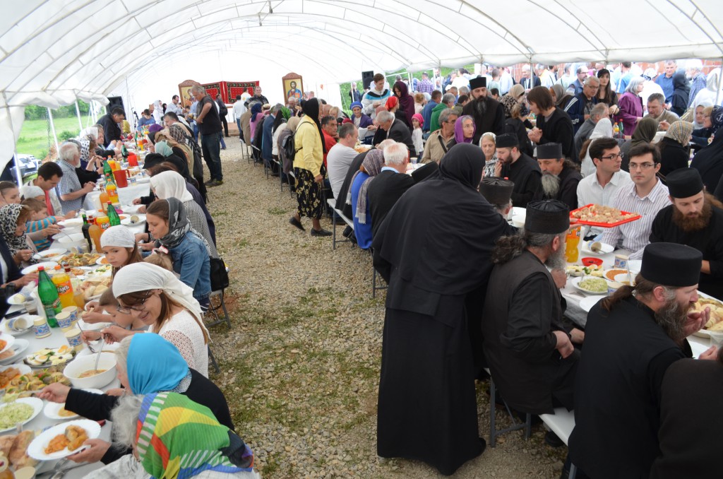 После службе сви присутни су се укрепили на трпези љубави, у току које је приређен и пригодан програм. Присутнима се том приликом пригодном беседом обратио владика Максим: