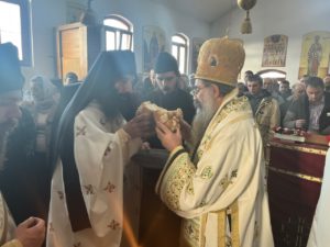 Након Литургије Владика Наум је извршио чин резања славског колача и благосиљања жита које су принели братство манастира и овогодишњи домаћини славе Весна Николов и Јасмина Вукомановић из Ниша и Братислав и Јелена Стојановић из Лесковца. За следећу годину пријавила се Јелена Миловић из Прокупља.