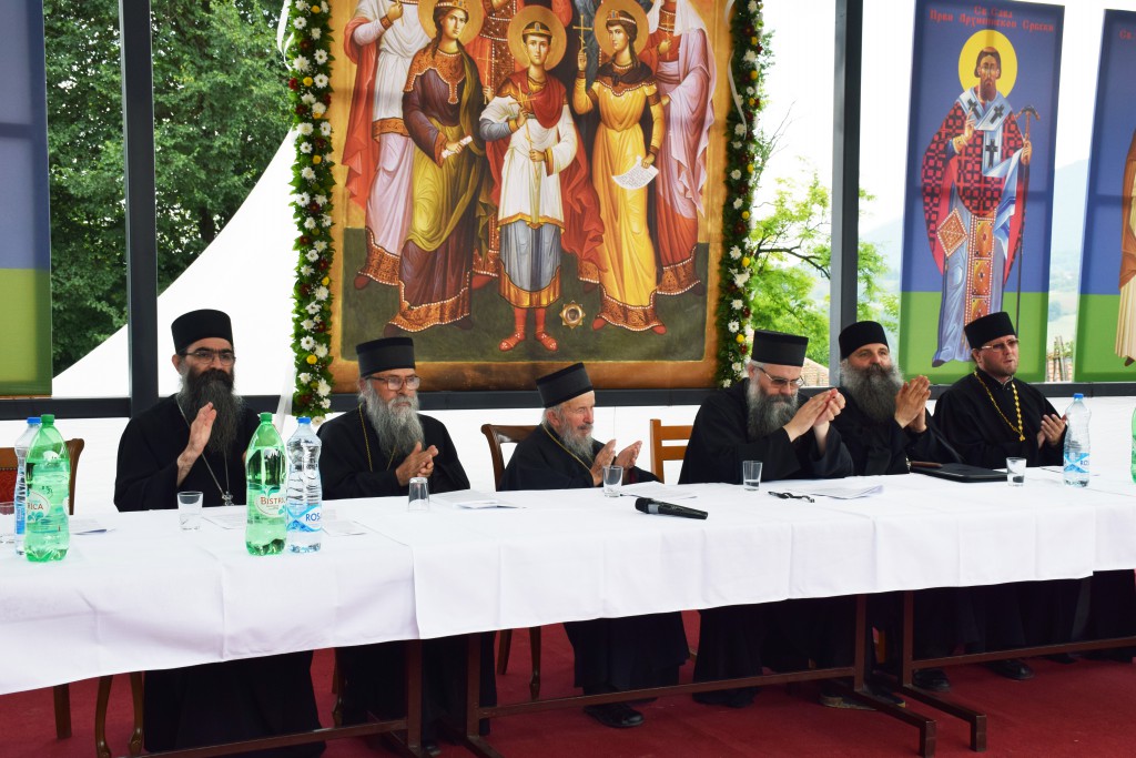 И ми по угледу на њих исповедамо Господа срцем и устима, а овај наш сабор није ништа друго, него исповедање Господа срцем и устима. Он је наша слава, наше оправдање, наше освећење и дар Божји. Слава Богу на том великом дару.“ – нагласио је владика.