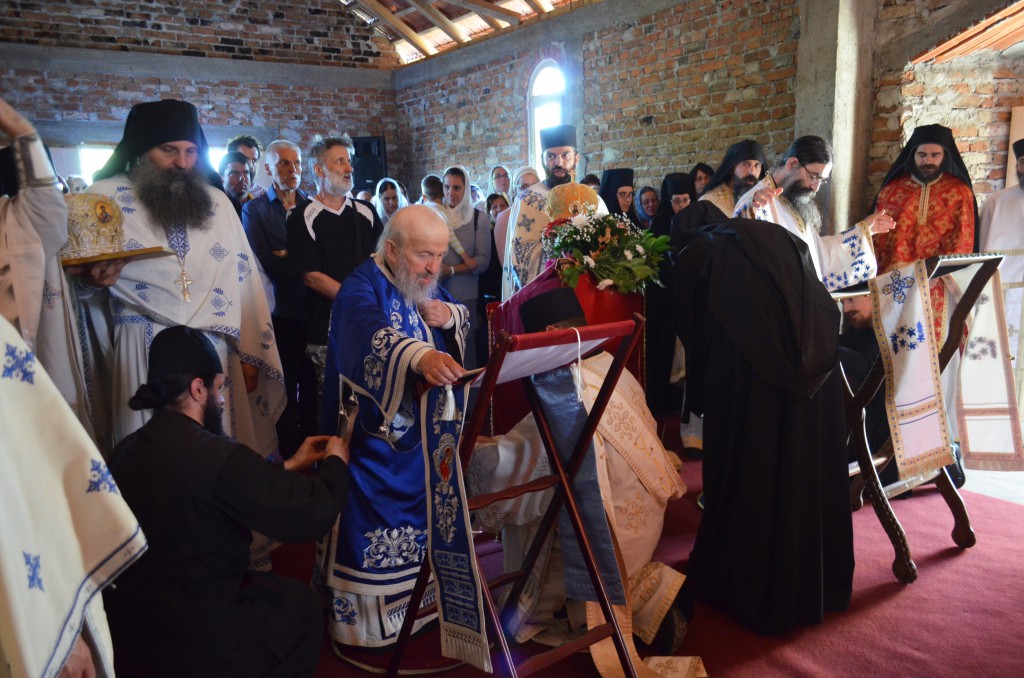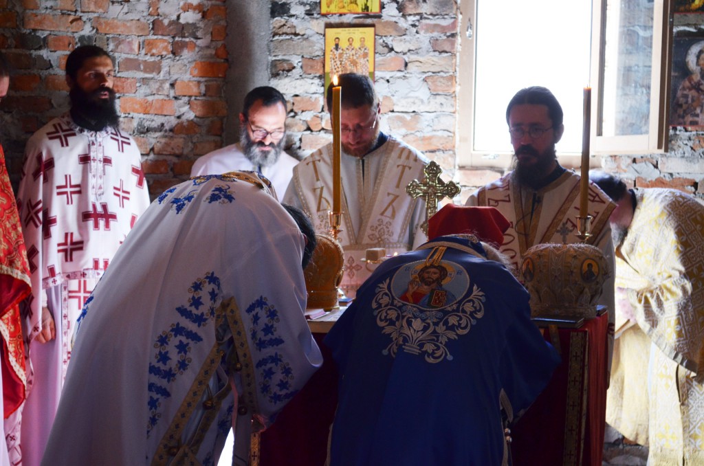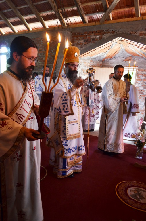 „Данас, браћо и сестре, на овоме светоме месту у овоме светоме храму Божијем сећам се речи апостола Павла који заповеда својим ученицима и свима хришћанима: “На свему благодарите! На свему што Бог даје, што Бог допушта треба благодарити, захваљивати се Богу.“ Али којим речима данас да се захвалимо Богу на овој милости Његовој, на овоме дару који нам је подарио ове године овде у овоме дивноме селу шумадијском. Како да заблагодаримо Богу на још једном огњишту Вере праве, апостолске, светоотачке које је Господ запалио на овоме месту овде, да би имали где да се окупљамо, да душе своје грејемо и да веру чувамо и сачувамо. Ово је једна од најмлађих, уствари најмлађа катакомба наша. И као што се у породици радују сви када добију новога члана породице, када се роди дете, тако и сви ми, цела епархија, без обзира где ко живео близу или далеко, данас се радују због ове нове катакомбе коју смо посветили у спомен светог Стефана Високога, деспота српскога, који је у овим крајевима владао и борио се за очување своје отаџбине Србије и српскога народа“.