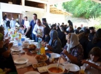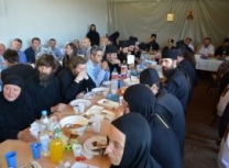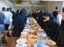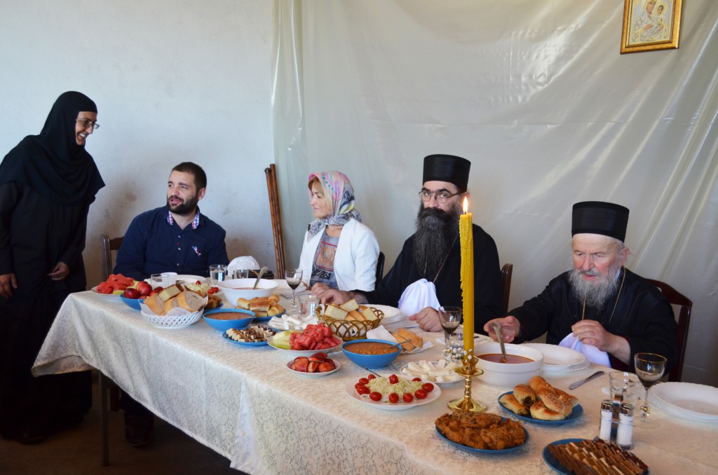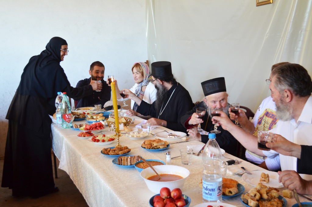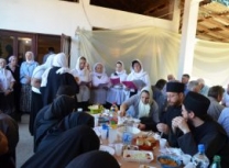 Уследила је свечана трпеза љубави коју је припремила настојатељница мати Пелагија заједно са верним народом. Окупљеним светосавцима се том приликом краћом пригодном беседом обратио и Владика Наум. За време трепезе љубави женски хор „Свети Јустин Ћелијски“ из Барајева извео је пригодан програм.