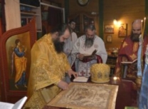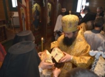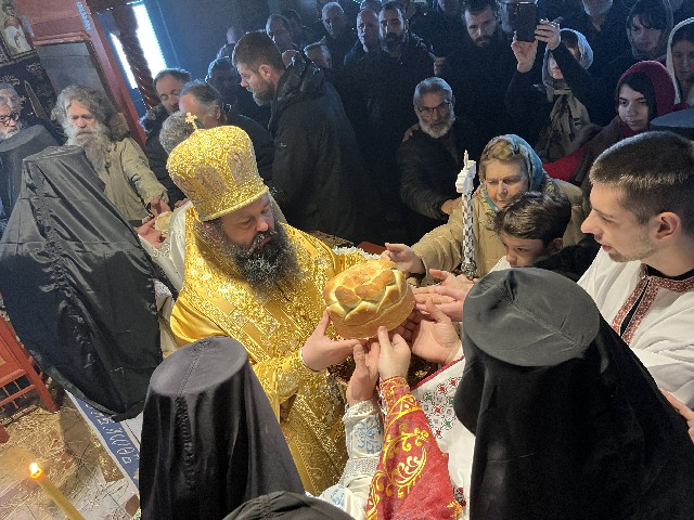 Након Литургије Владика Ксенофонт је обавио чин резања славског колача и благосиљања жита које је принео настојатељ манастира протосинђел Агапит са својом у Христу братијом.