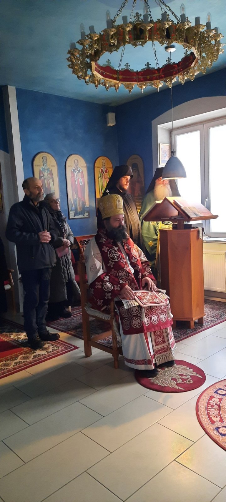 На празник Сретења Господњег, 15. фебруара, Његово Преосвештенство Епископ рашко-призренски у егзилу Г. Г. Ксенофонт извршио је канонску посету манастиру Свих српских светитеља у селу Гринбаху у Аустрији. Том приликом Владика је служио свету архијерејску Литургију уз саслужење настојатеља манастира протосинђела Димитрија (Ђоковића). Литургији је присуствовало око 35 верника из Беча и околине. Неки од њих су се сјединили са Господом кроз Свето причешће.