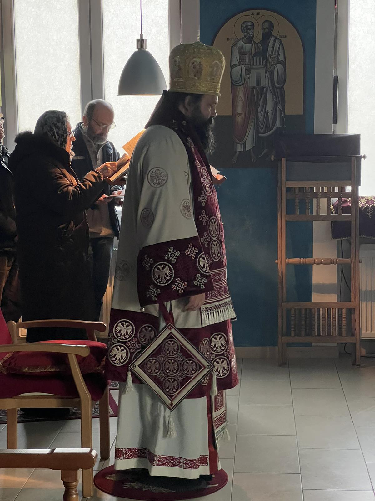 На празник Сретења Господњег, 15. фебруара, Његово Преосвештенство Епископ рашко-призренски у егзилу Г. Г. Ксенофонт извршио је канонску посету манастиру Свих српских светитеља у селу Гринбаху у Аустрији. Том приликом Владика је служио свету архијерејску Литургију уз саслужење протосинђела Димитрија (Ђоковића), протосинђела Јова (Кадила) и јерођакона Георгија (Радојичића). Литургији је присуствовало око 30 верника из Беча и околине. Неки од њих су се сјединили са Господом кроз Свето причешће.