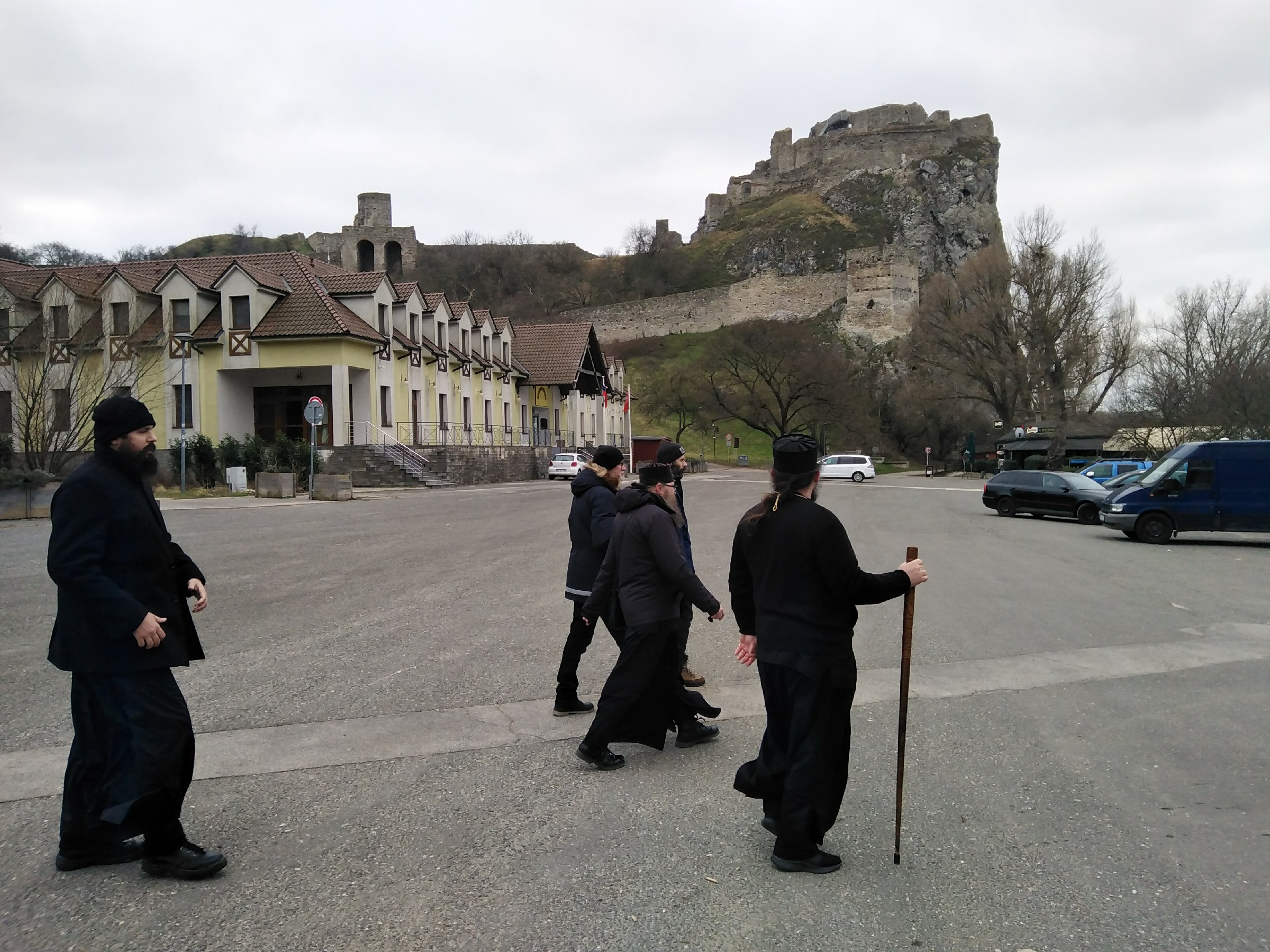 Владика је боравио у манастиру од недеље до среде. У уторак је обишао словенске насеобине Велике Мораве из времена Св. кнеза Растислава Моравског, у којима и данас постоје остаци словенских кирило-методијевских храмова. Најпре је посетио тврђаву Девин храд (Дјевин град) код Братиславе у Словачкој, на ушћу реке Мораве у Дунав. То је место за које многи словачки историчари сматрају да су ту Св. Кирило и Методије са својим сарадницима прешли Дунав, где их је и дочекао Св. кнез Растислав са моравским племством. Ту су остаци словенске базилике унутар утврђеног града.