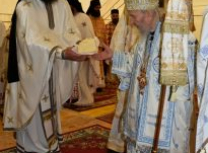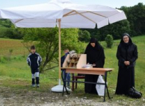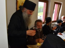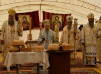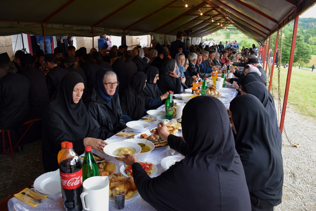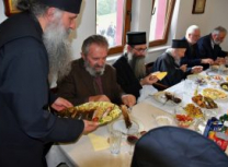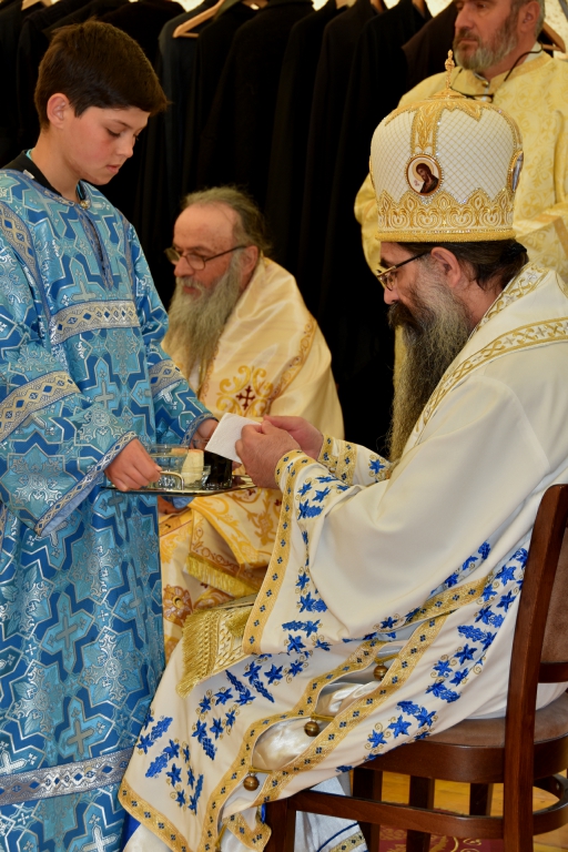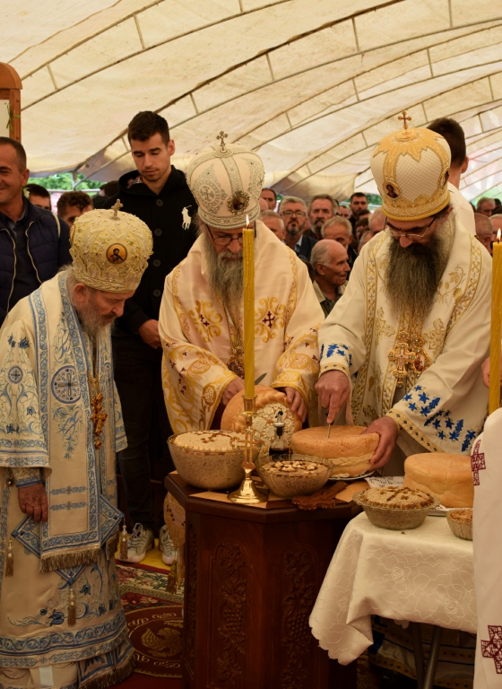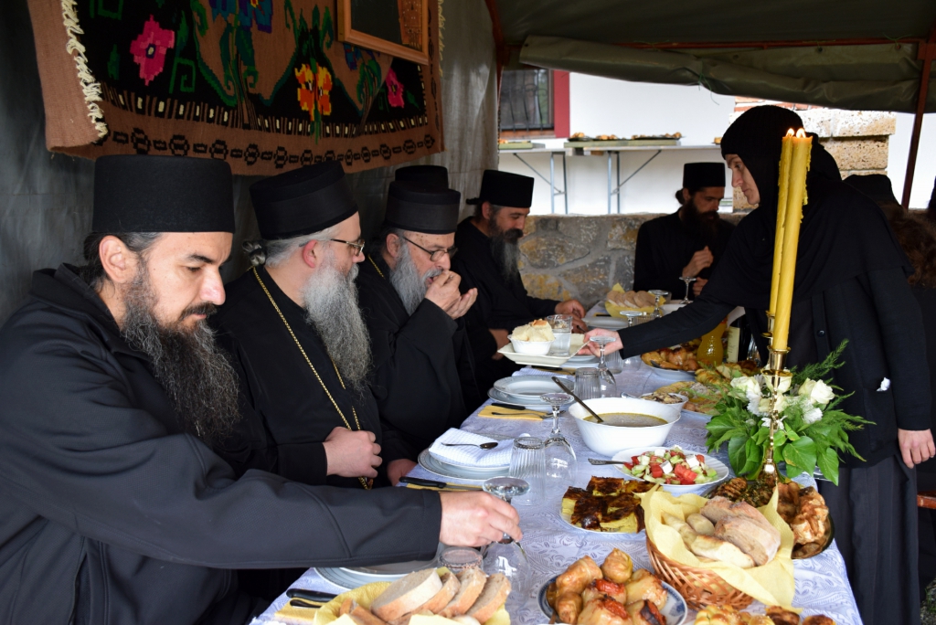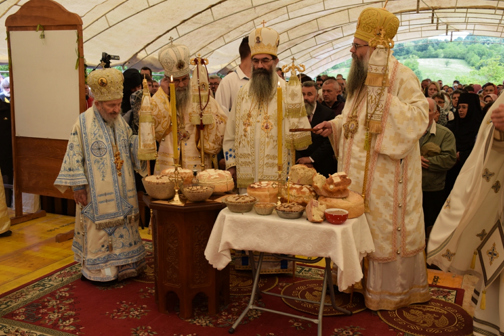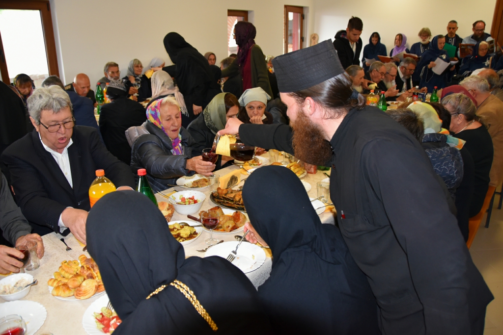 Након Литургије Владика Николај је извршио чин резања славског колача и благосиљања жита које су у част Светих Отаца I Васељенског сабора принели манастирско братство и овогодишњи домаћини славе: праунук Владике Артемија – Драган Радосављевић из Лелића и Лука Стевановић из Руменке. За наредну годину пријавили су се: Мирослав и Весна Станковић из Барајева, Босиљка Зукановић, Оливера Ракић, Рајка Бошковић и Зорица Морачанин из Београда.