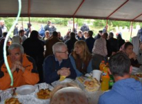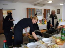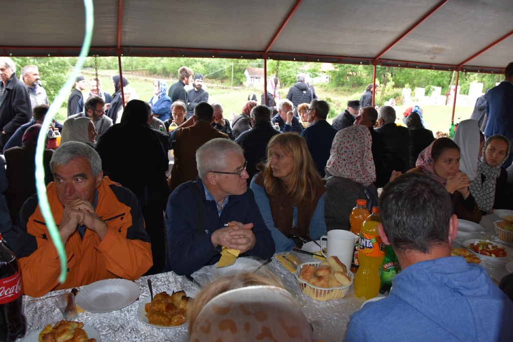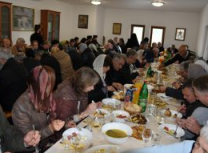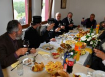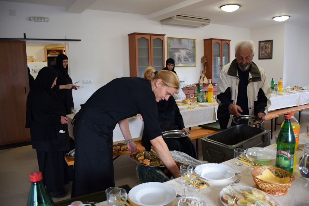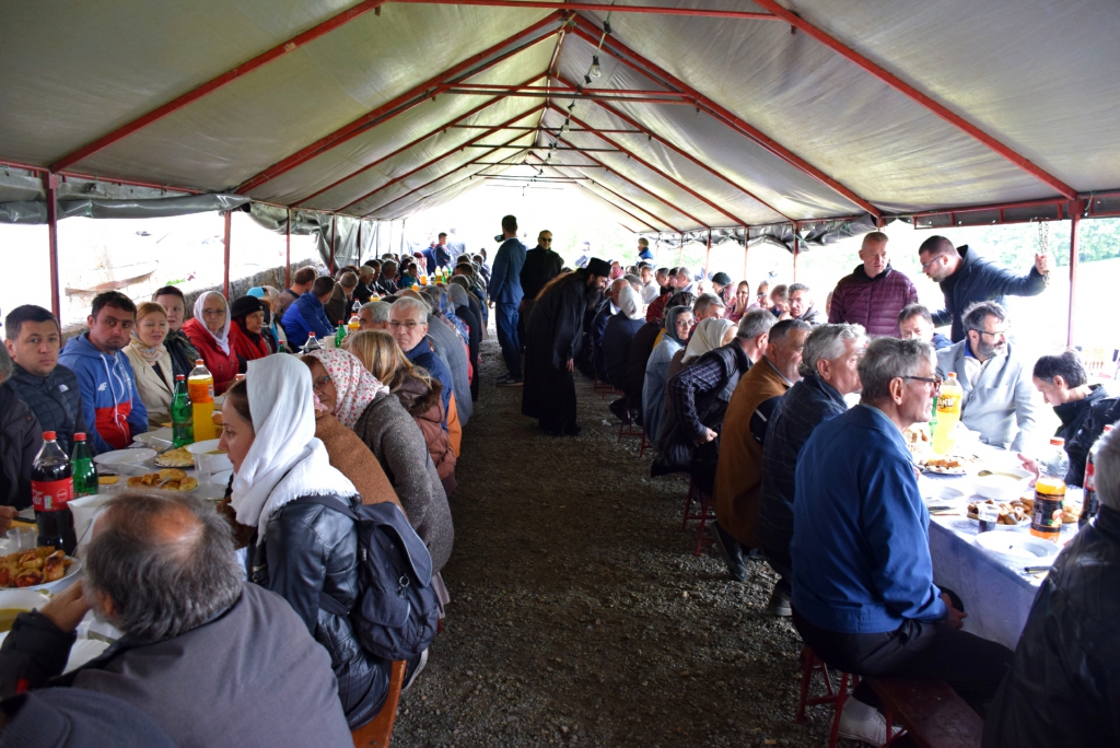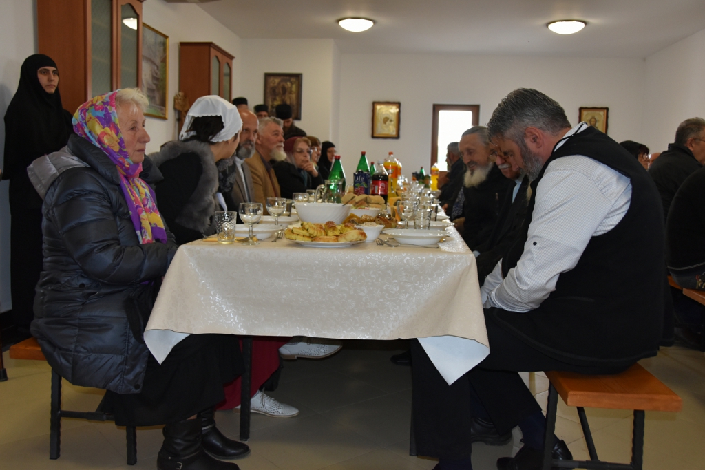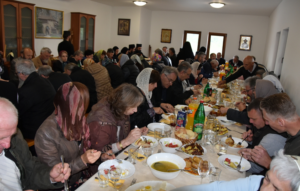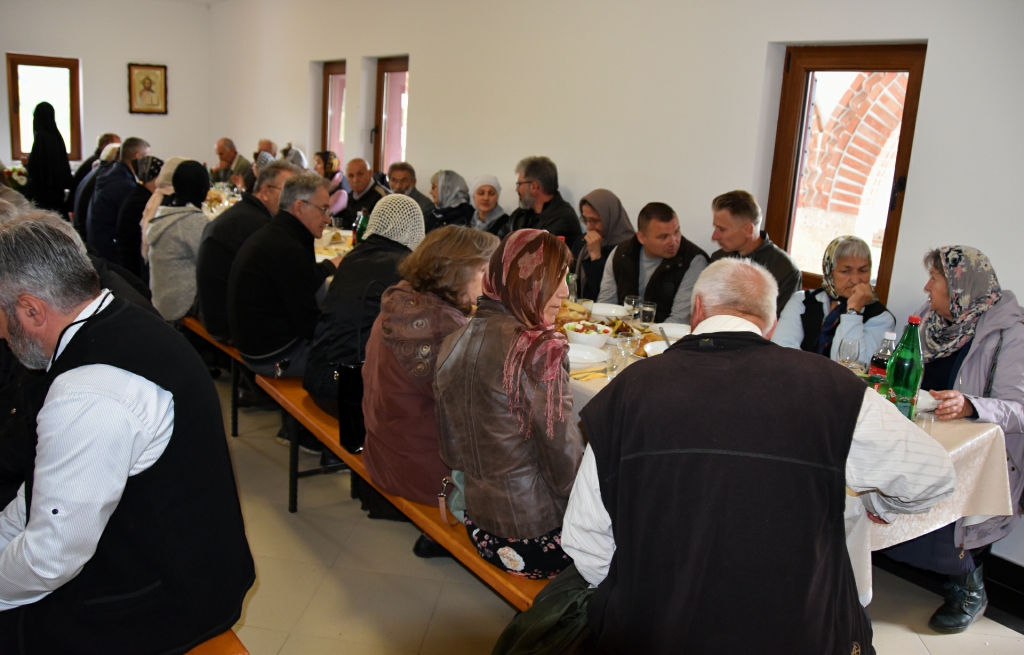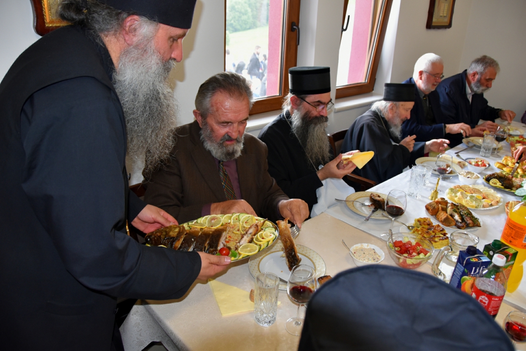 Празнично славље настављено је трпезом љубави. У току трпезе љубави присутнима се обратио Владика Наум а изведен је и пригодни програм од стране хора „Преподобни Јустин Ћелијски“ из Барајева.
