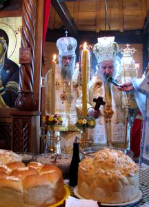 Након Литургије Владика Артемије је извршио чин резања славског колача и благосиљања жита које су у част Пресвете Богомајке принели сестринство манастира и овогодишњи домаћини славе: Милка Драгићевић из Београда и Миломир и Бојана Симовић из Горњег Милановца. За наредну годину пријавили су се: Ранко и Јасмина Шкркић из Крагујевца.