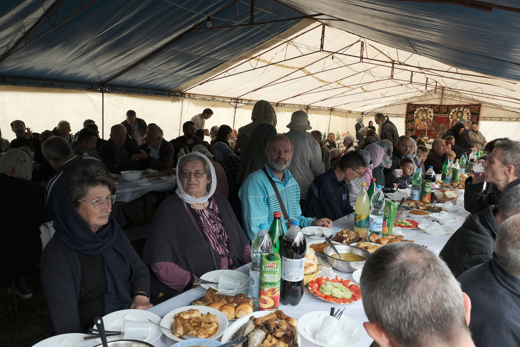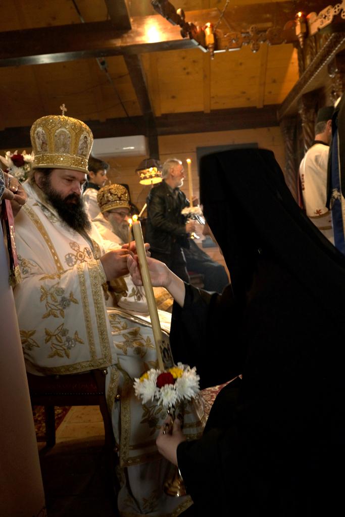 Након Литургије Владика Ксенофонт је извршио чин резања славског колача и благосиљања жита које су у част Пресвете Богомајке принели сестринство манастира и овогодишњи домаћини славе: Микан и Весна Васовић из Чачка и Славко и Даринка Радовановић из Лучана. За наредну годину пријавили су се: Драган и Драгана Марковић, Дејан и Душица Јовановић и Горица Марић, сви из Чачка.