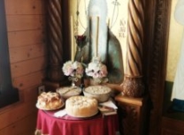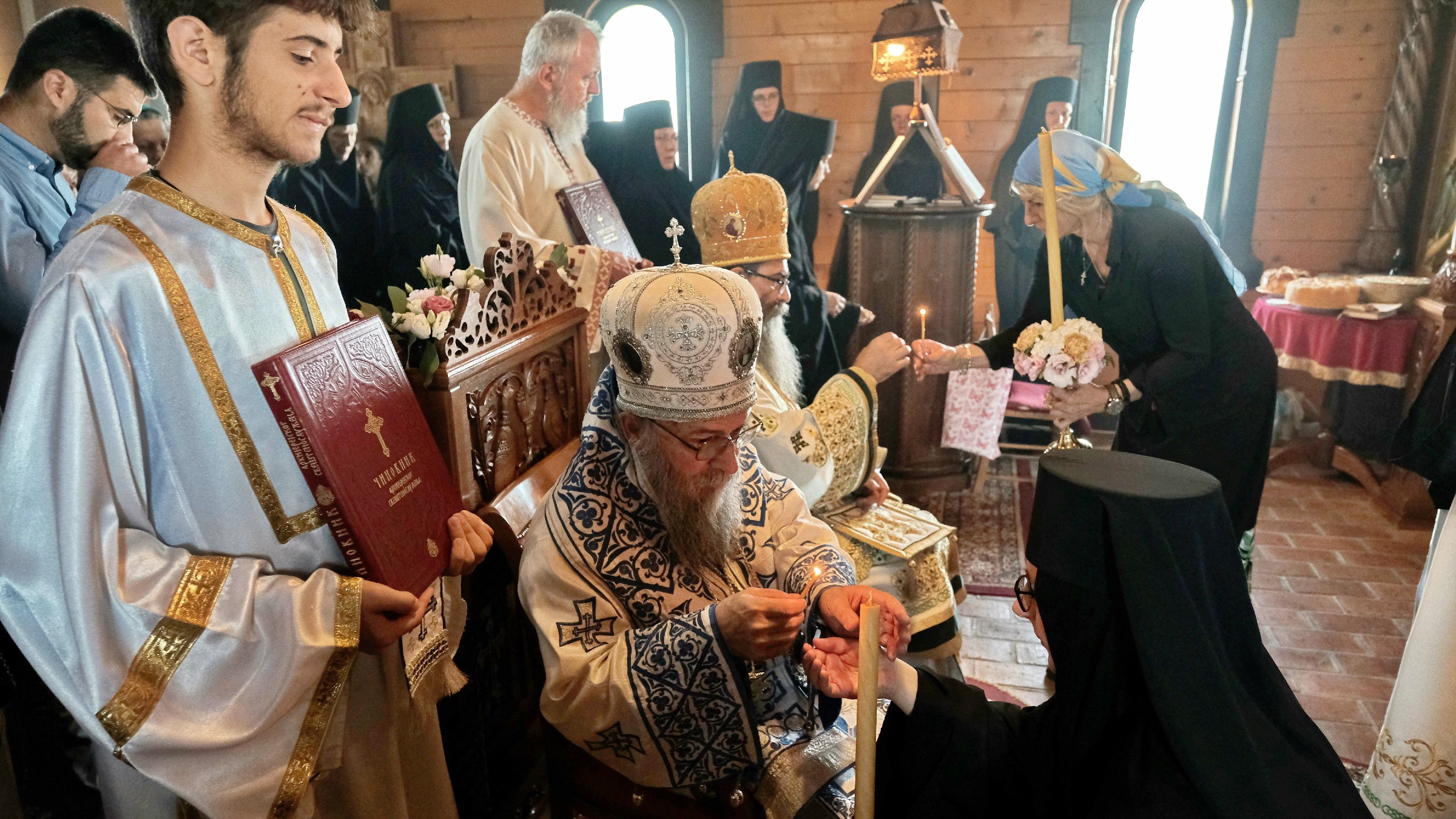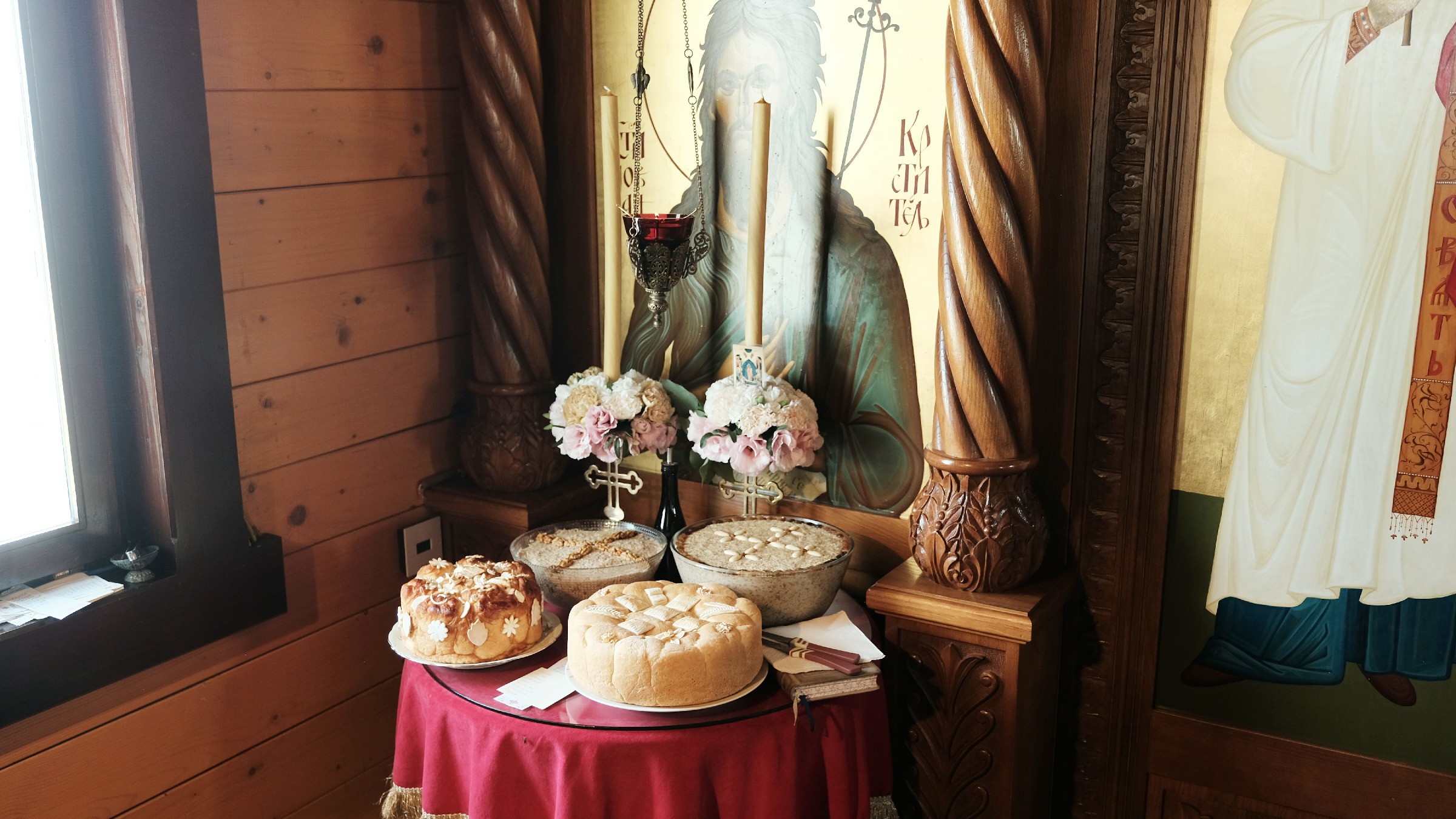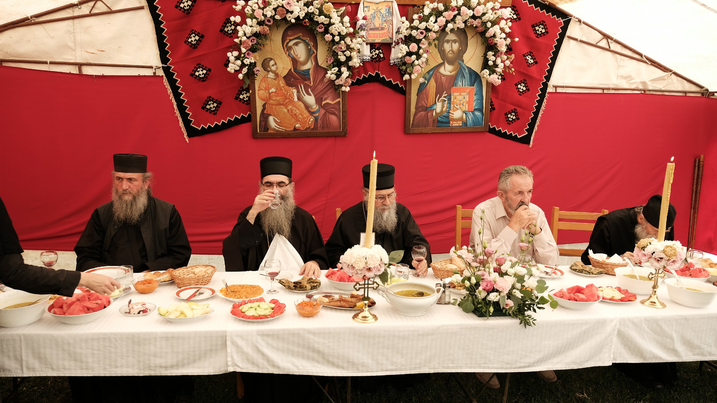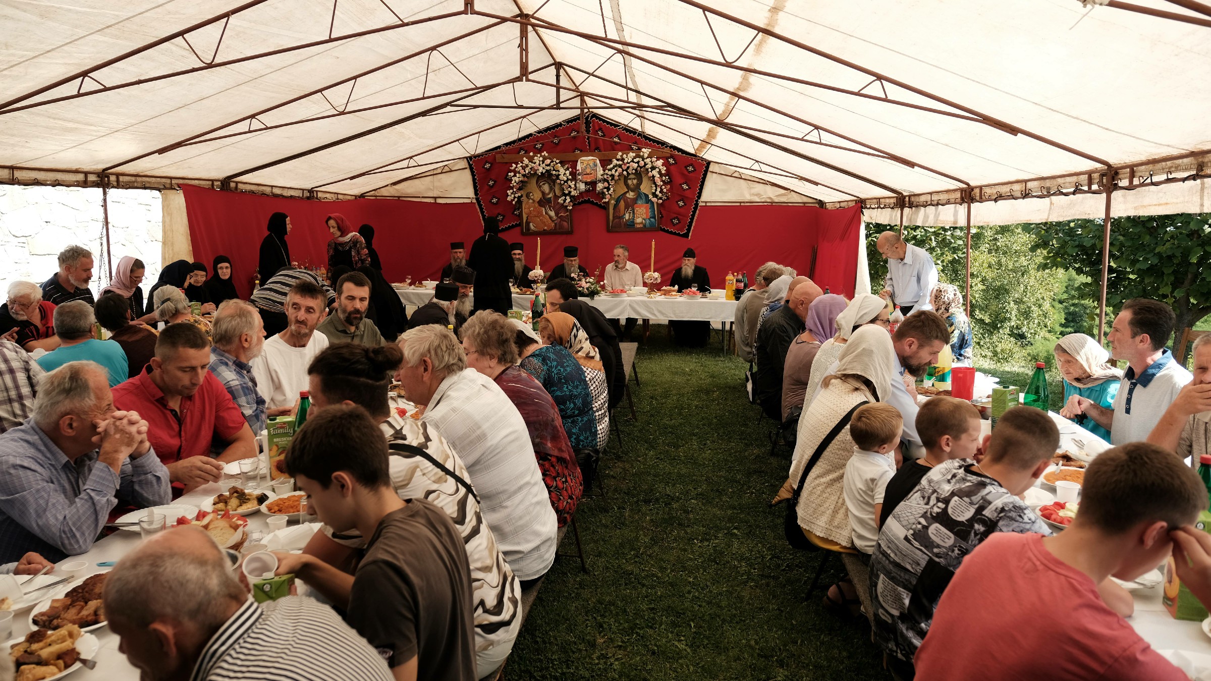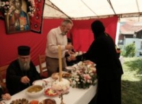 Након Литургије Владика Наум је извршио чин резања славског колача и благосиљања жита које су у част Пресвете Богомајке принели сестринство манастира и овогодишњи домаћини славе: Душица Јовановић из Чачка, Гордана Сопрана из Месине (Италија) и Зорка Митровић из Кучева. За наредну годину пријавили су се: Славиша Дамјановић из Обилића и Миливоје Зарић из Доњег Добрића.