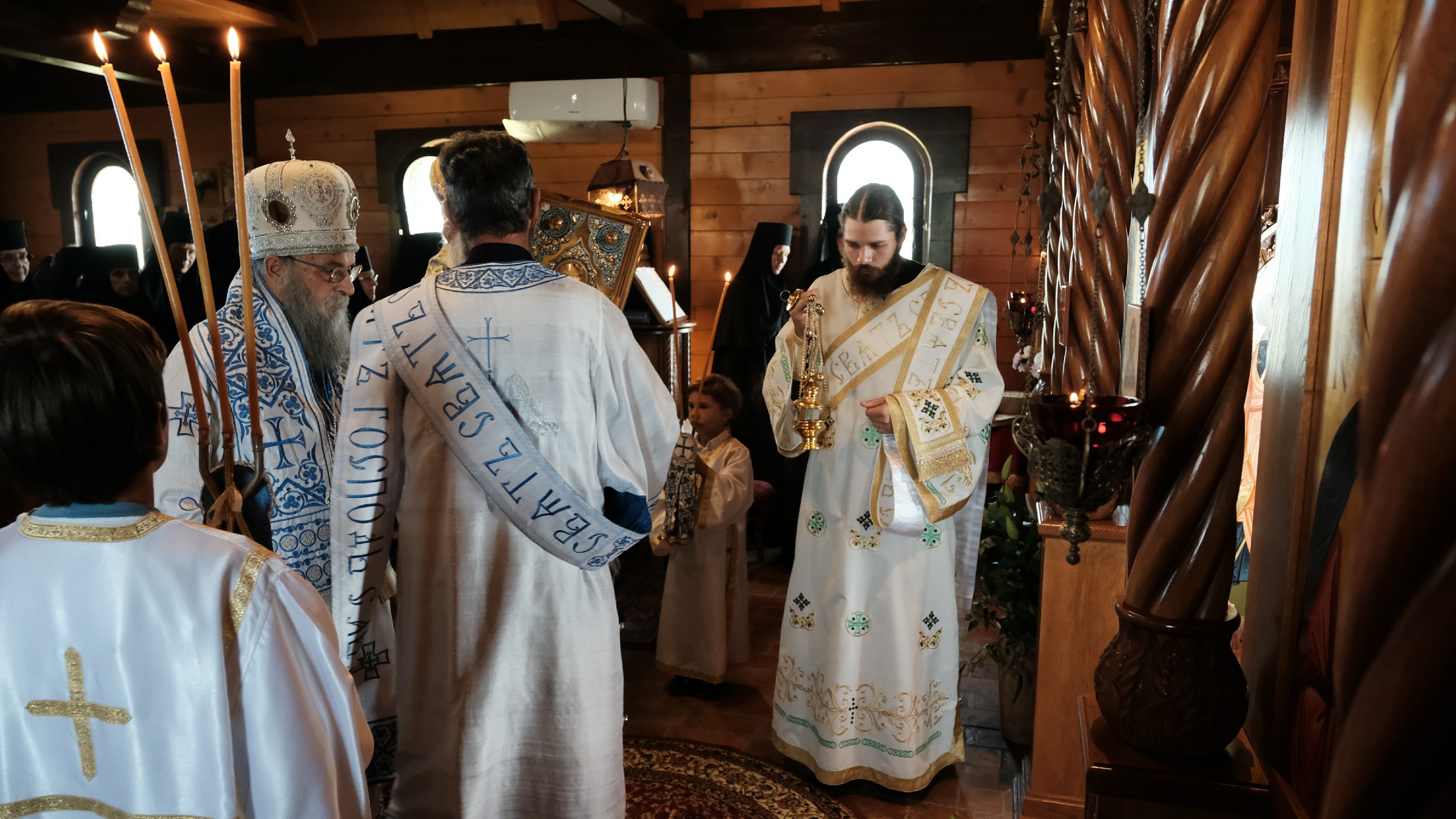 Владики Николају су на Литургији саслуживали Његово Преосвештенство Хорепископ хвостански и барајевски Г.Г. Наум и више свештенослужитеља епархије. Овом свештеном литургијском сабрању присуствовало је око 250 верника. Велики број верника се причестио пресветим и животворним тајнама Христовим.