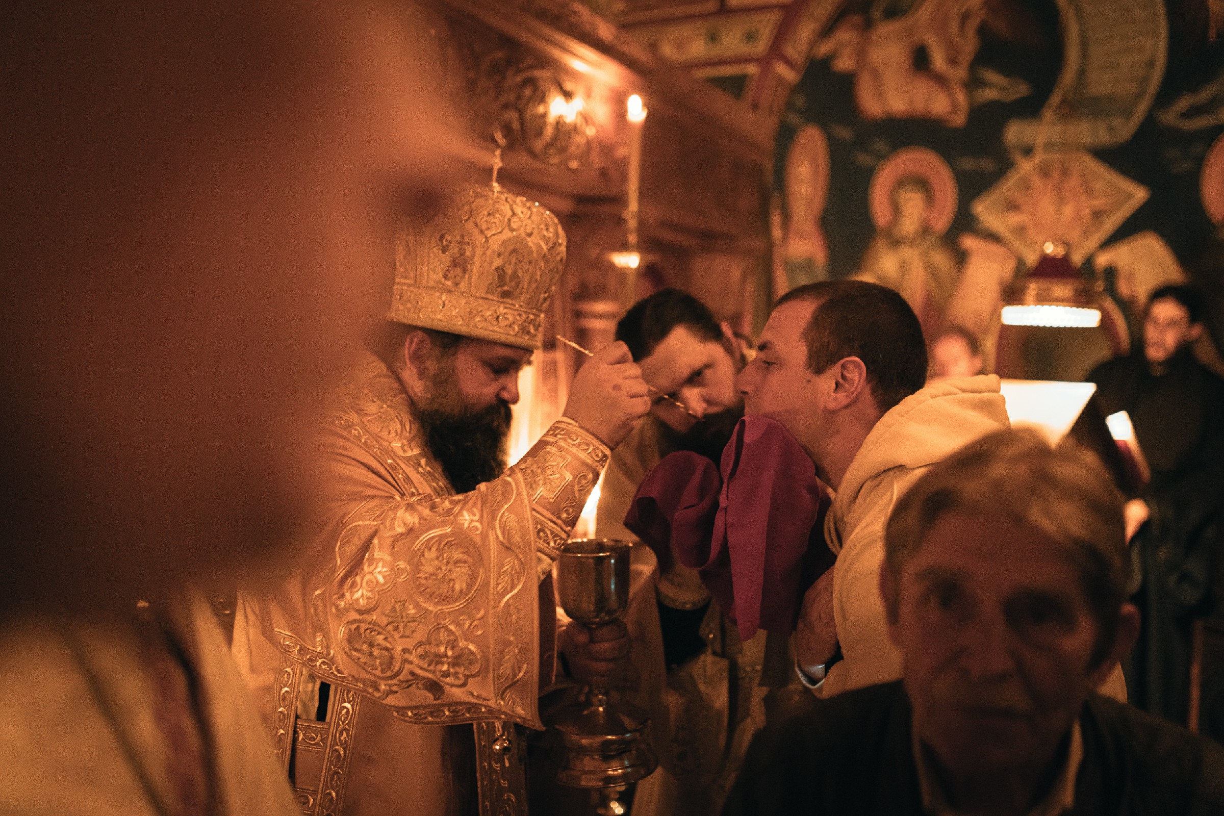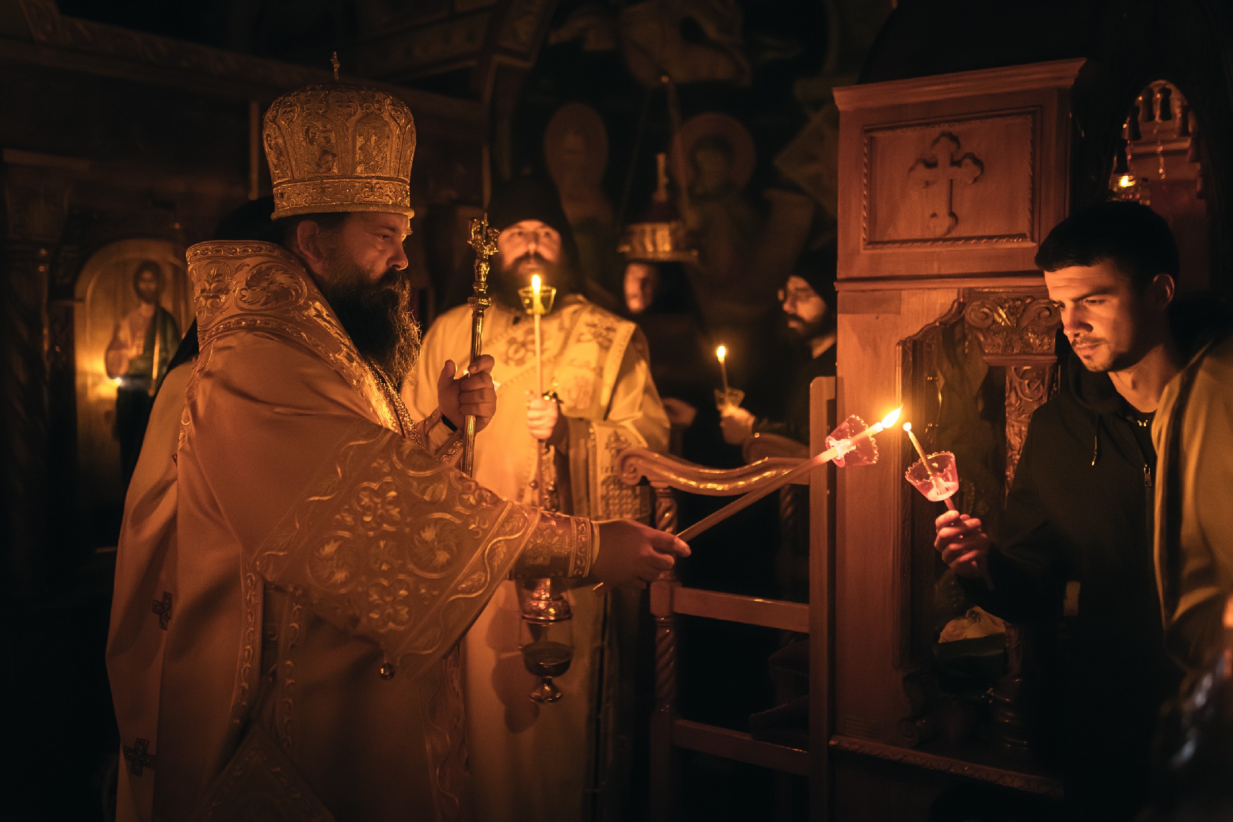 По уласку верника у храм започело је радосно Васкршње јутрење уз често понављање васкршег поздрава – Христос Воскресе! У наставку Јутрења отпочела је свечана Васкршња Литургија. Овом свештеном литургијском сабрању присуствовало је око 250 христољубивих душа из целе Србије. Велики број верника се на Литургији сјединио са Господом кроз Свето Причешће.