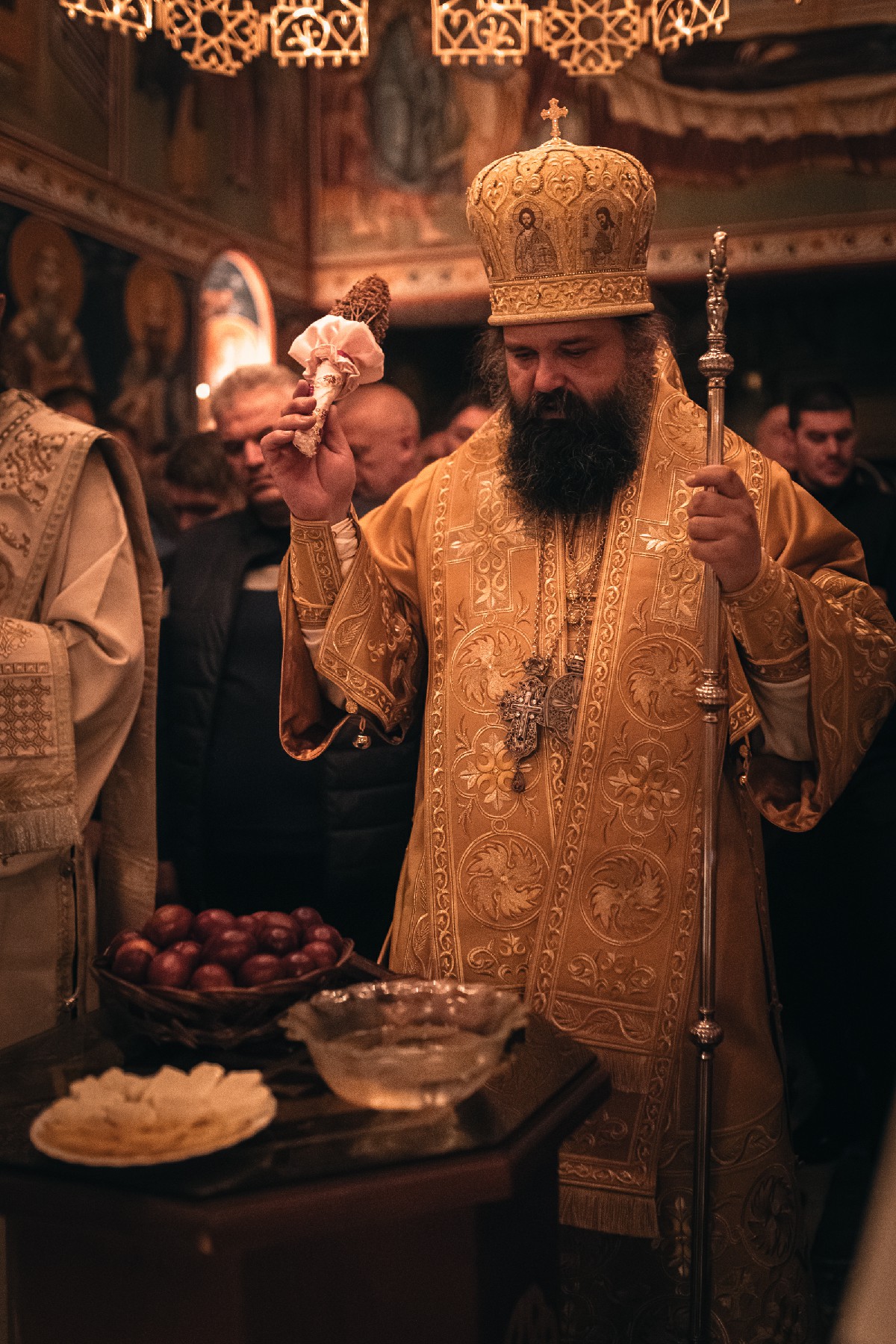 Епископ Ксенофонт је након Литургије и читања посланице извршио чин освећења сира и јаја.