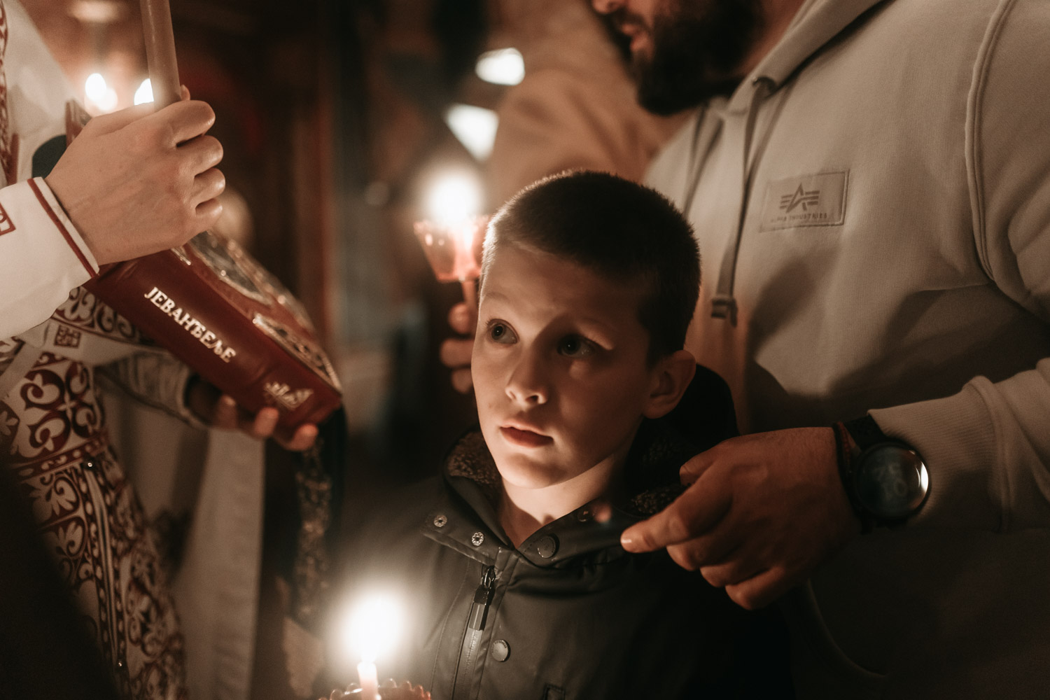 Ходите, узмите светлост од незалазне Светлости и прославите Христа Васкрслог из мртвих – Δεύτε λάβετε φως εκ του ανεσπέρου φωτός και δοξάσατε Χριστόν τον αναστάντα εκ νεκρών.