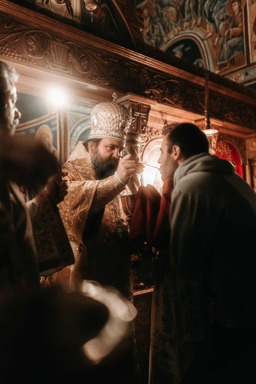 По уласку верника у храм започело је радосно Васкршње јутрење уз често понављање васкршег поздрава – Христос Воскресе! У наставку Јутрења отпочела је свечана Васкршња Литургија. Овом свештеном литургијском сабрању присуствовало је око 250 христољубивих душа из целе Србије. Велики број верника се на Литургији сјединио са Господом кроз Свето Причешће.