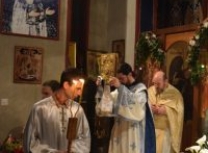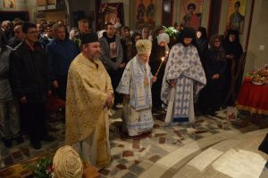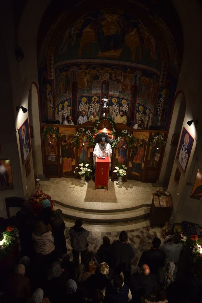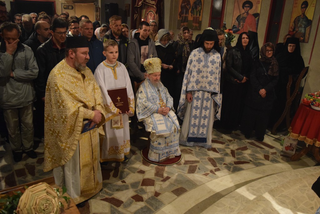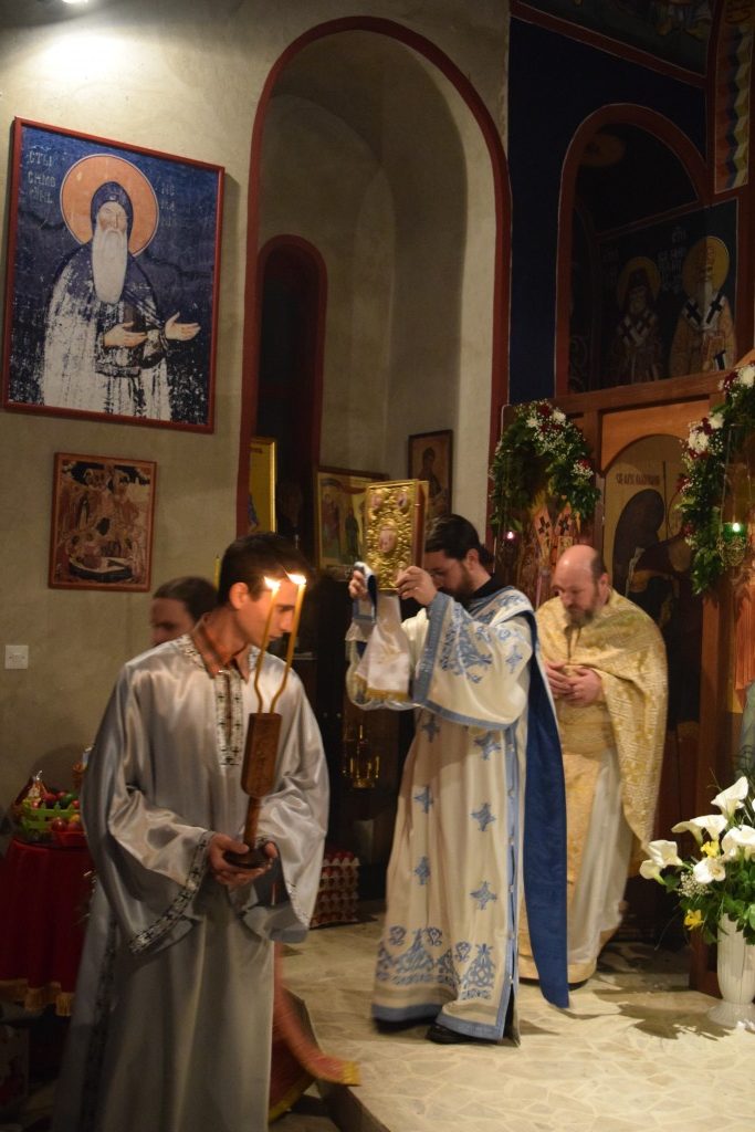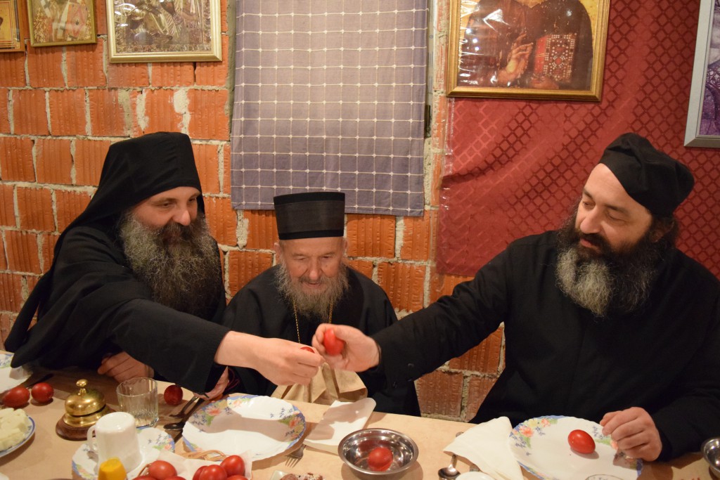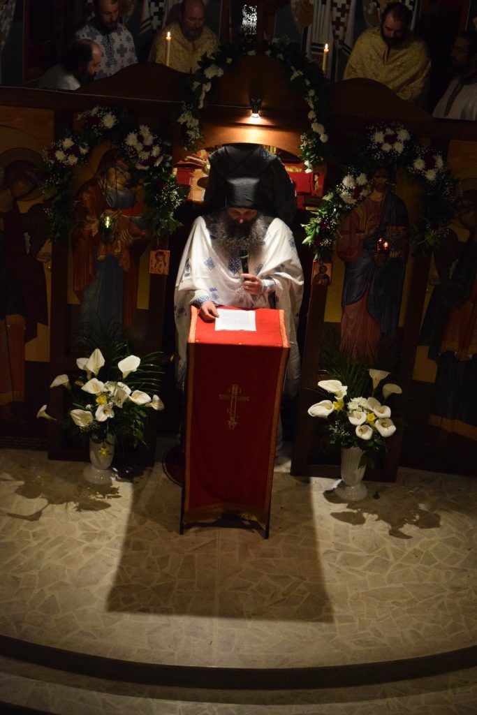 Васкршњу посланицу Епископа Артемија, хорепископа: Николаја, Максима и Наума прочитао је архимандрит Варнава. Након Литургије Владика Артемије је извршио чин благосиљања сира и јаја.