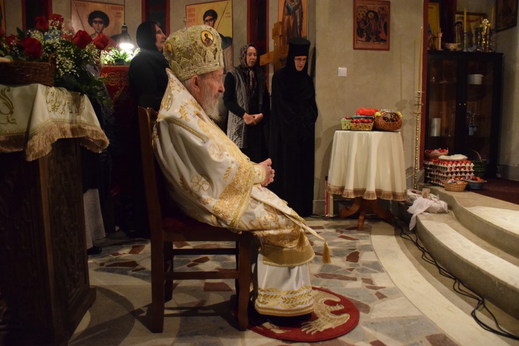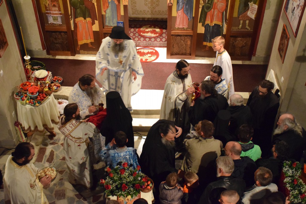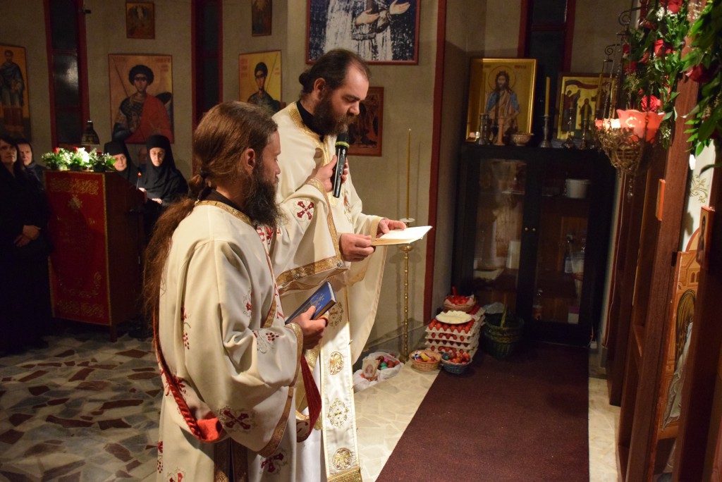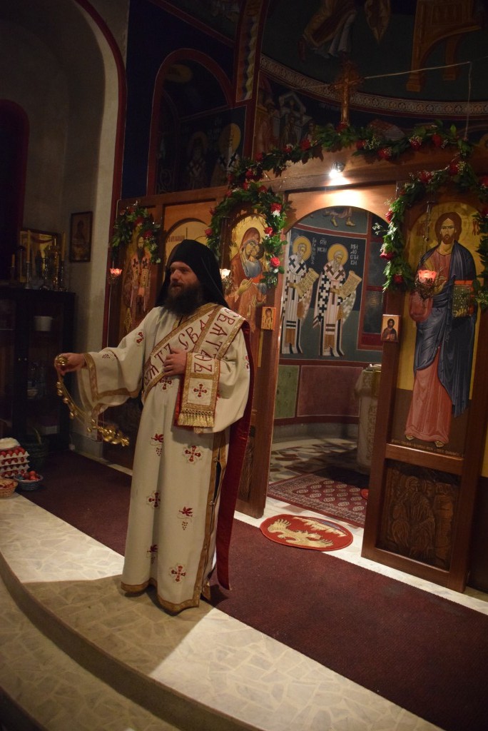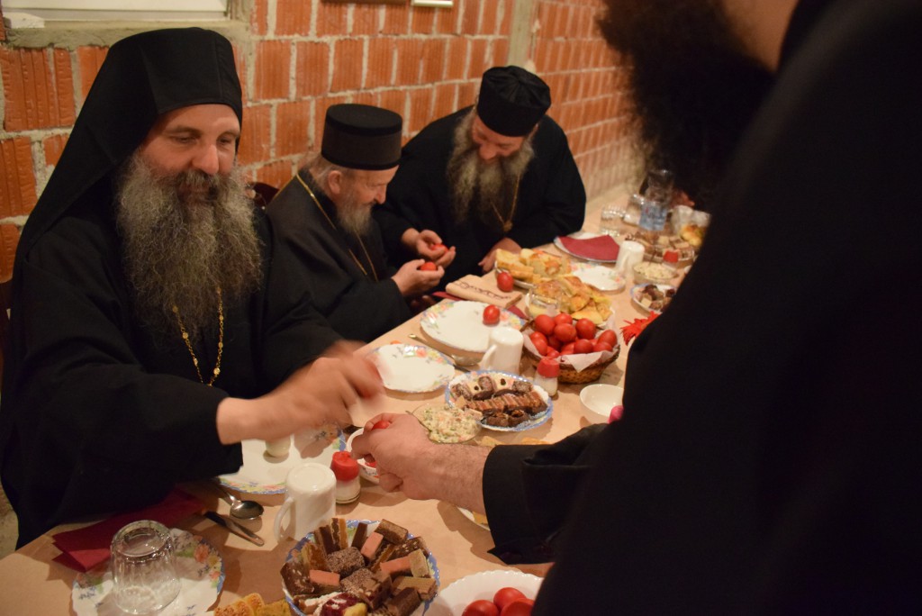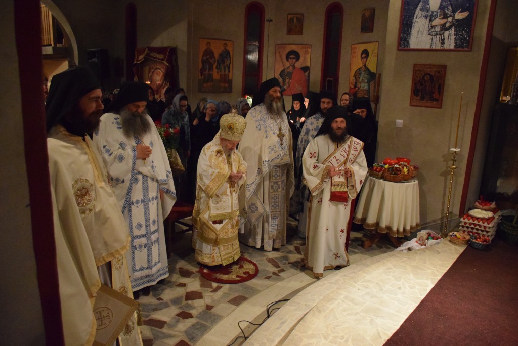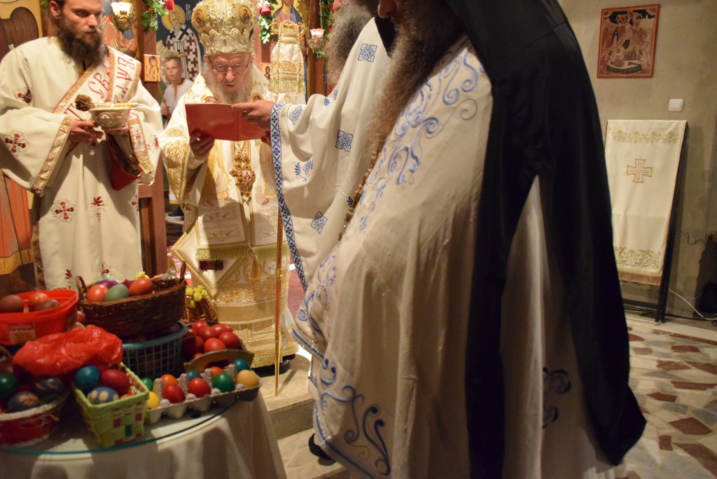 Васкршњу посланицу Епископа Артемија, хорепископа: Николаја, Максима и Наума прочитао је архимандрит Варнава. После Литургије Владика Артемије је извршио чин освећења сира и јаја.
